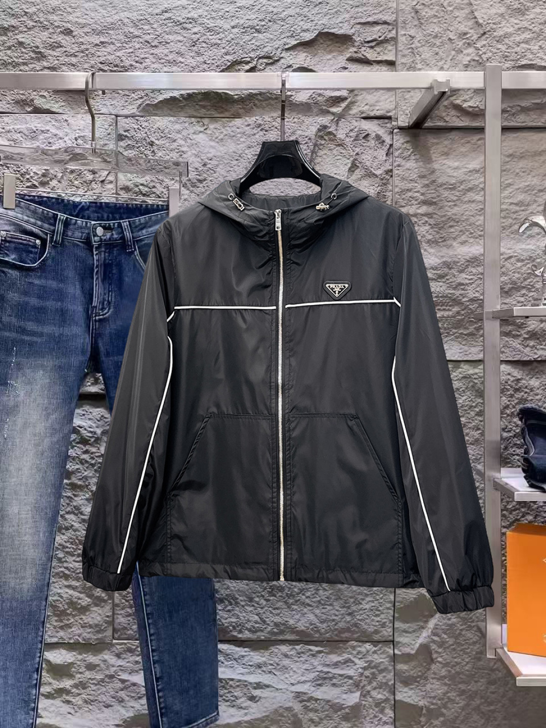 这款衣服是AAAAA 1:1 质量 (非常棒). 使用了和原版一模一样的材料. 商标部分也保持了和普拉达/Prada一样. 图片拍摄是实物衣服拍摄, 您所收到的实物保证和我们图片一模一样.