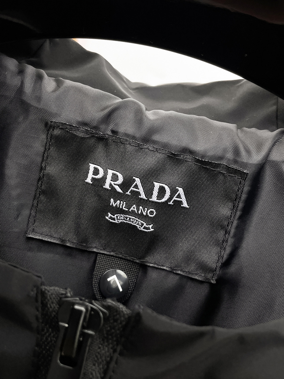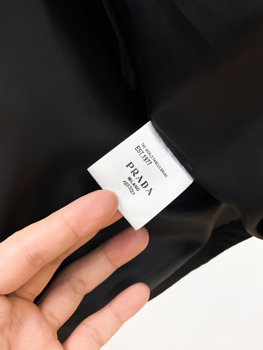 这款衣服是AAAAA 1:1 质量 (非常棒). 使用了和原版一模一样的材料. 商标部分也保持了和普拉达/Prada一样. 图片拍摄是实物衣服拍摄, 您所收到的实物保证和我们图片一模一样.