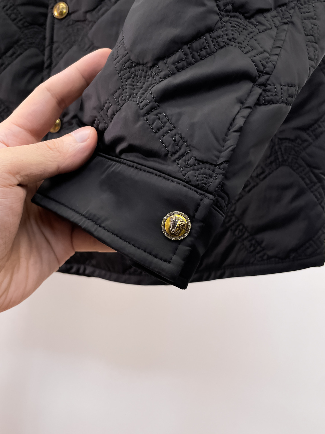 这款衣服是AAAAA 1:1 质量 (非常棒). 使用了和原版一模一样的材料. 商标部分也保持了和范思哲/Versace一样. 图片拍摄是实物衣服拍摄, 您所收到的实物保证和我们图片一模一样.