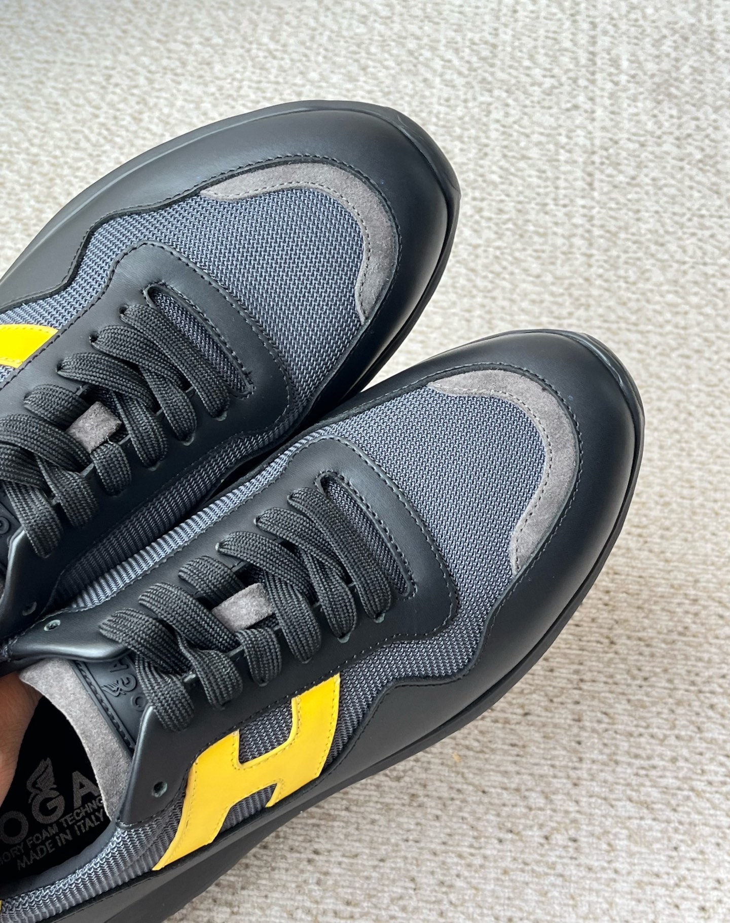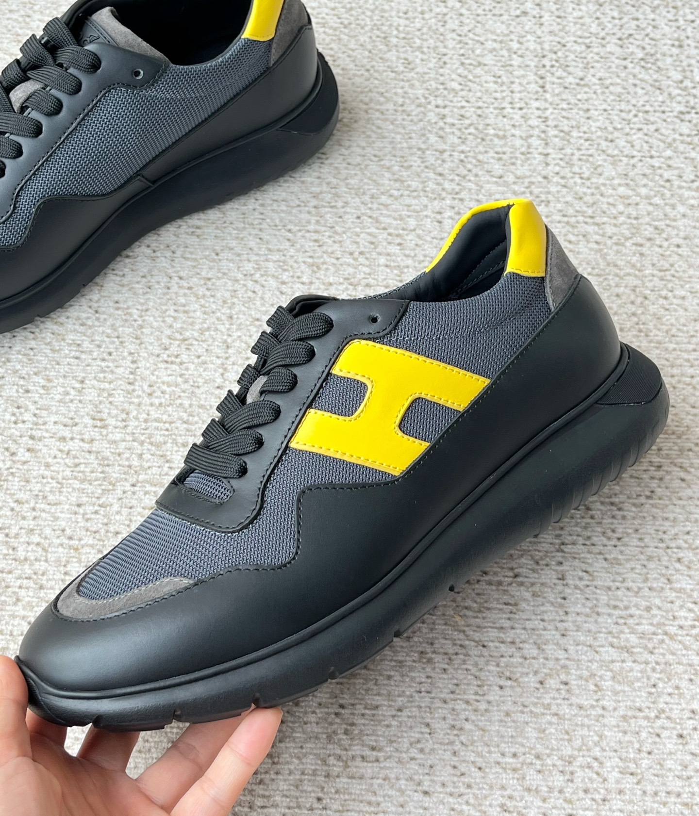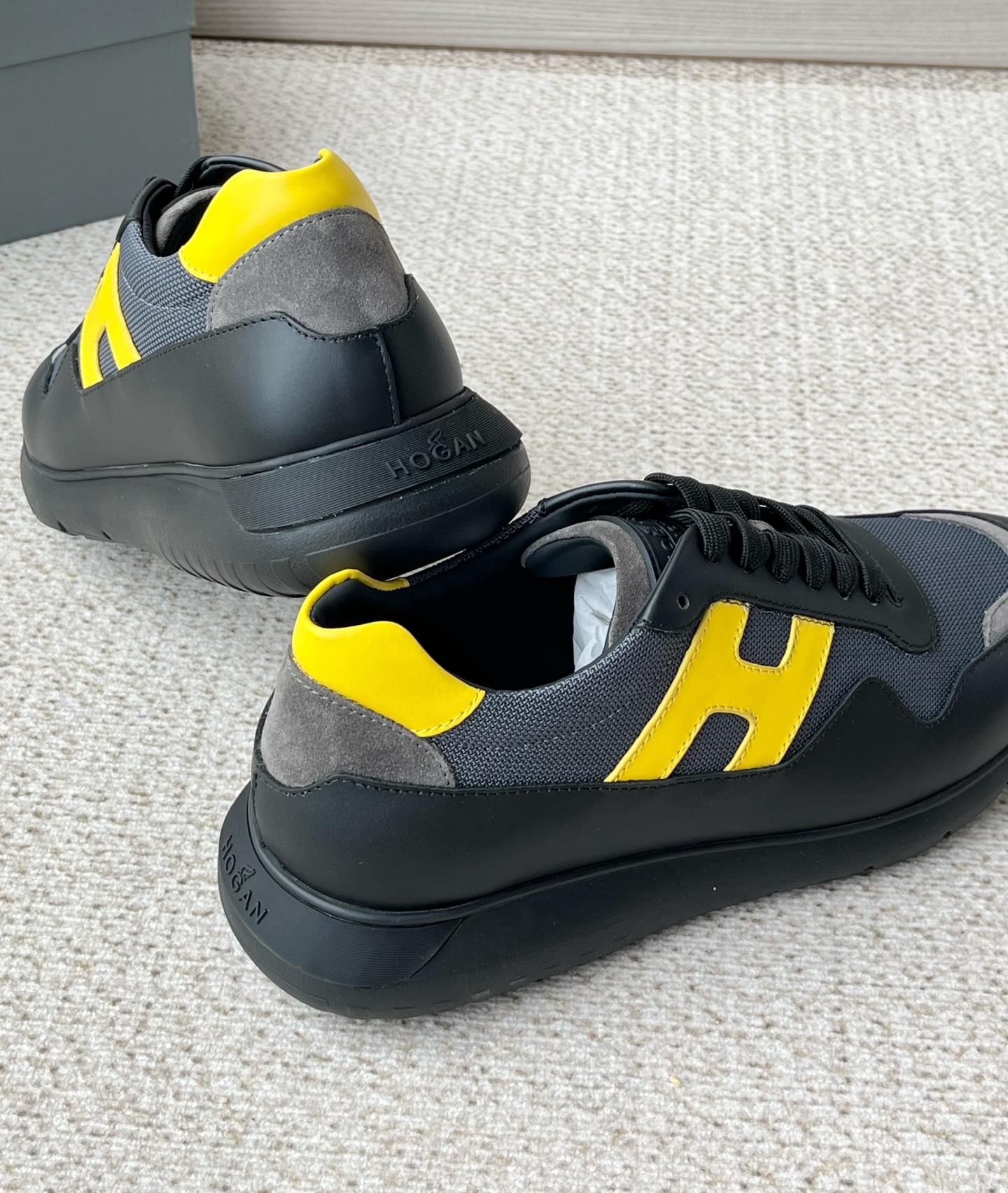 这款鞋子是AAAAA 1:1 质量 (非常棒). 使用了和原版一模一样的材料. 商标部分也保持了和Hogan一样. 图片拍摄是实物鞋子拍摄, 您所收到的实物保证和我们图片一模一样.