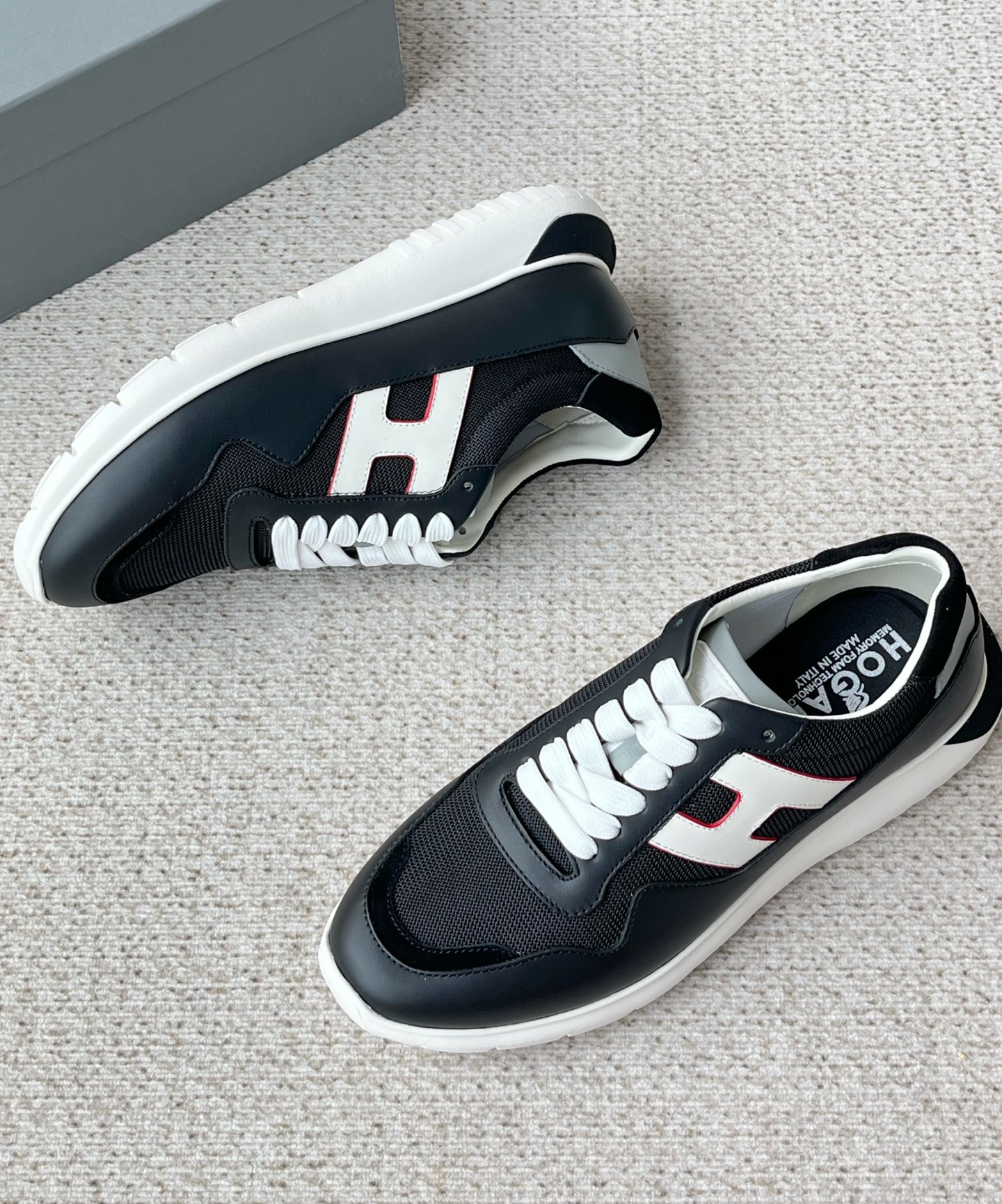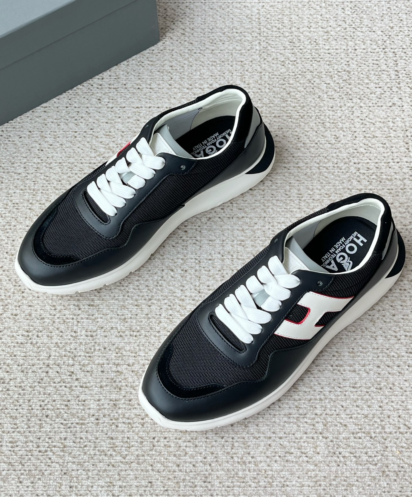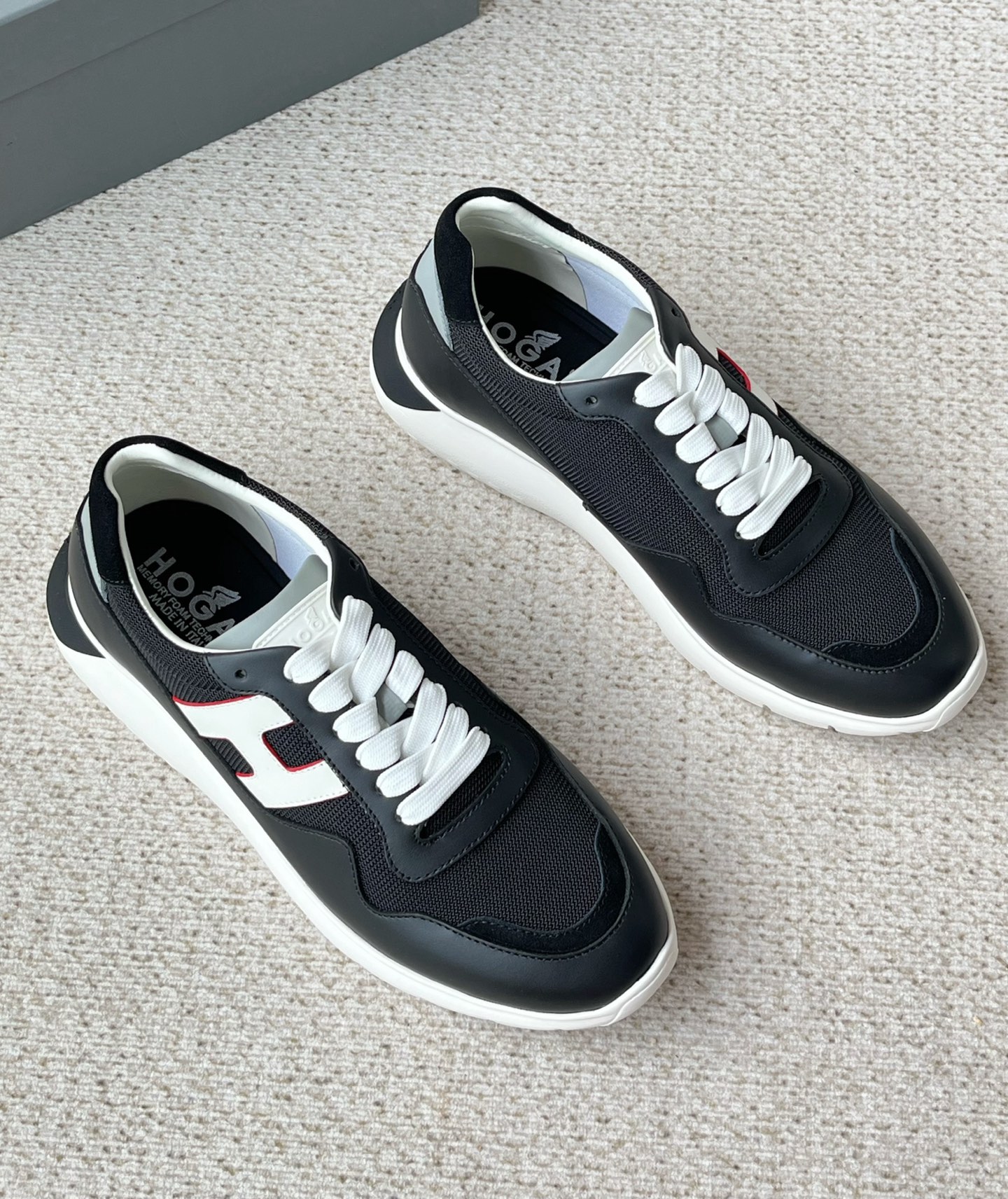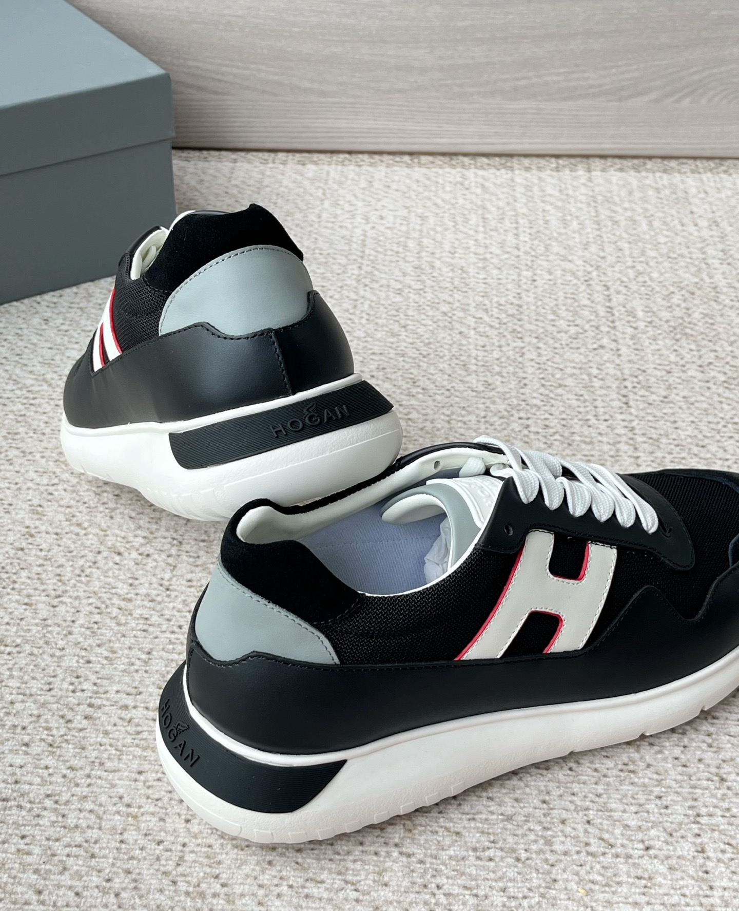 这款鞋子是AAAAA 1:1 质量 (非常棒). 使用了和原版一模一样的材料. 商标部分也保持了和Hogan一样. 图片拍摄是实物鞋子拍摄, 您所收到的实物保证和我们图片一模一样.