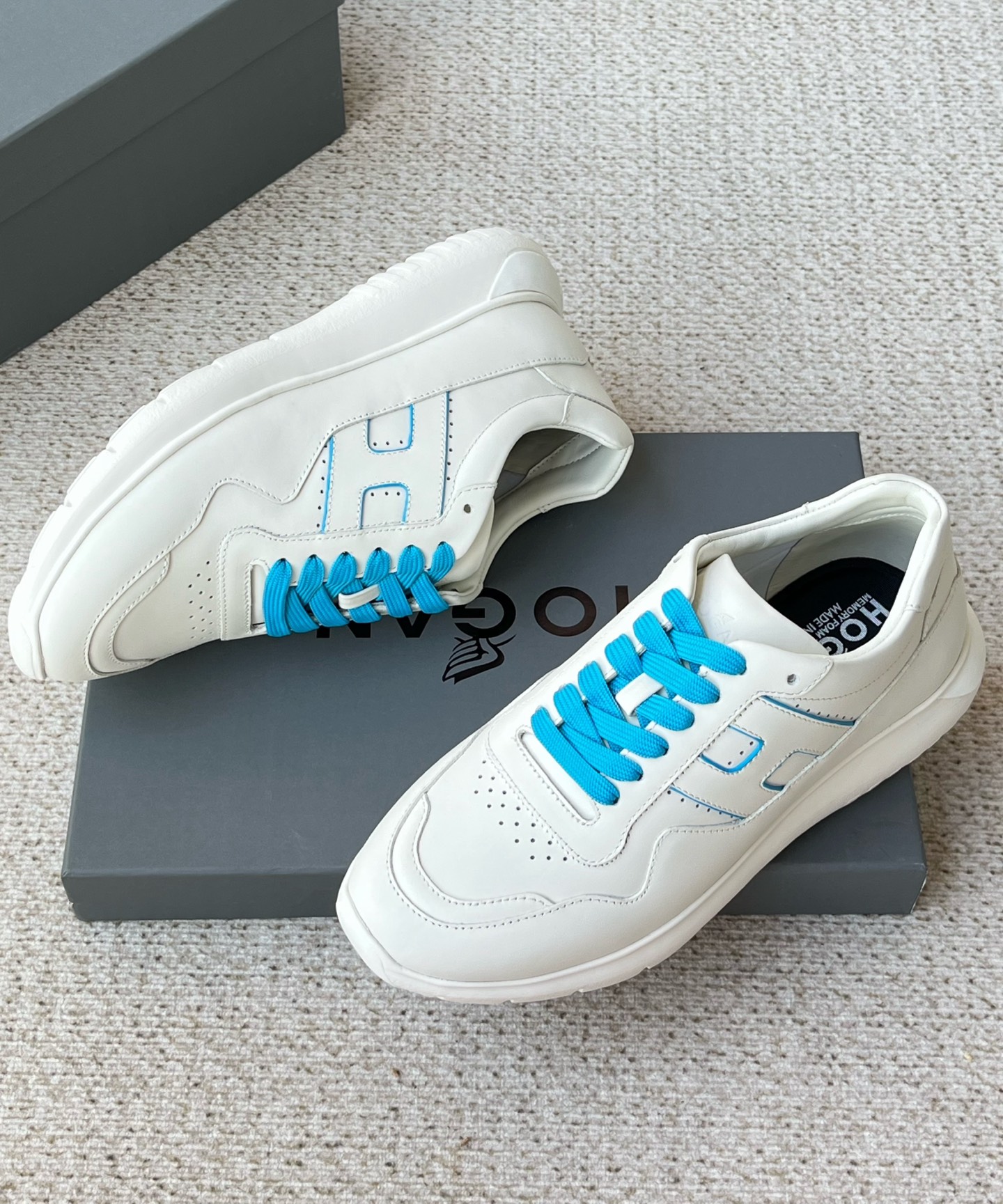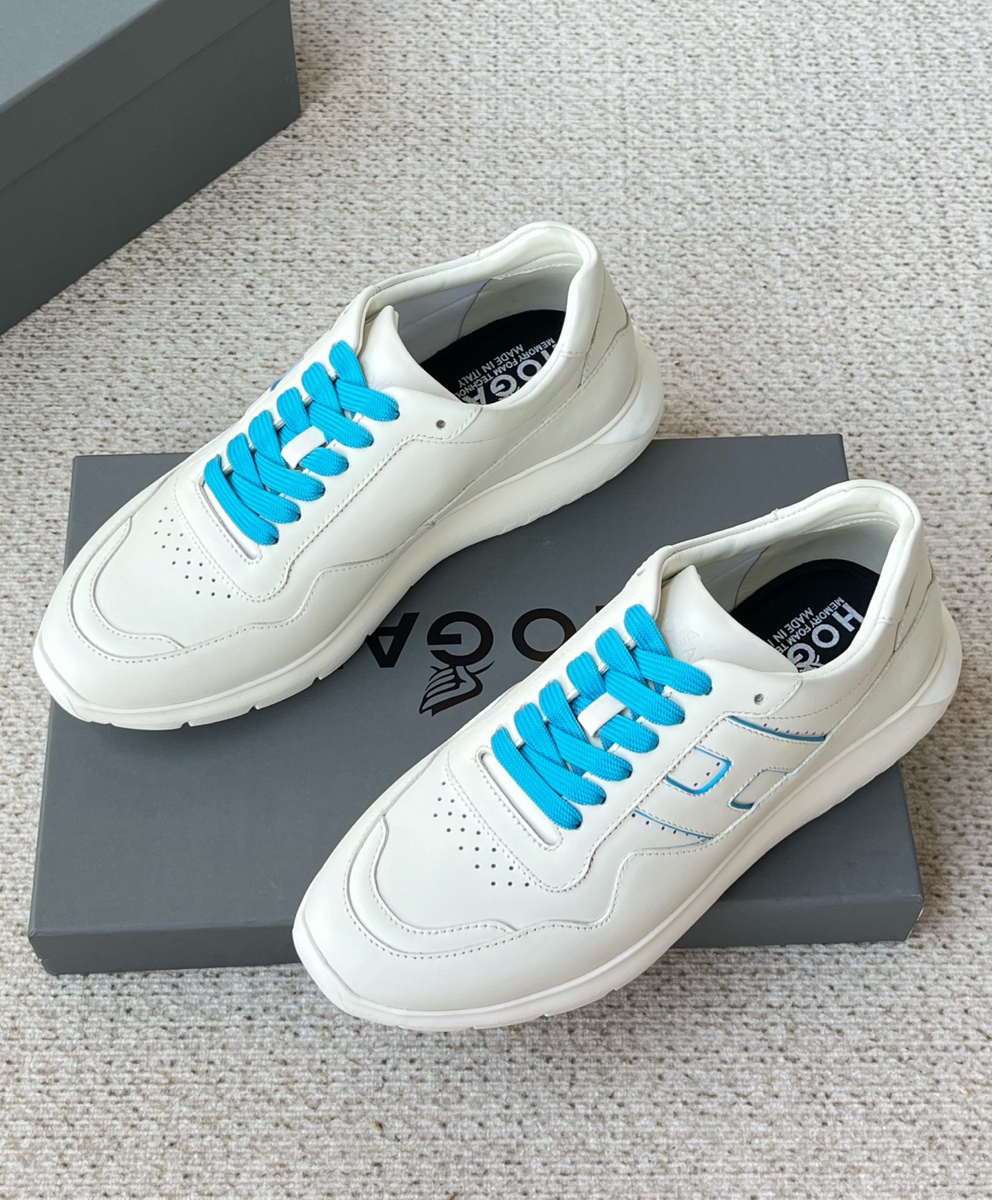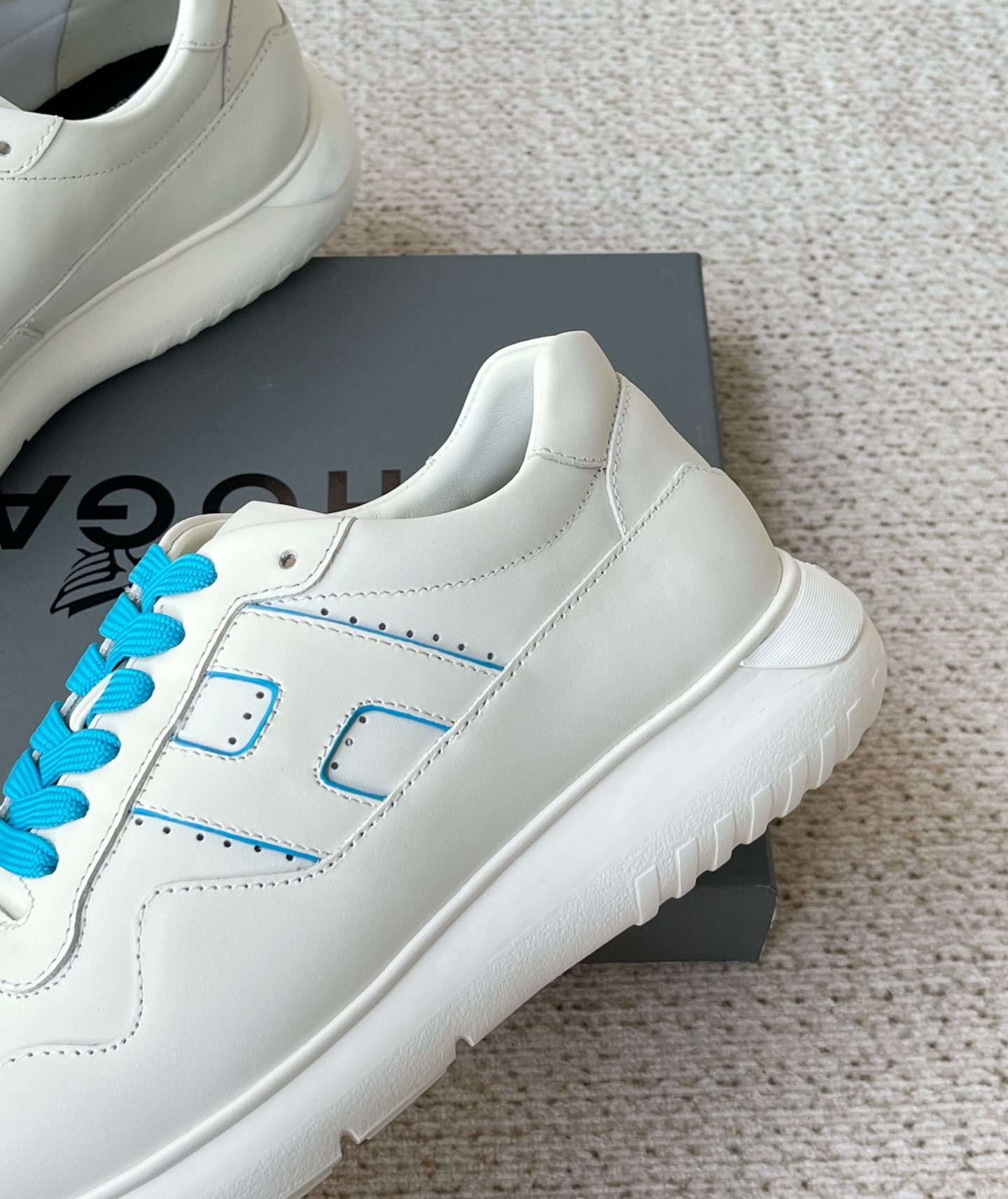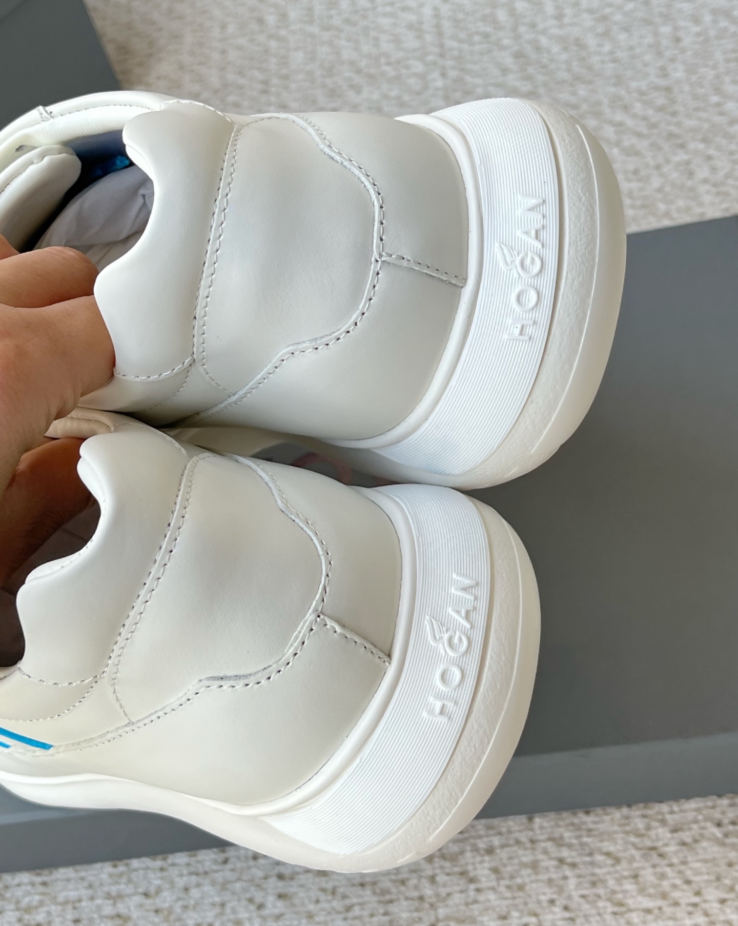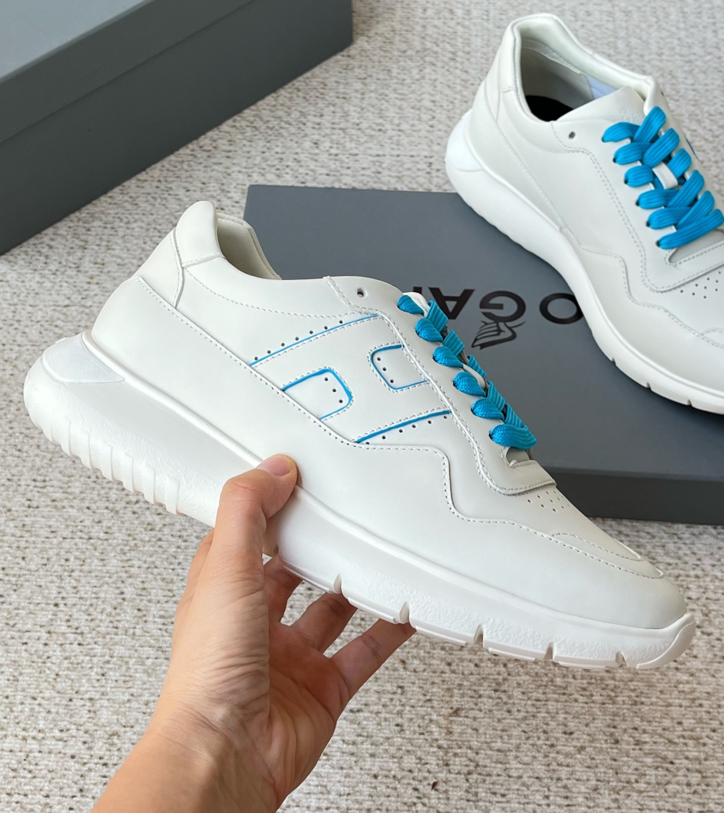 这款鞋子是AAAAA 1:1 质量 (非常棒). 使用了和原版一模一样的材料. 商标部分也保持了和Hogan一样. 图片拍摄是实物鞋子拍摄, 您所收到的实物保证和我们图片一模一样.
