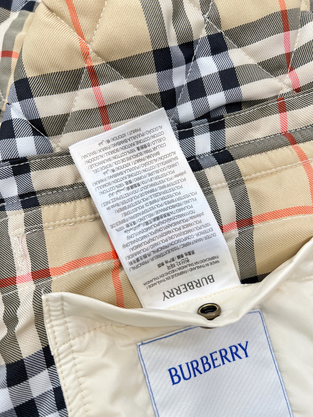 这款衣服是AAAAA 1:1 质量 (非常棒). 使用了和原版一模一样的材料. 商标部分也保持了和巴宝莉/Burberry一样. 图片拍摄是实物衣服拍摄, 您所收到的实物保证和我们图片一模一样.