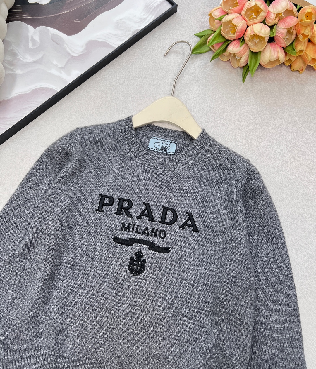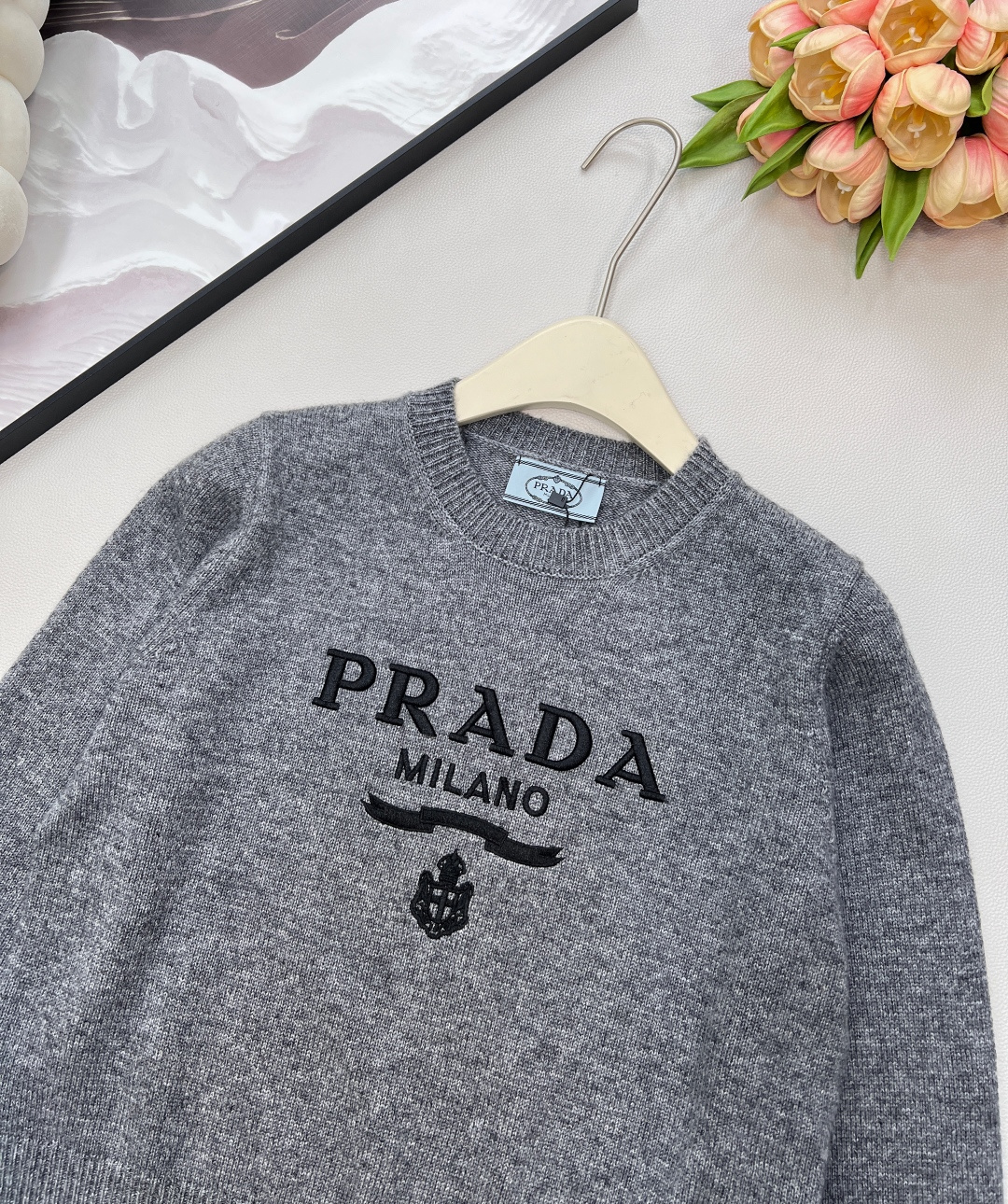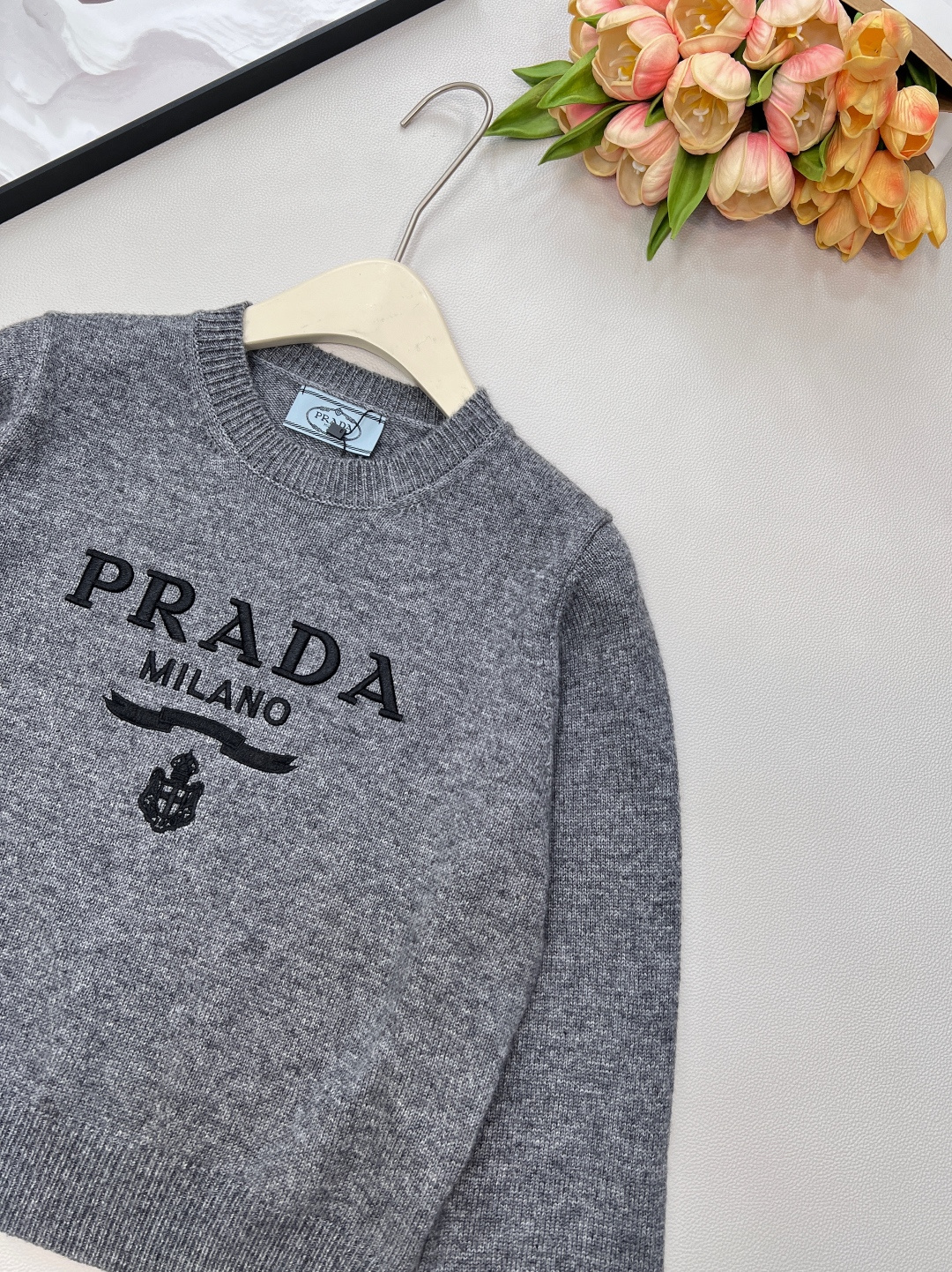 这款衣服是AAAAA 1:1 质量 (非常棒). 使用了和原版一模一样的材料. 商标部分也保持了和普拉达/Prada一样. 图片拍摄是实物衣服拍摄, 您所收到的实物保证和我们图片一模一样.