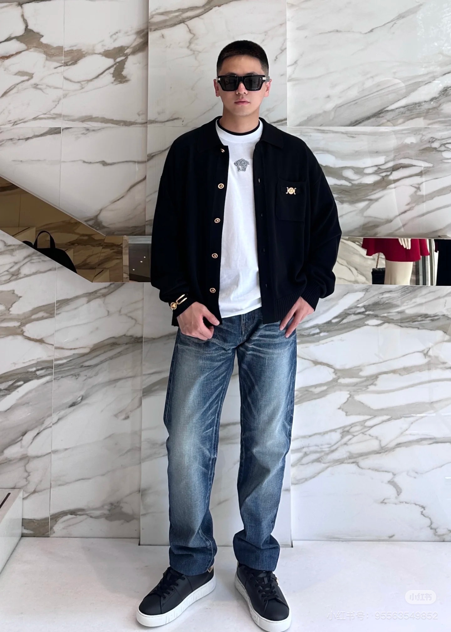 这款衣服是AAAAA 1:1 质量 (非常棒). 使用了和原版一模一样的材料. 商标部分也保持了和范思哲/Versace一样. 图片拍摄是实物衣服拍摄, 您所收到的实物保证和我们图片一模一样.
