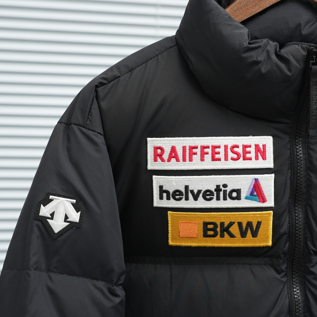这款衣服是AAAAA 1:1 质量 (非常棒). 使用了和原版一模一样的材料. 商标部分也保持了和Descente一样. 图片拍摄是实物衣服拍摄, 您所收到的实物保证和我们图片一模一样.