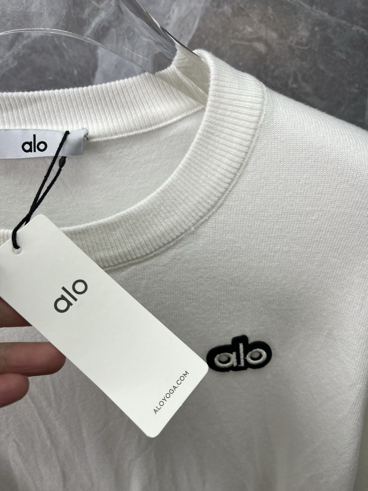 这款衣服是AAAAA 1:1 质量 (非常棒). 使用了和原版一模一样的材料. 商标部分也保持了和Alo Yoga一样. 图片拍摄是实物衣服拍摄, 您所收到的实物保证和我们图片一模一样.