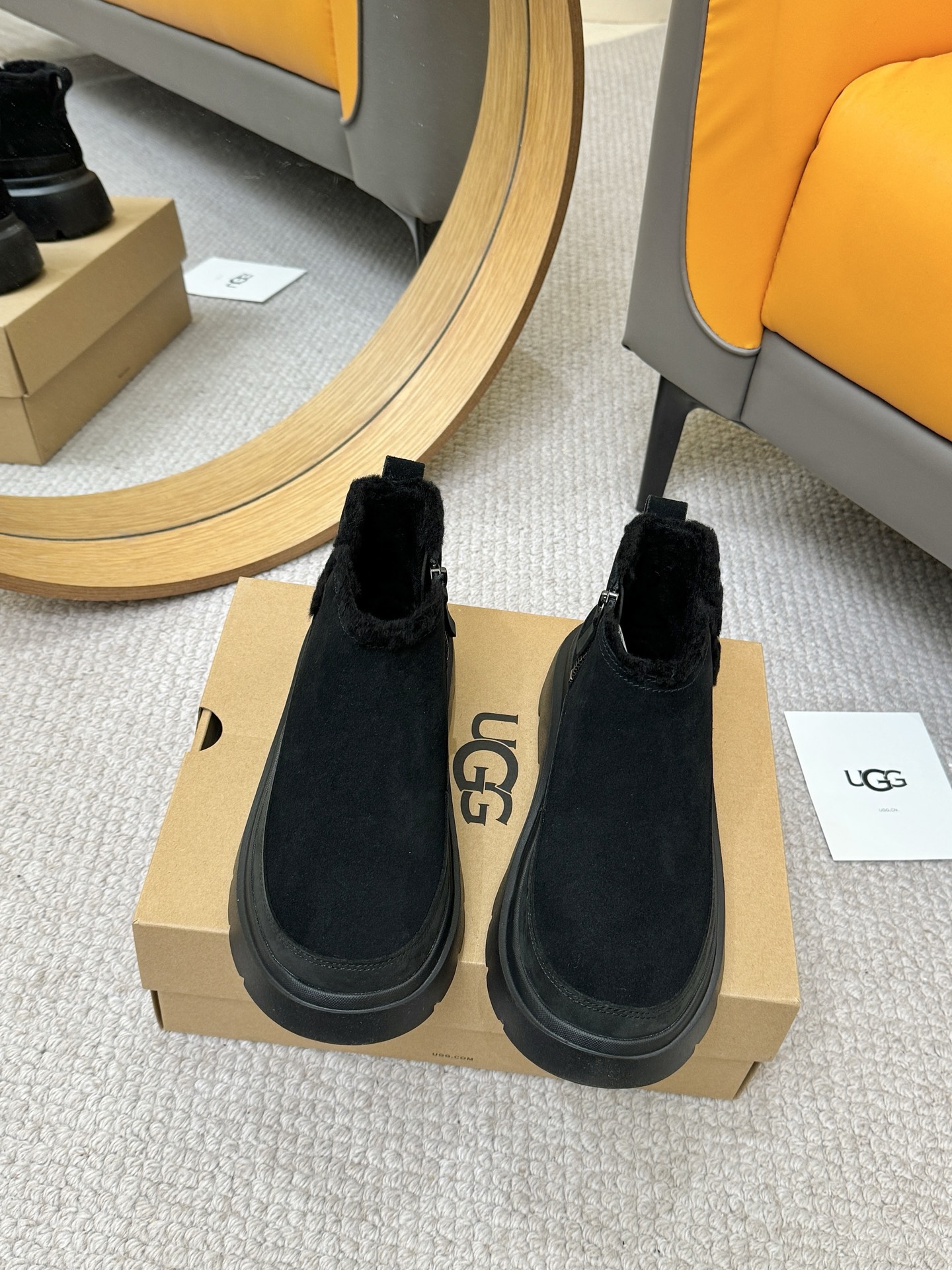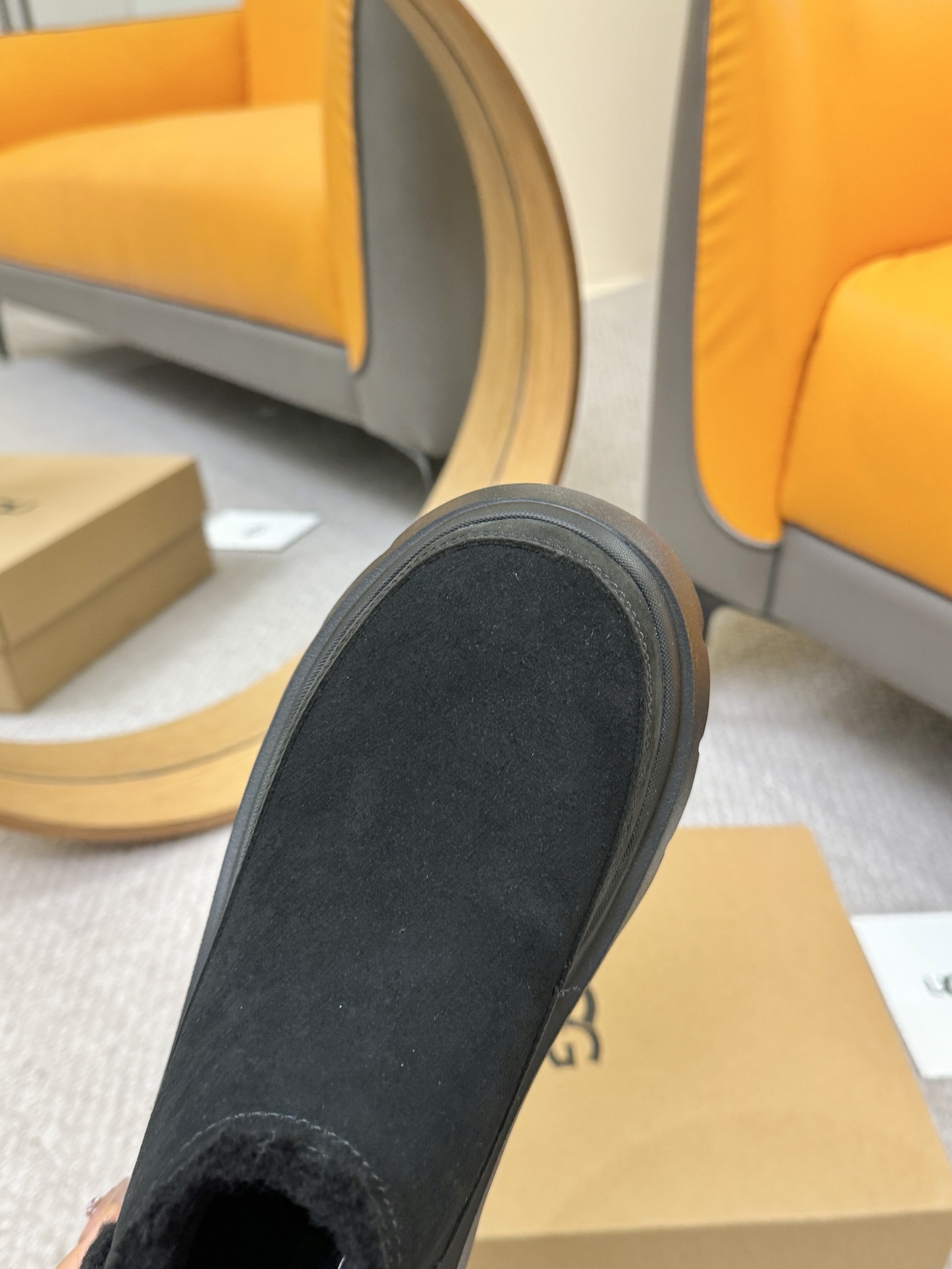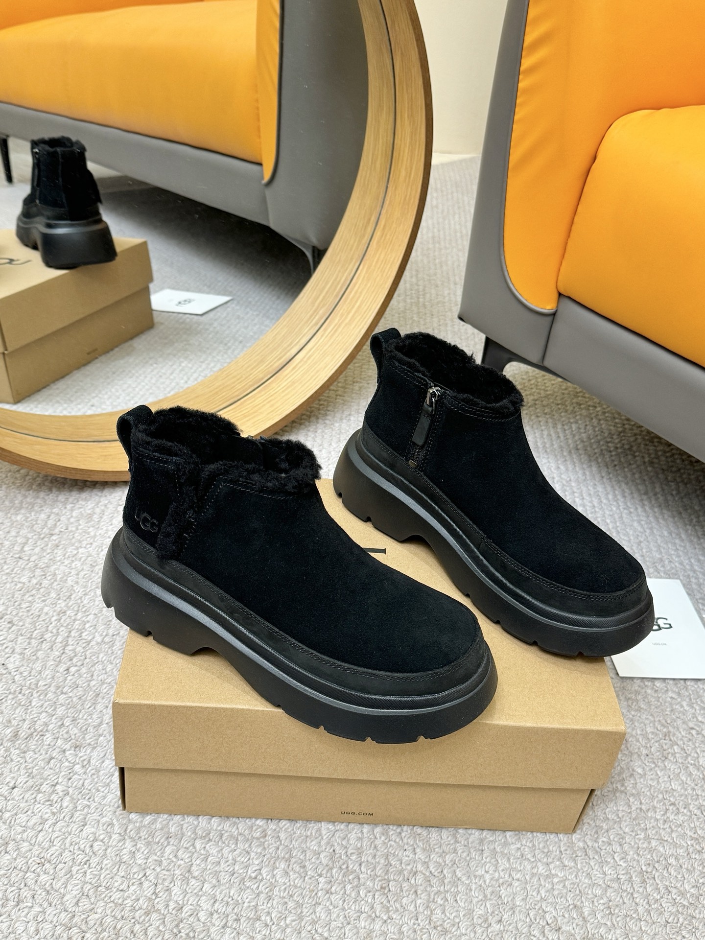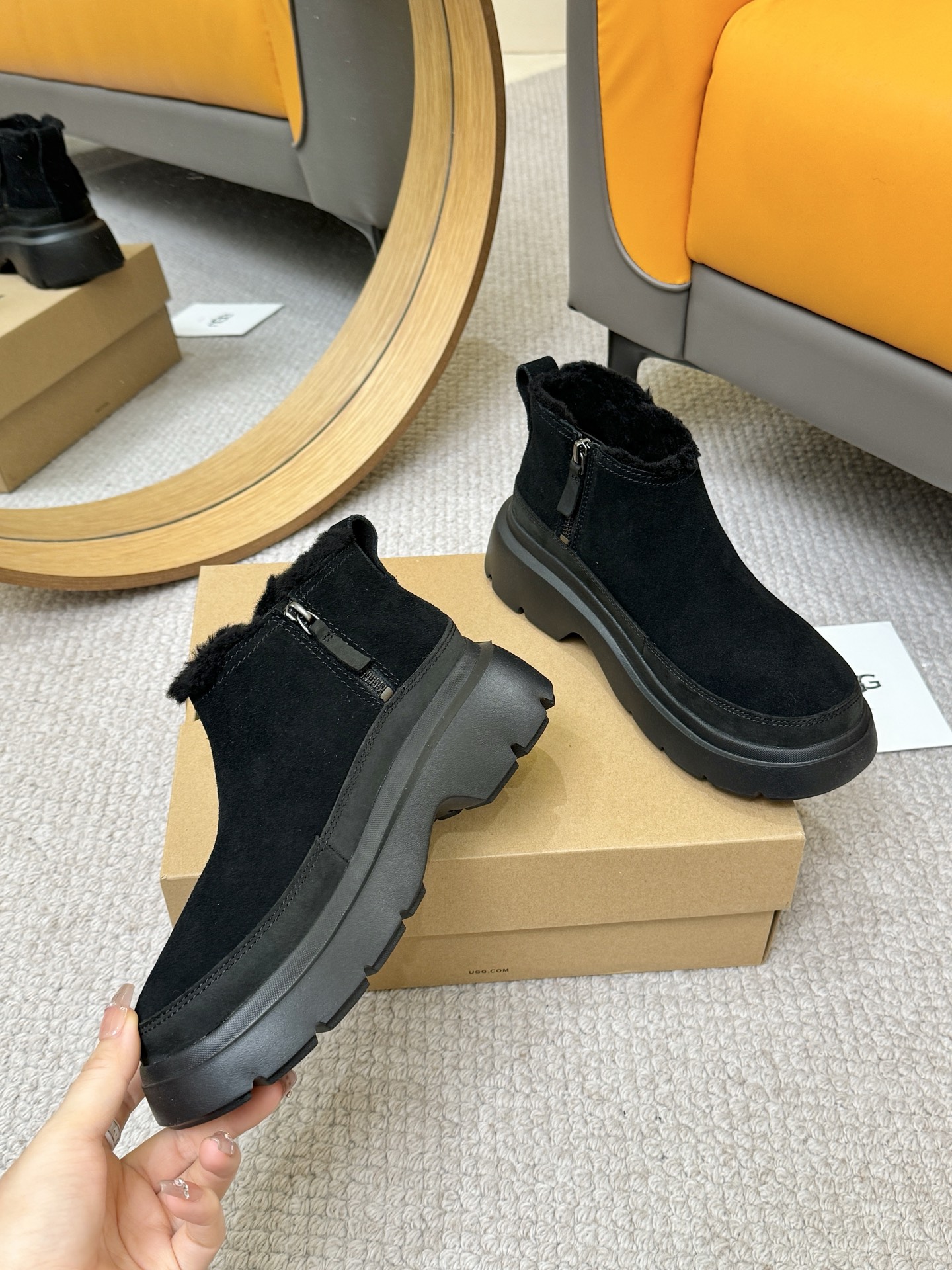 这款鞋子是AAAAA 1:1 质量 (非常棒). 使用了和原版一模一样的材料. 商标部分也保持了和UGG雪地靴一样. 图片拍摄是实物鞋子拍摄, 您所收到的实物保证和我们图片一模一样.