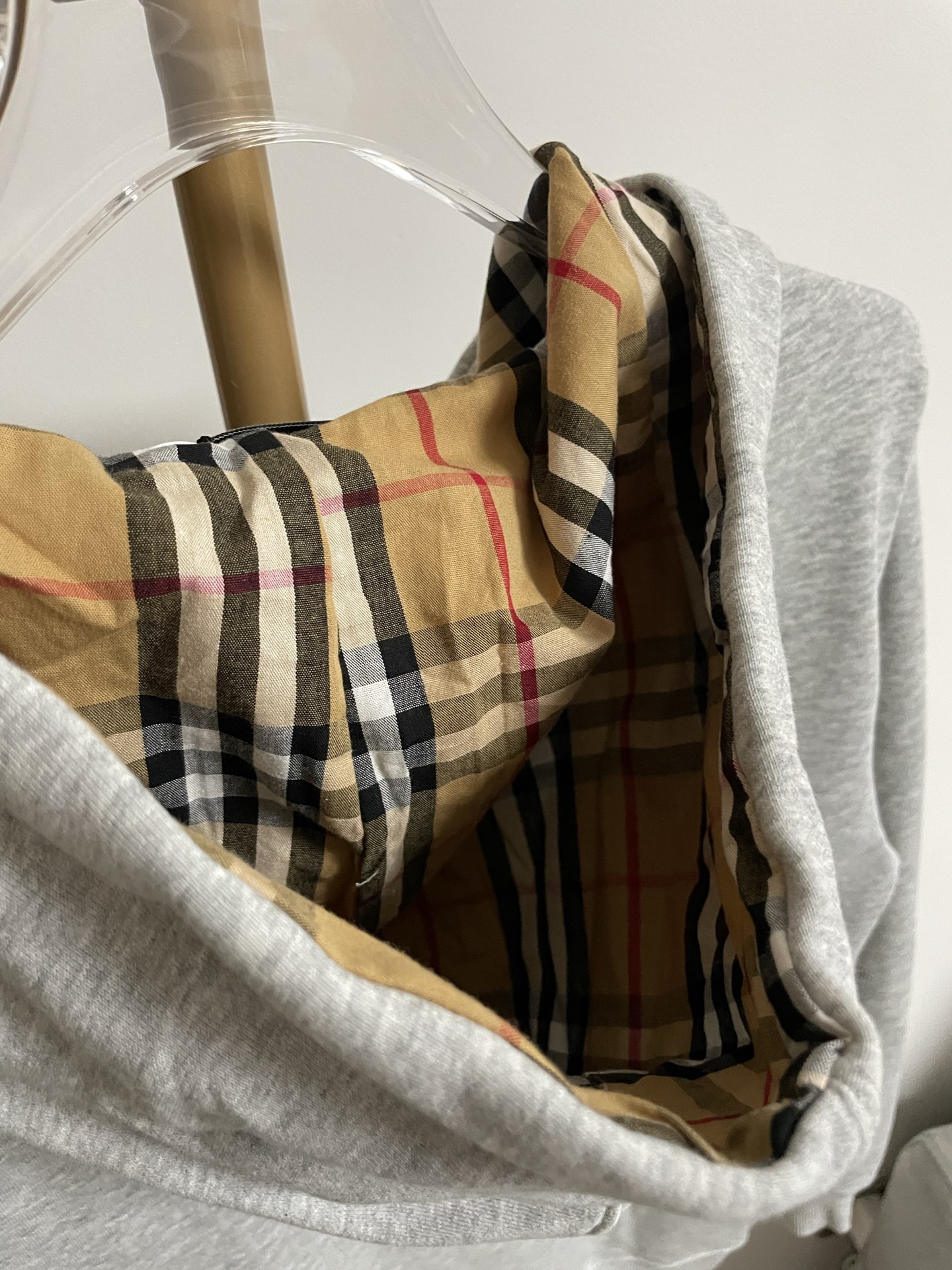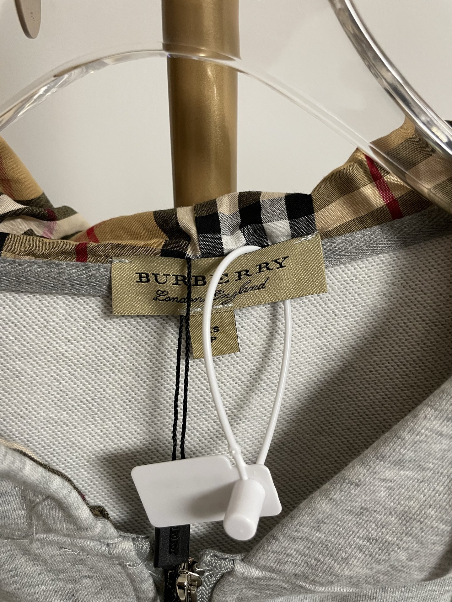 这款衣服是AAAAA 1:1 质量 (非常棒). 使用了和原版一模一样的材料. 商标部分也保持了和巴宝莉/Burberry一样. 图片拍摄是实物衣服拍摄, 您所收到的实物保证和我们图片一模一样.