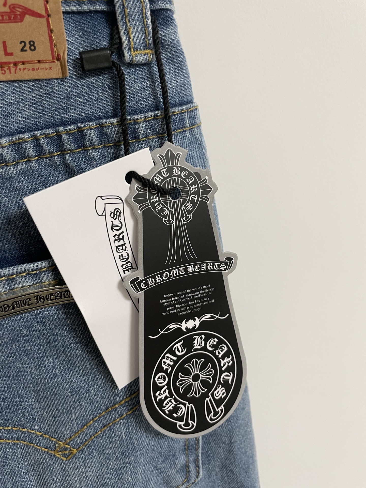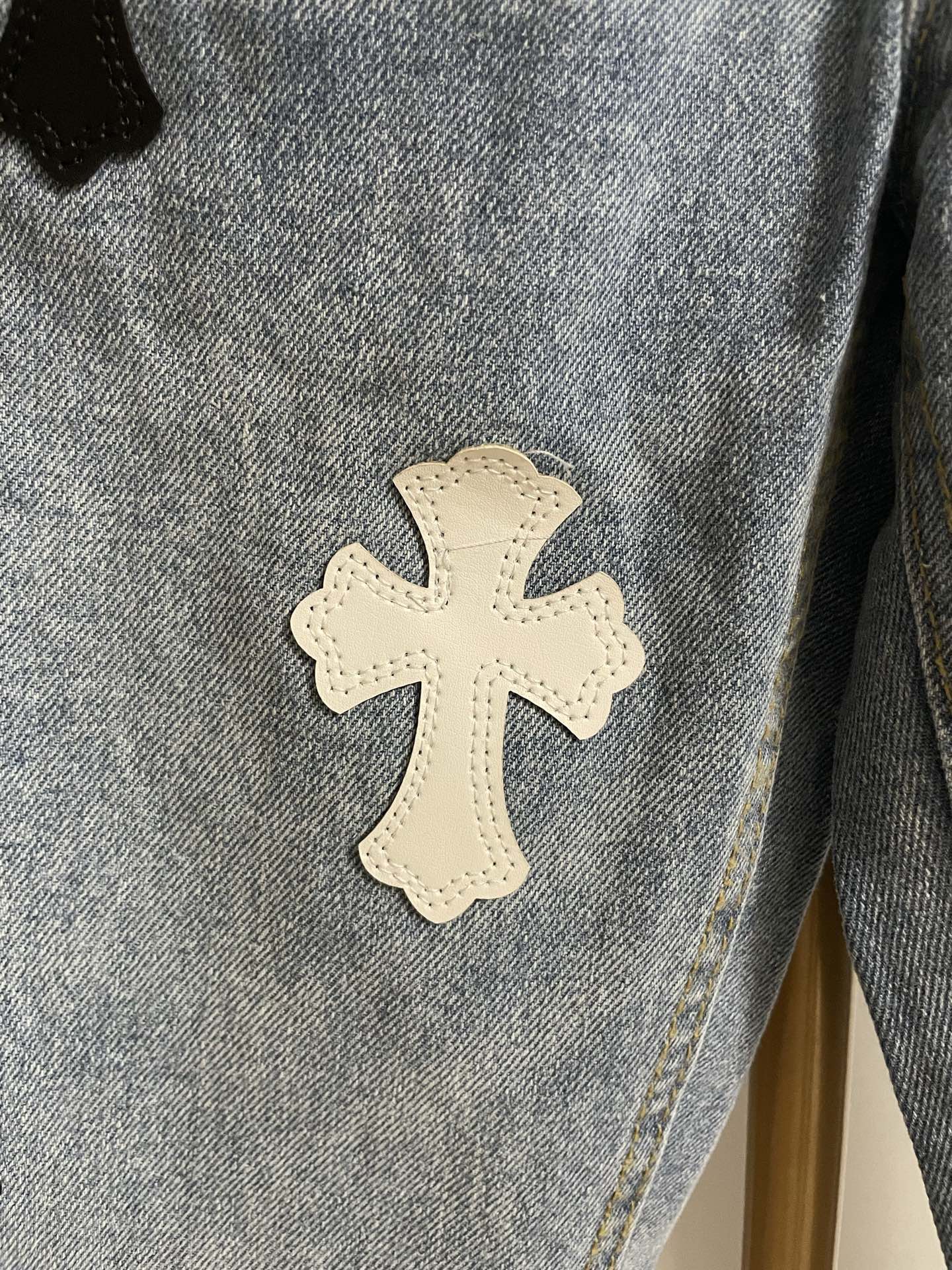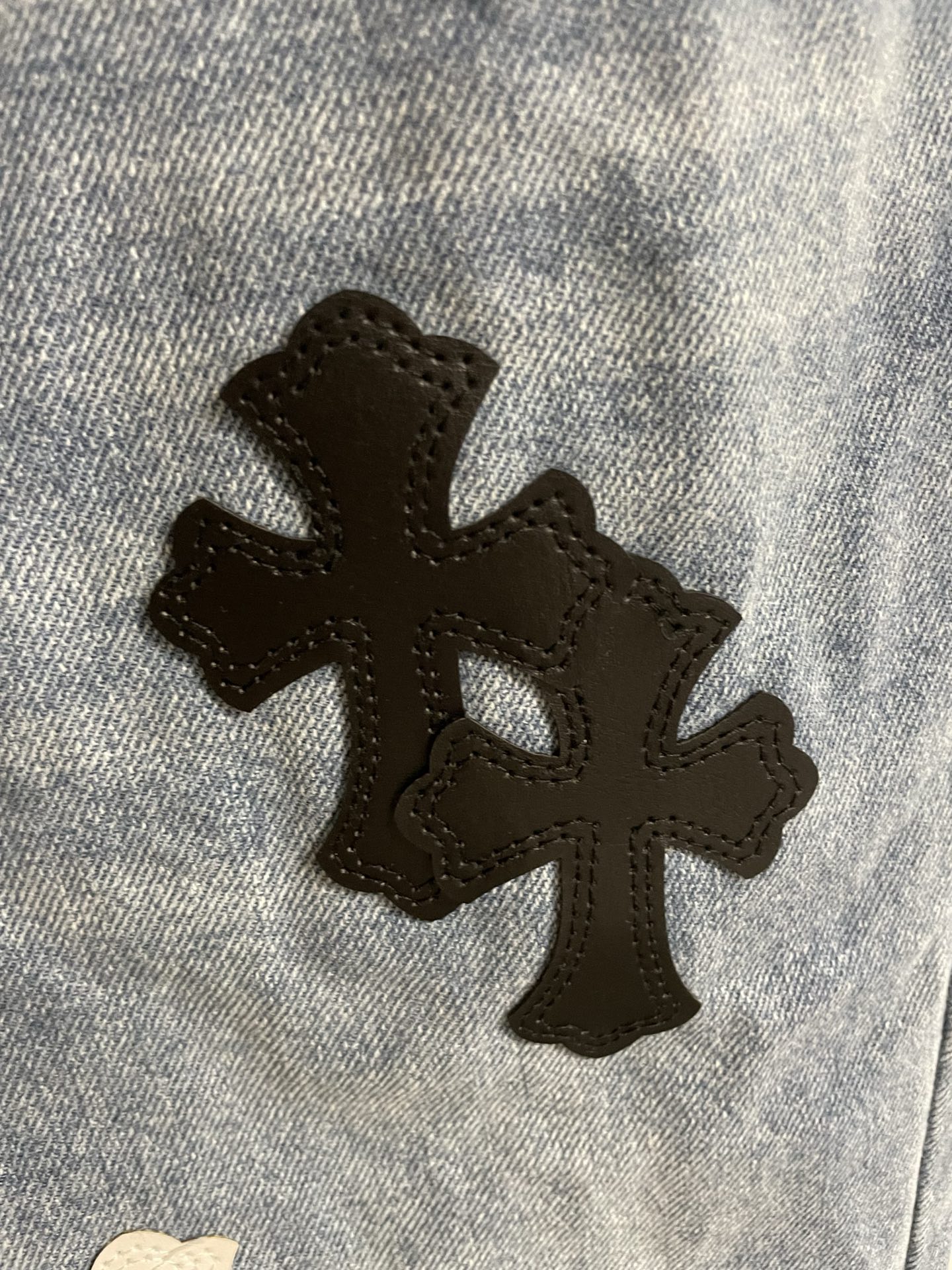 这款衣服是AAAAA 1:1 质量 (非常棒). 使用了和原版一模一样的材料. 商标部分也保持了和克罗心/Chrome Hearts一样. 图片拍摄是实物衣服拍摄, 您所收到的实物保证和我们图片一模一样.