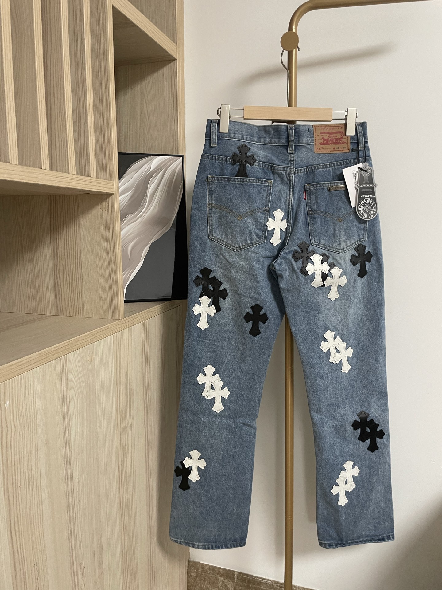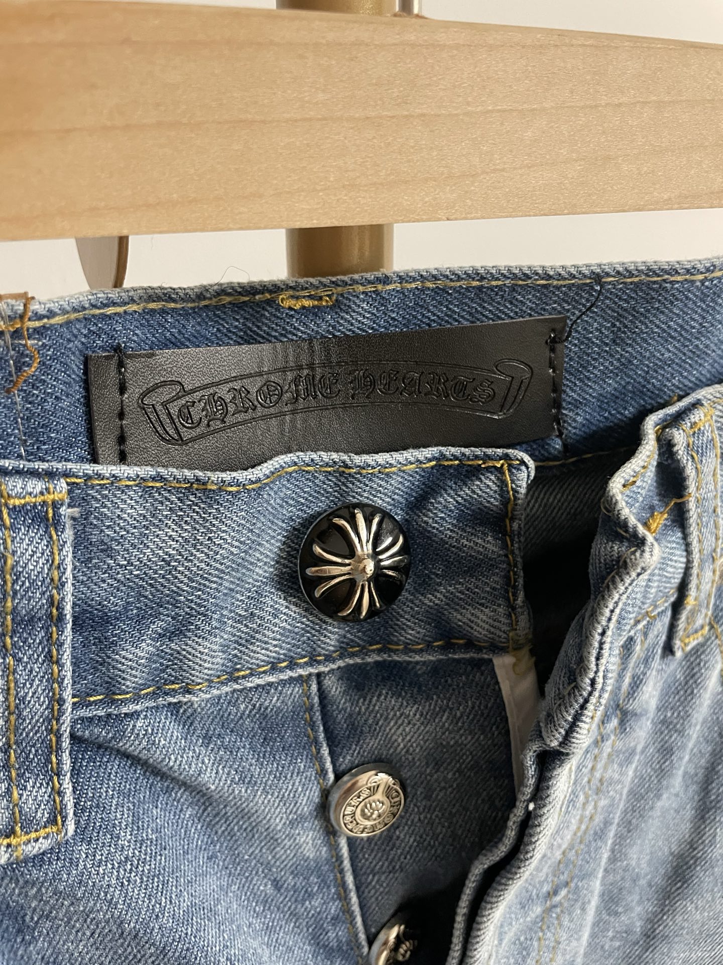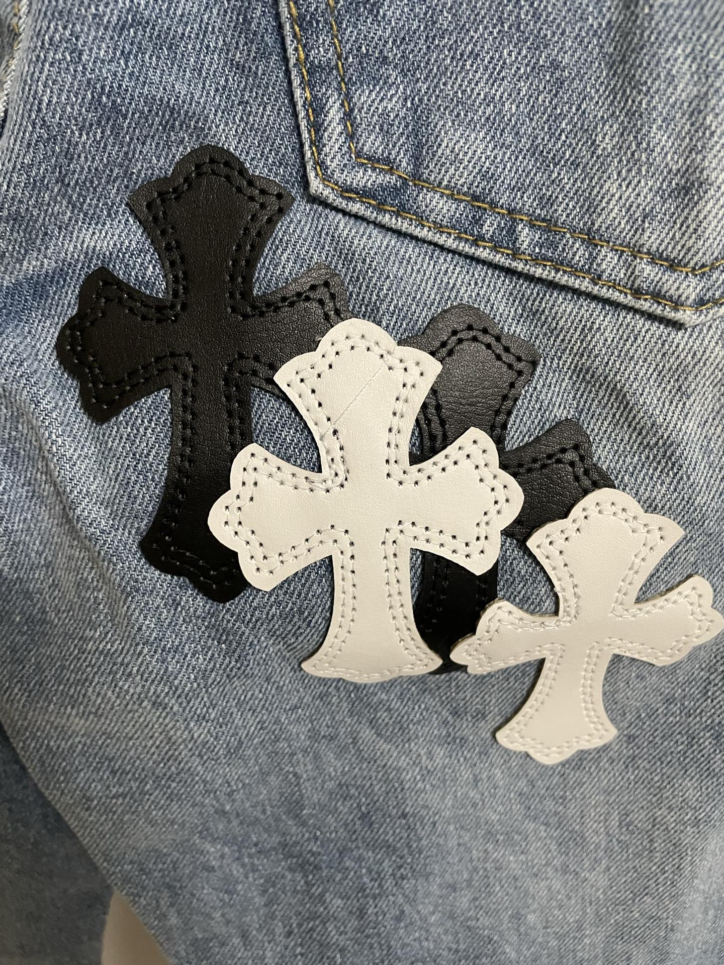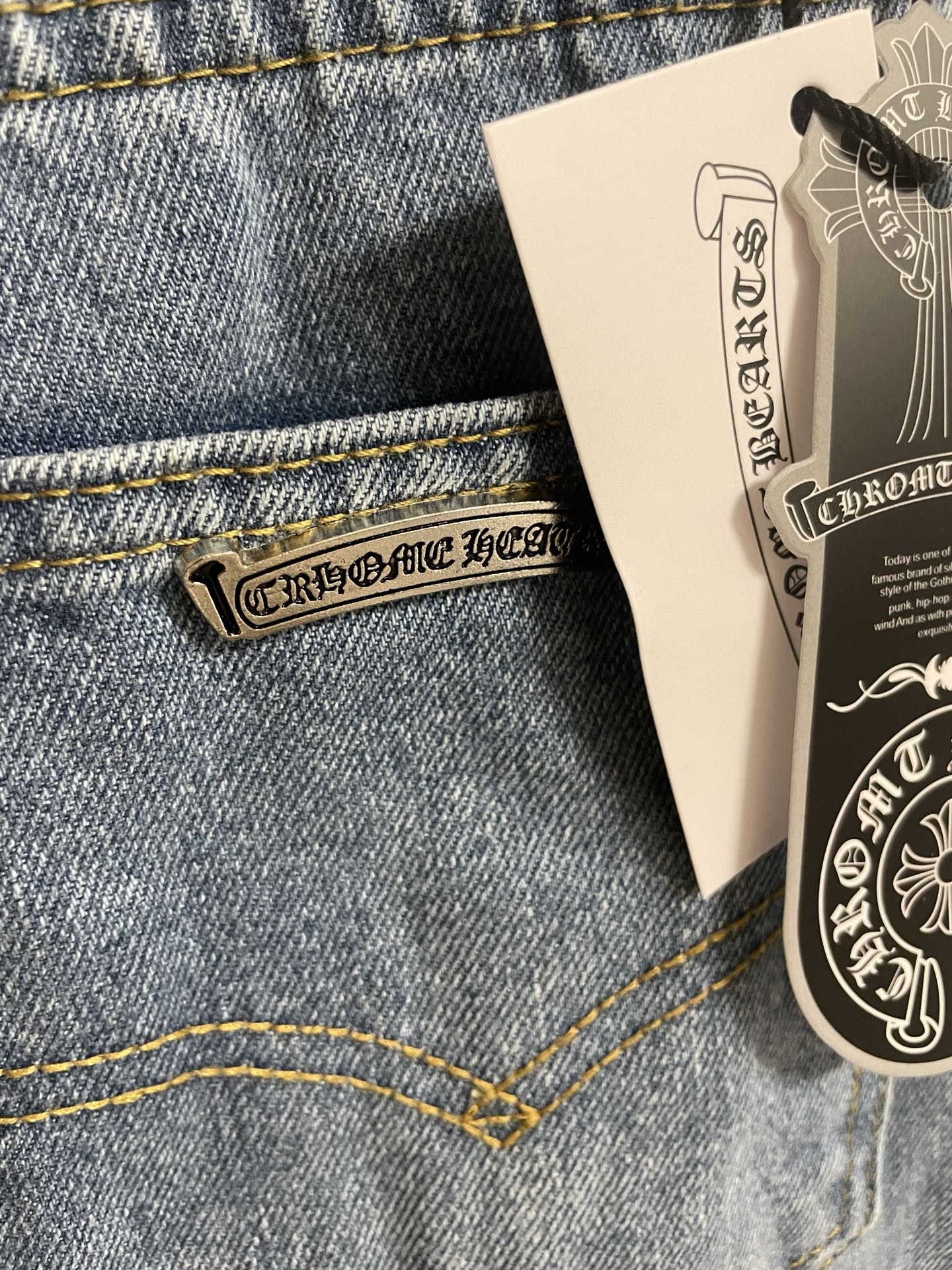 这款衣服是AAAAA 1:1 质量 (非常棒). 使用了和原版一模一样的材料. 商标部分也保持了和克罗心/Chrome Hearts一样. 图片拍摄是实物衣服拍摄, 您所收到的实物保证和我们图片一模一样.