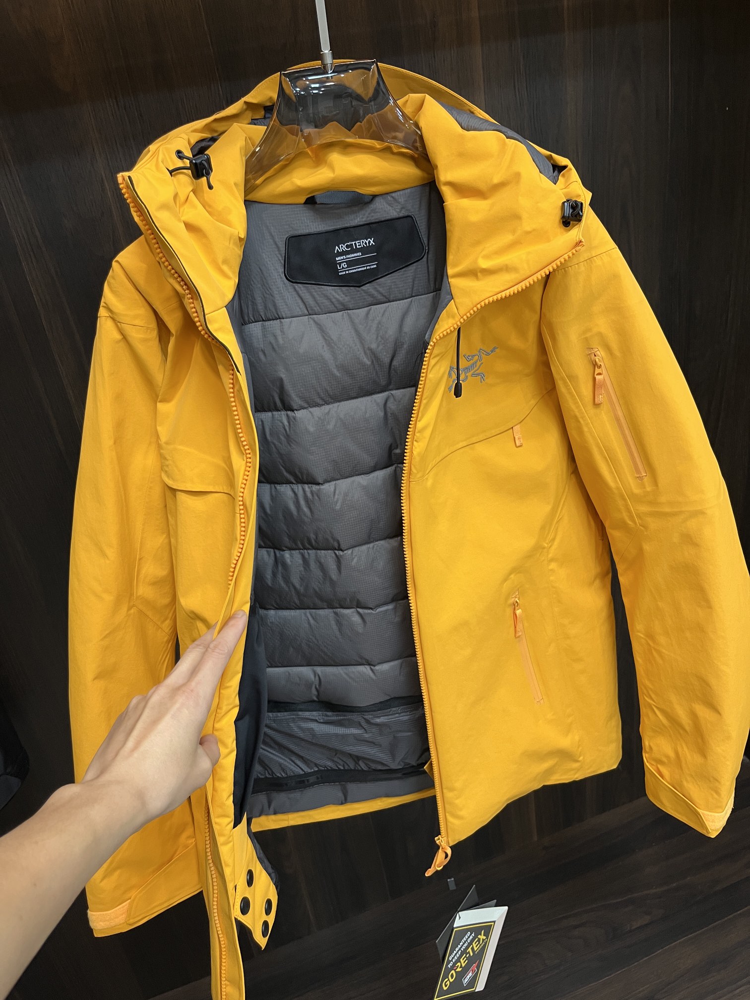 这款衣服是AAAAA 1:1 质量 (非常棒). 使用了和原版一模一样的材料. 商标部分也保持了和ARC'TERYX一样. 图片拍摄是实物衣服拍摄, 您所收到的实物保证和我们图片一模一样.