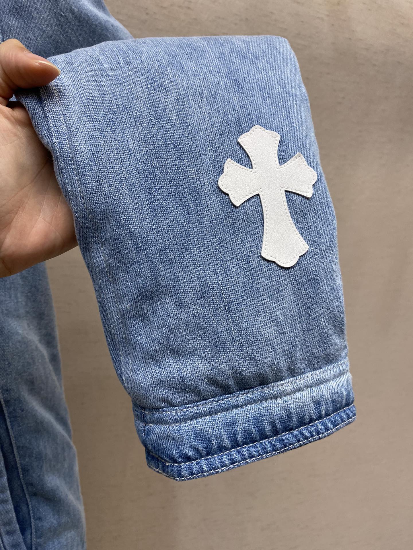 这款衣服是AAAAA 1:1 质量 (非常棒). 使用了和原版一模一样的材料. 商标部分也保持了和克罗心/Chrome Hearts一样. 图片拍摄是实物衣服拍摄, 您所收到的实物保证和我们图片一模一样.