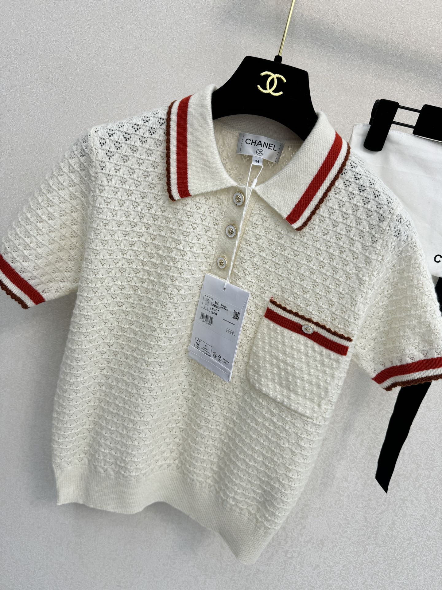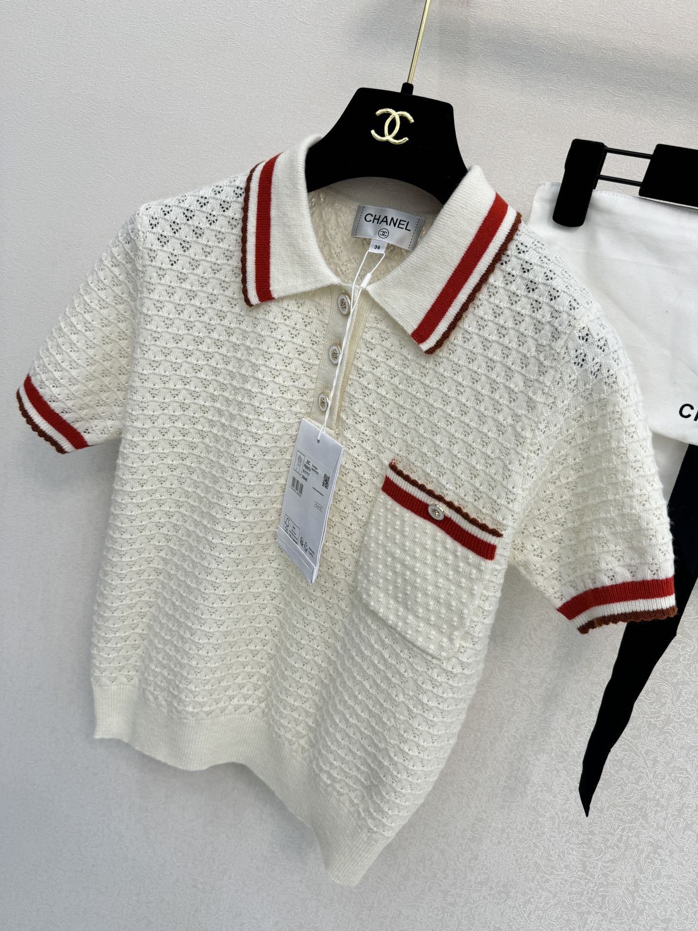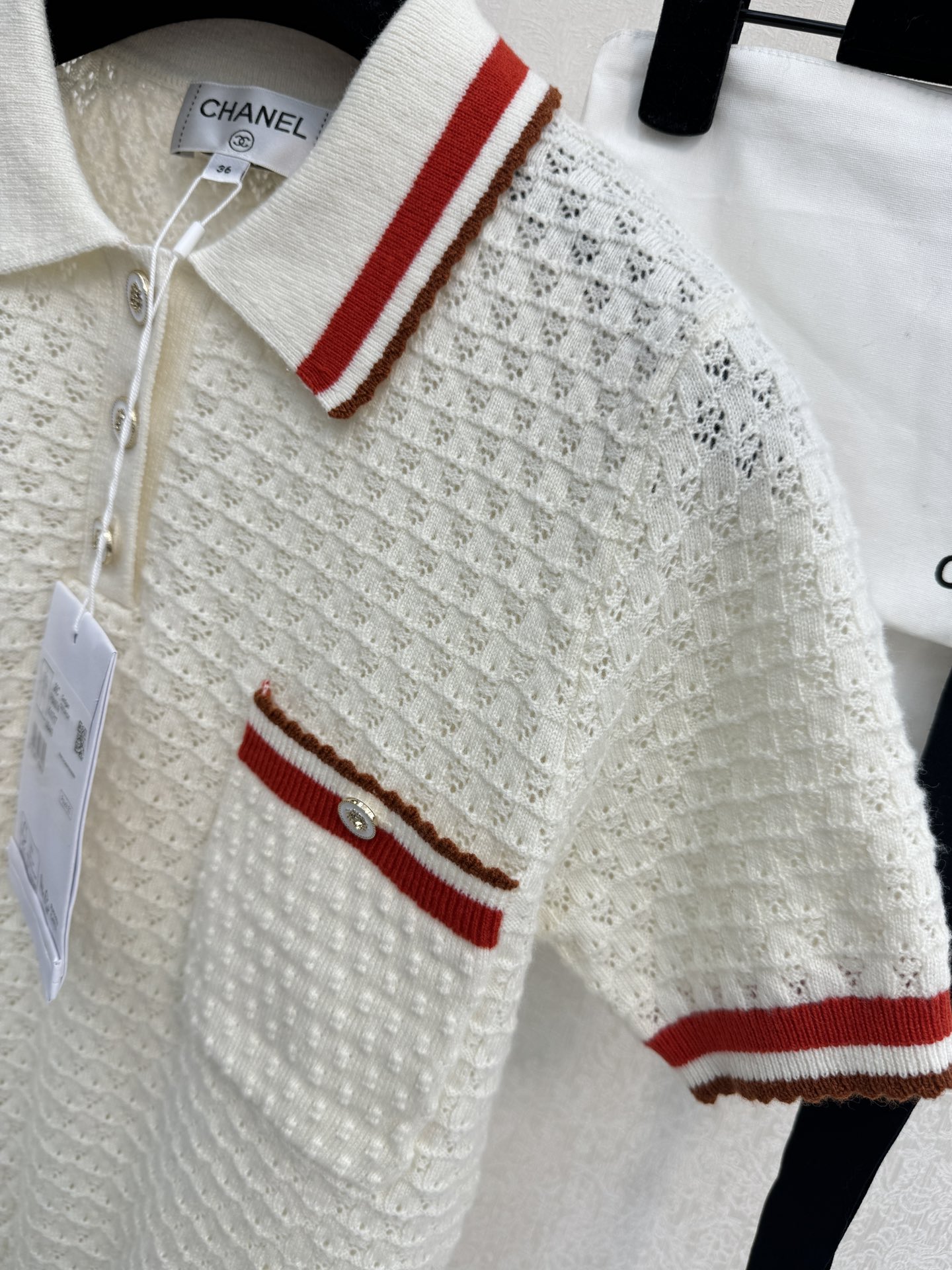 这款衣服是AAAAA 1:1 质量 (非常棒). 使用了和原版一模一样的材料. 商标部分也保持了和香奈儿/Chanel一样. 图片拍摄是实物衣服拍摄, 您所收到的实物保证和我们图片一模一样.