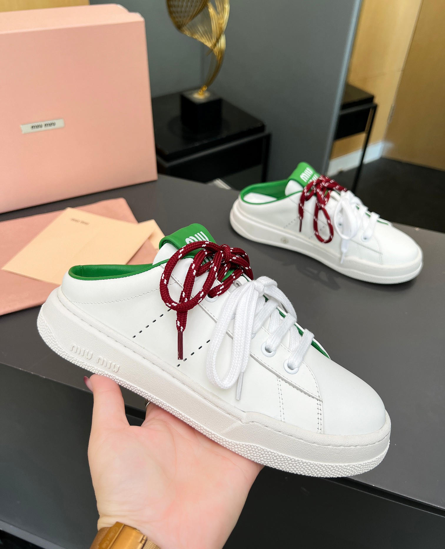 这款鞋子是AAAAA 1:1 质量 (非常棒). 使用了和原版一模一样的材料. 商标部分也保持了和缪缪/Miu Miu一样. 图片拍摄是实物鞋子拍摄, 您所收到的实物保证和我们图片一模一样.