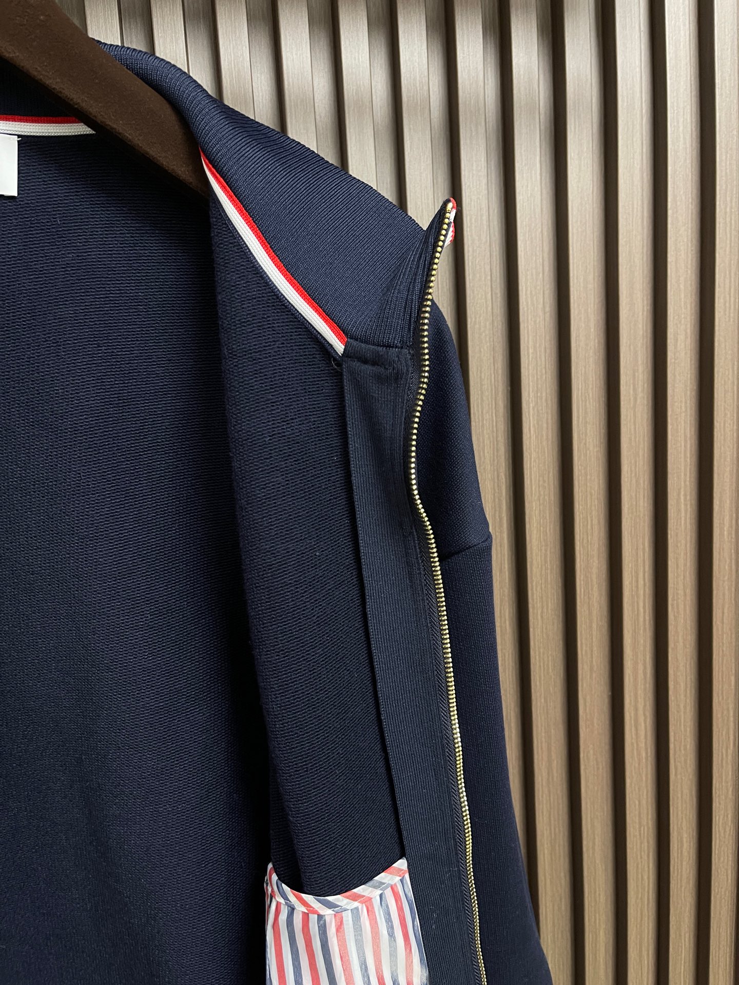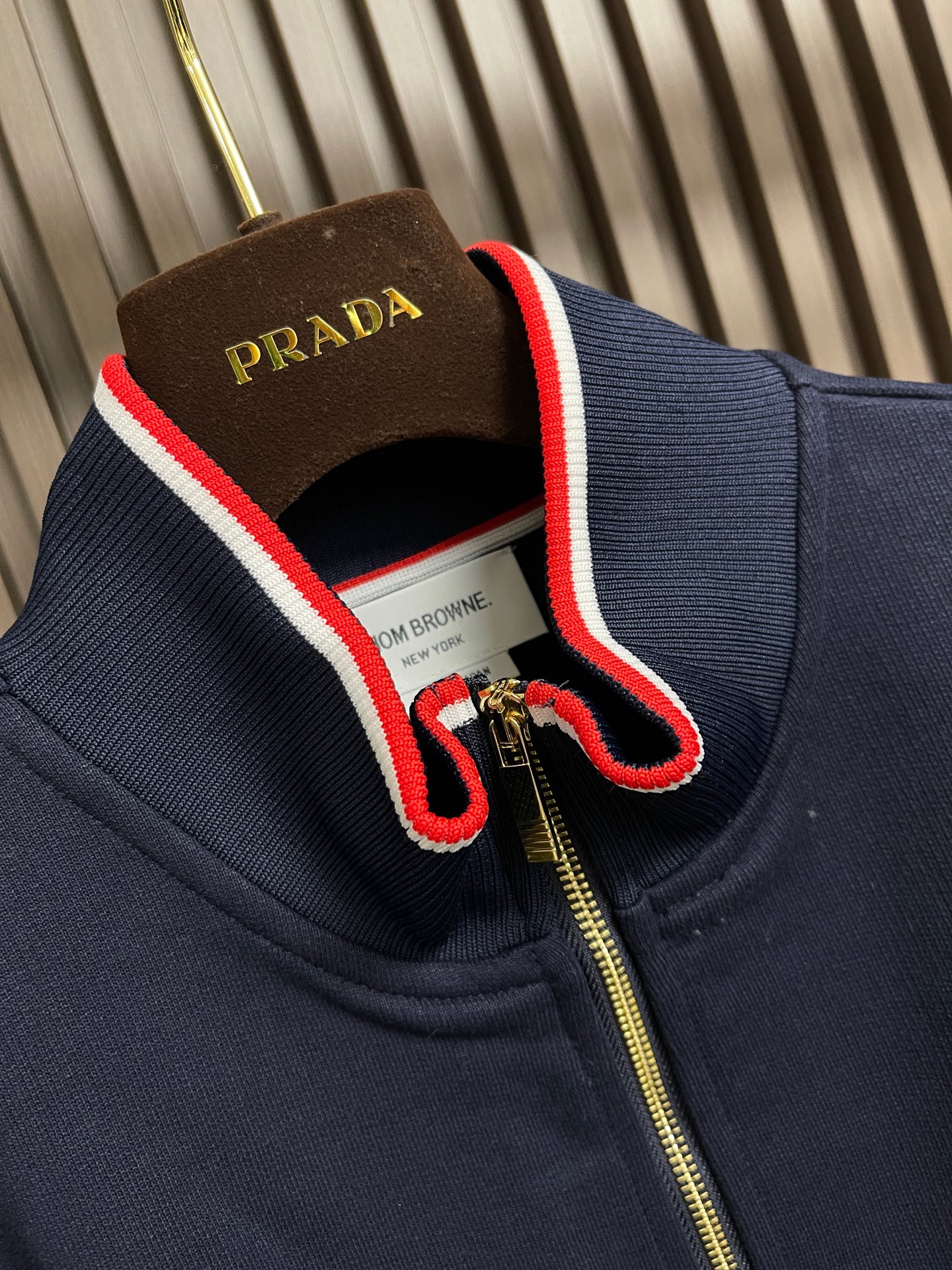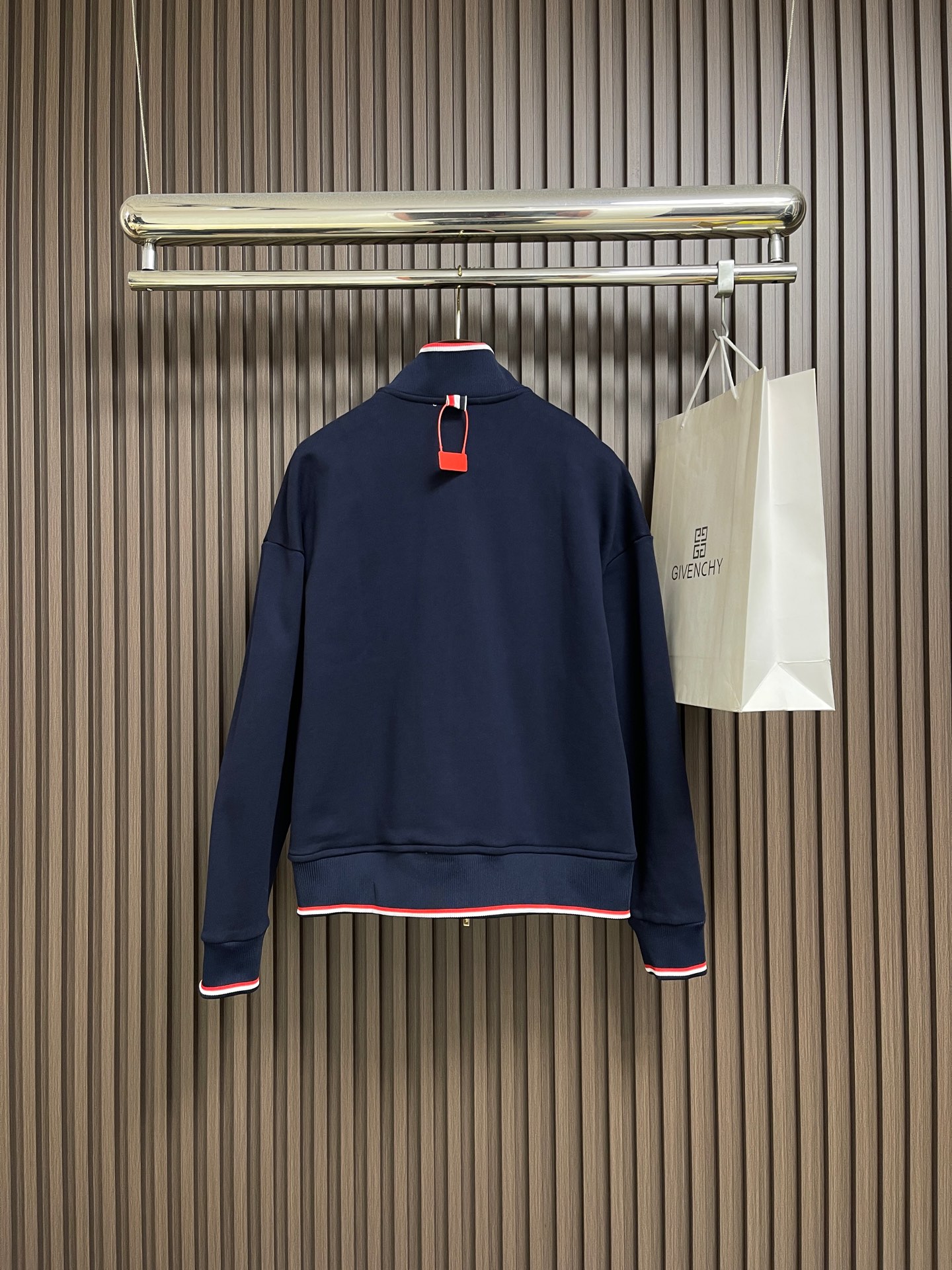 这款衣服是AAAAA 1:1 质量 (非常棒). 使用了和原版一模一样的材料. 商标部分也保持了和汤姆布朗/Thom Browne一样. 图片拍摄是实物衣服拍摄, 您所收到的实物保证和我们图片一模一样.