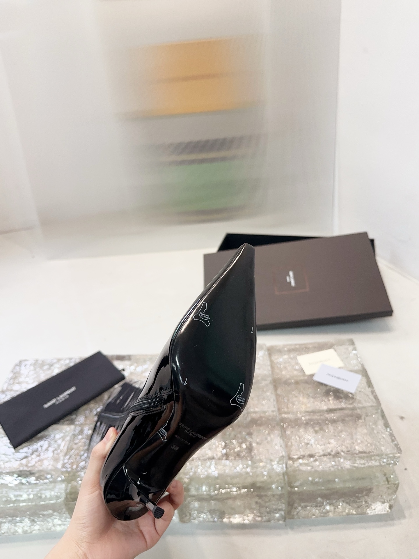 这款鞋子是AAAAA 1:1 质量 (非常棒). 使用了和原版一模一样的材料. 商标部分也保持了和圣罗兰/Saint Laurent一样. 图片拍摄是实物鞋子拍摄, 您所收到的实物保证和我们图片一模一样.