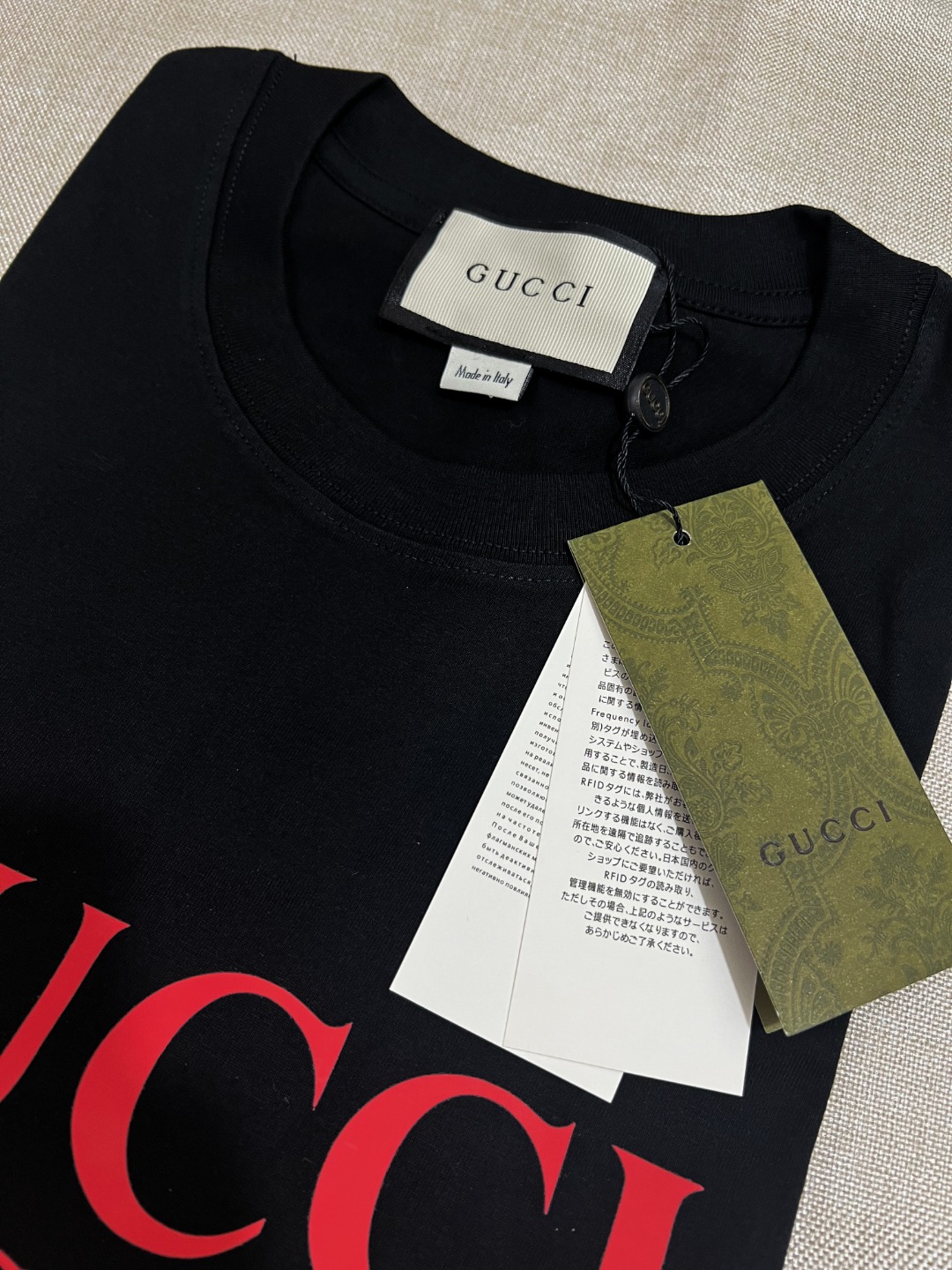 这款衣服是AAAAA 1:1 质量 (非常棒). 使用了和原版一模一样的材料. 商标部分也保持了和古奇/Gucci一样. 图片拍摄是实物衣服拍摄, 您所收到的实物保证和我们图片一模一样.