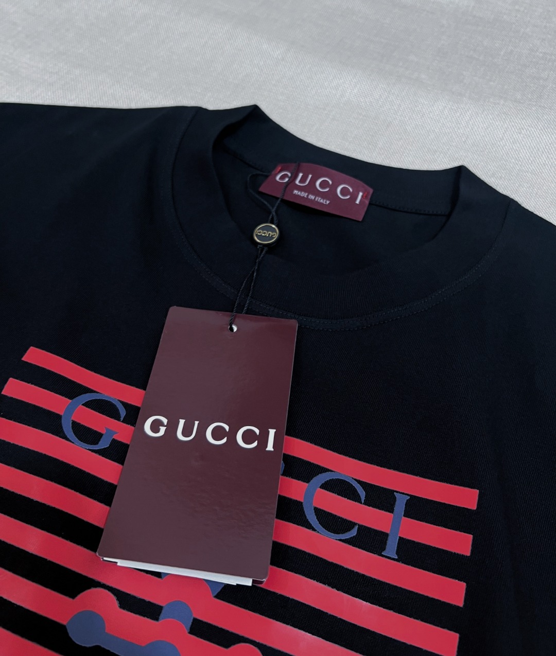 这款衣服是AAAAA 1:1 质量 (非常棒). 使用了和原版一模一样的材料. 商标部分也保持了和古奇/Gucci一样. 图片拍摄是实物衣服拍摄, 您所收到的实物保证和我们图片一模一样.