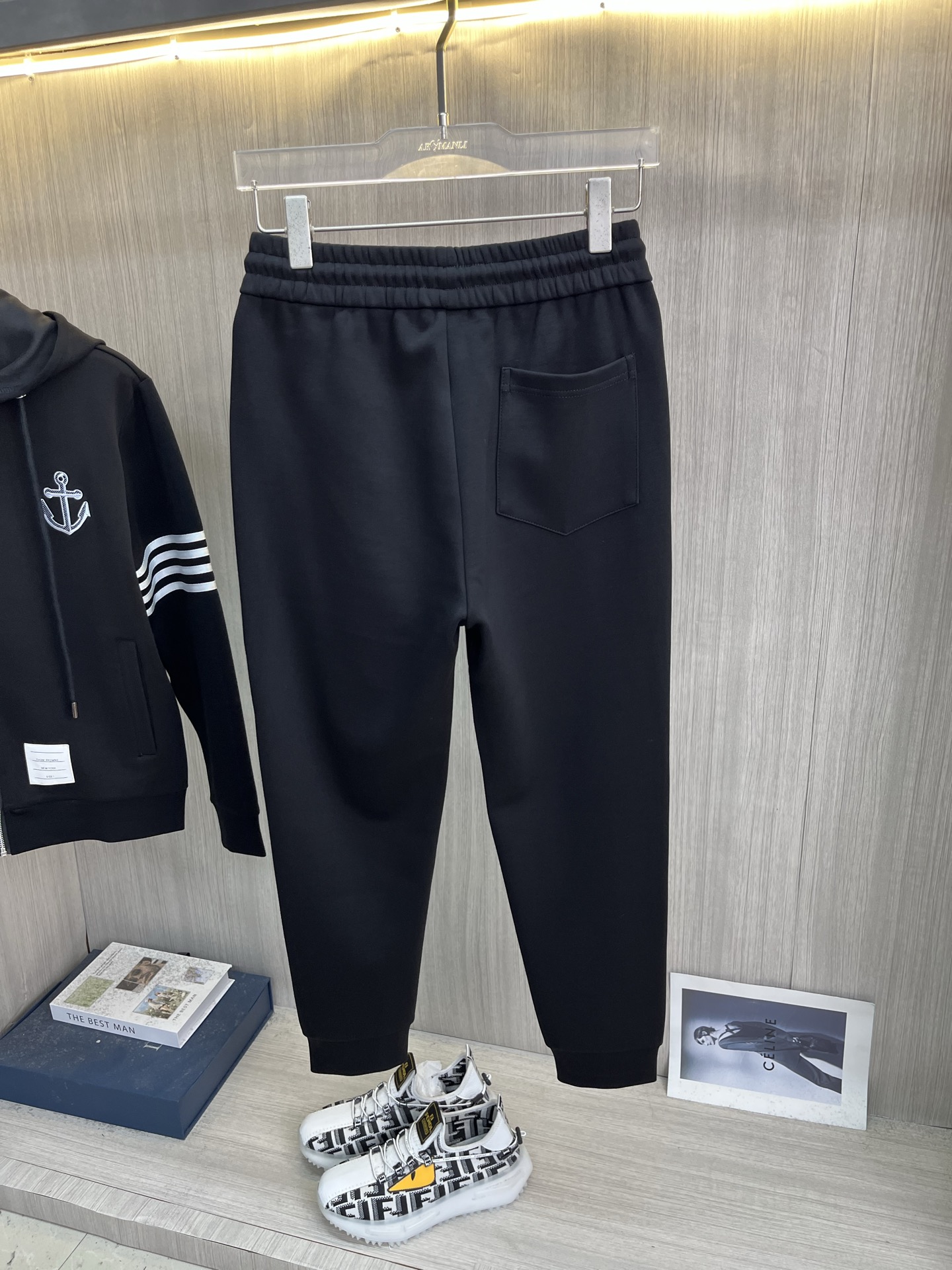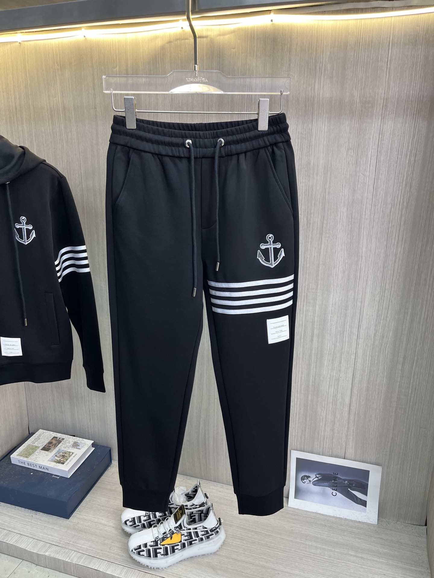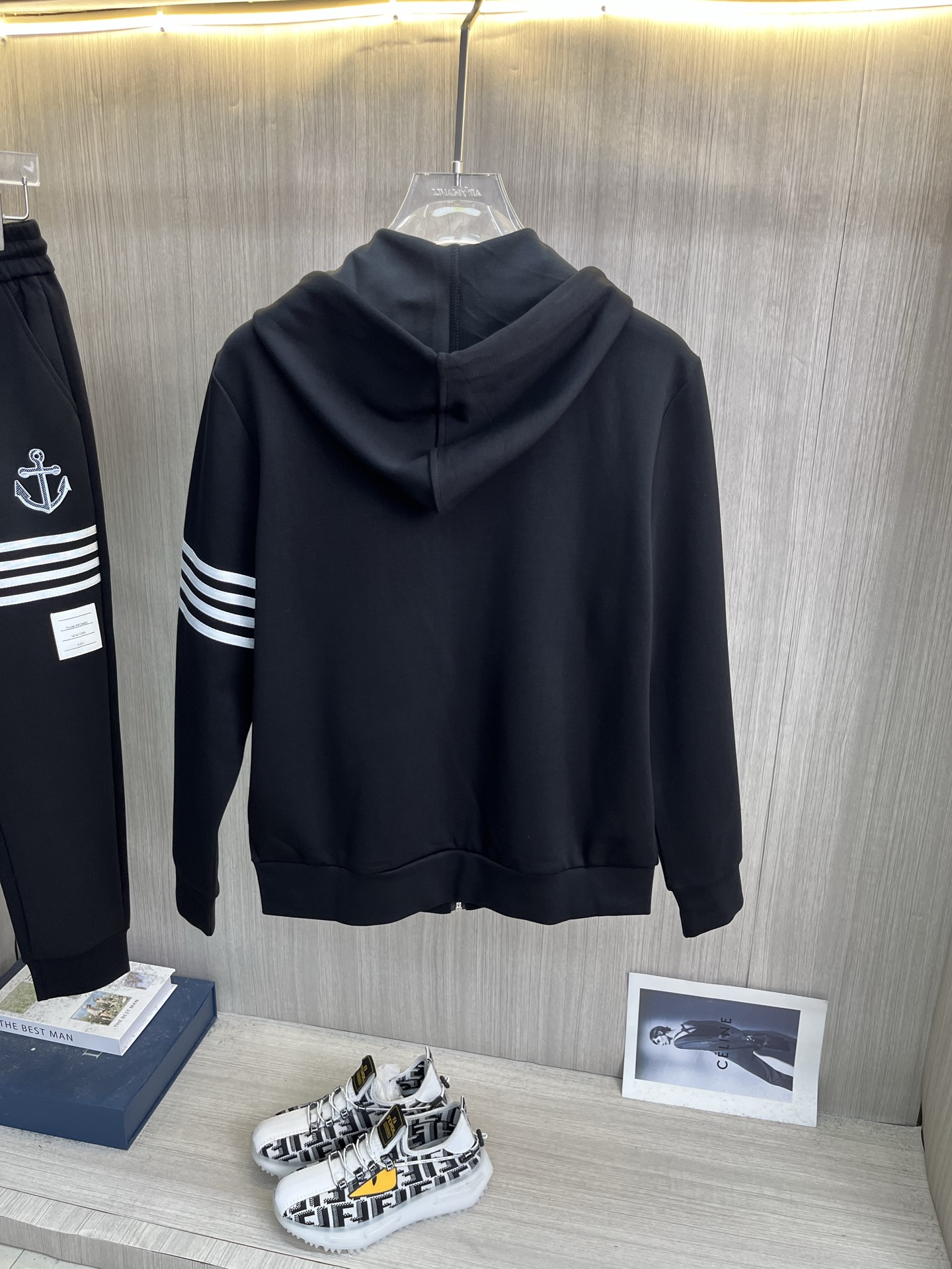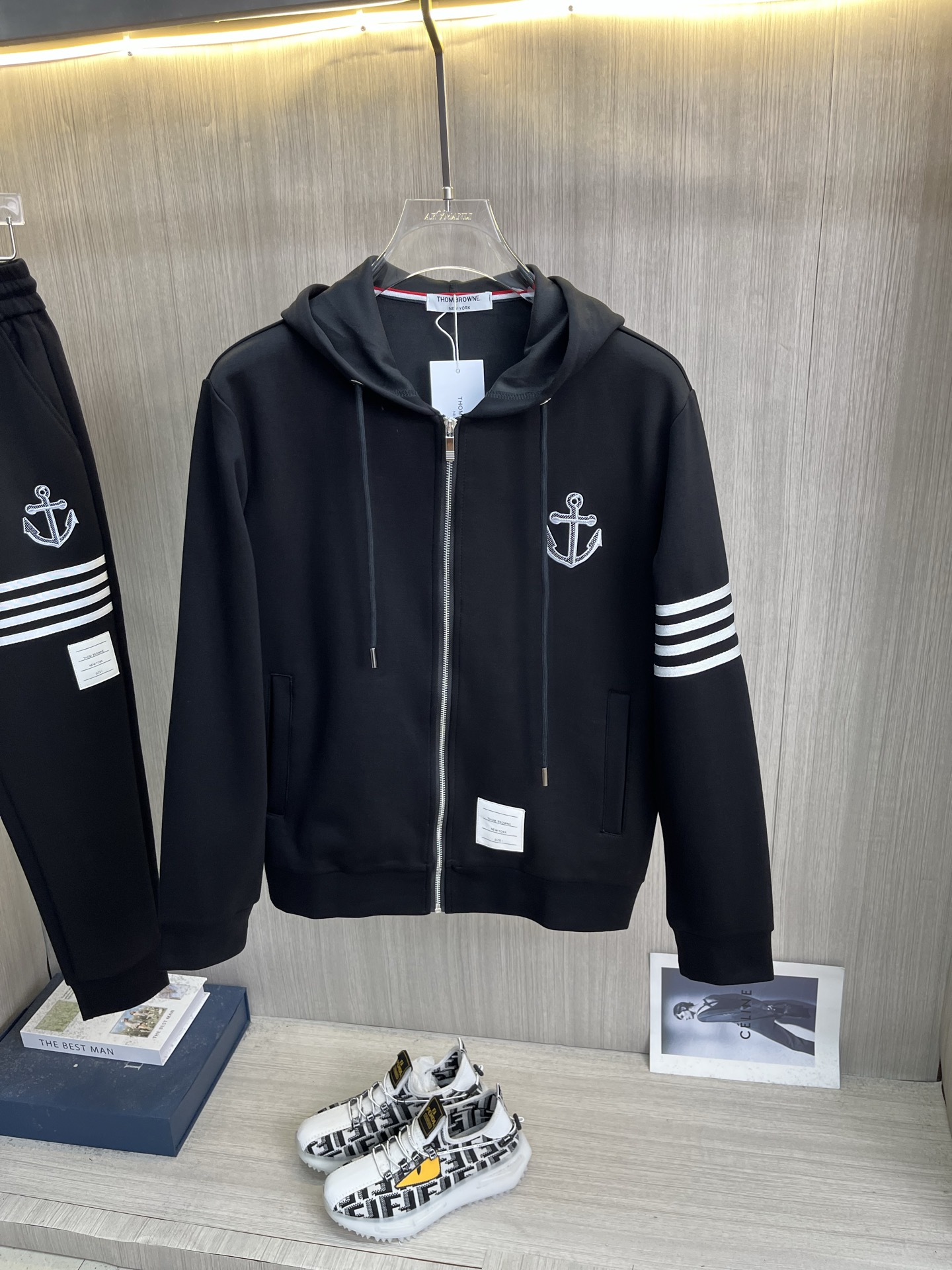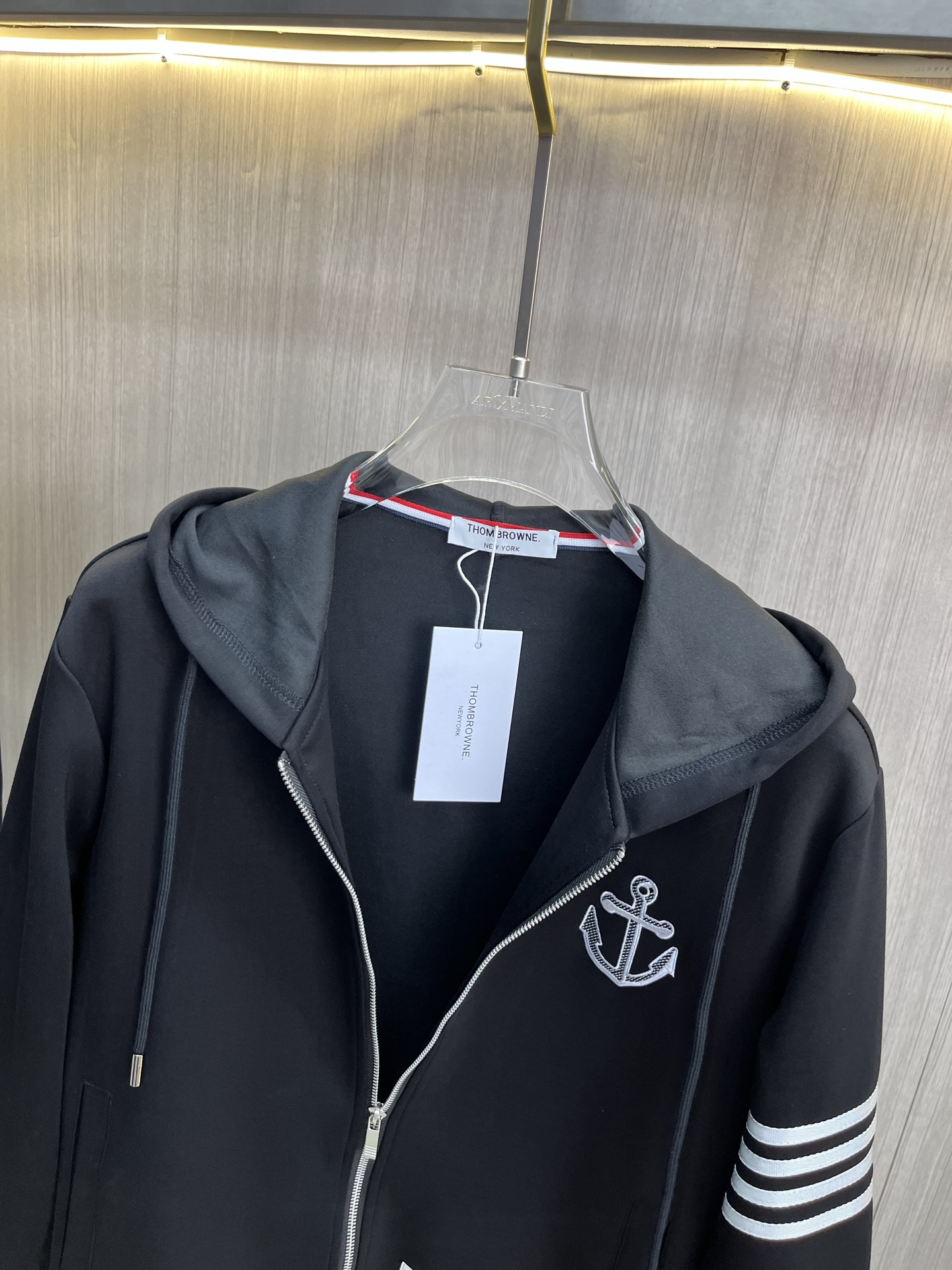 这款衣服是AAAAA 1:1 质量 (非常棒). 使用了和原版一模一样的材料. 商标部分也保持了和汤姆布朗/Thom Browne一样. 图片拍摄是实物衣服拍摄, 您所收到的实物保证和我们图片一模一样.