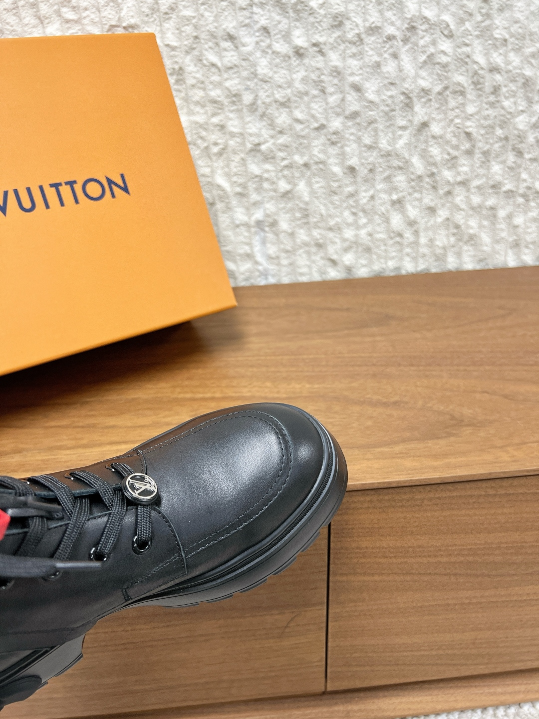 这款鞋子是AAAAA 1:1 质量 (非常棒). 使用了和原版一模一样的材料. 商标部分也保持了和路易威登/Louis Vuitton一样. 图片拍摄是实物鞋子拍摄, 您所收到的实物保证和我们图片一模一样.
