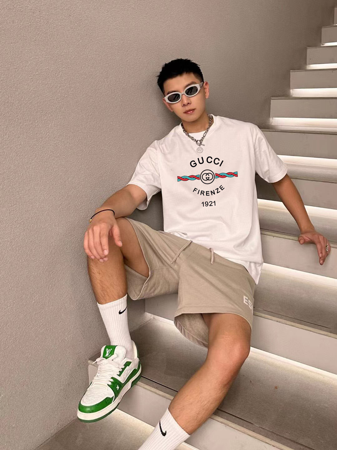 这款衣服是AAAAA 1:1 质量 (非常棒). 使用了和原版一模一样的材料. 商标部分也保持了和古奇/Gucci一样. 图片拍摄是实物衣服拍摄, 您所收到的实物保证和我们图片一模一样.
