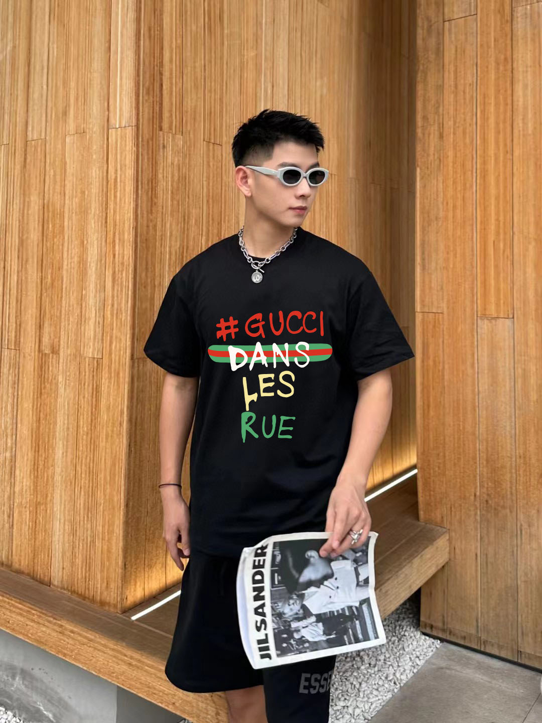 这款衣服是AAAAA 1:1 质量 (非常棒). 使用了和原版一模一样的材料. 商标部分也保持了和古奇/Gucci一样. 图片拍摄是实物衣服拍摄, 您所收到的实物保证和我们图片一模一样.