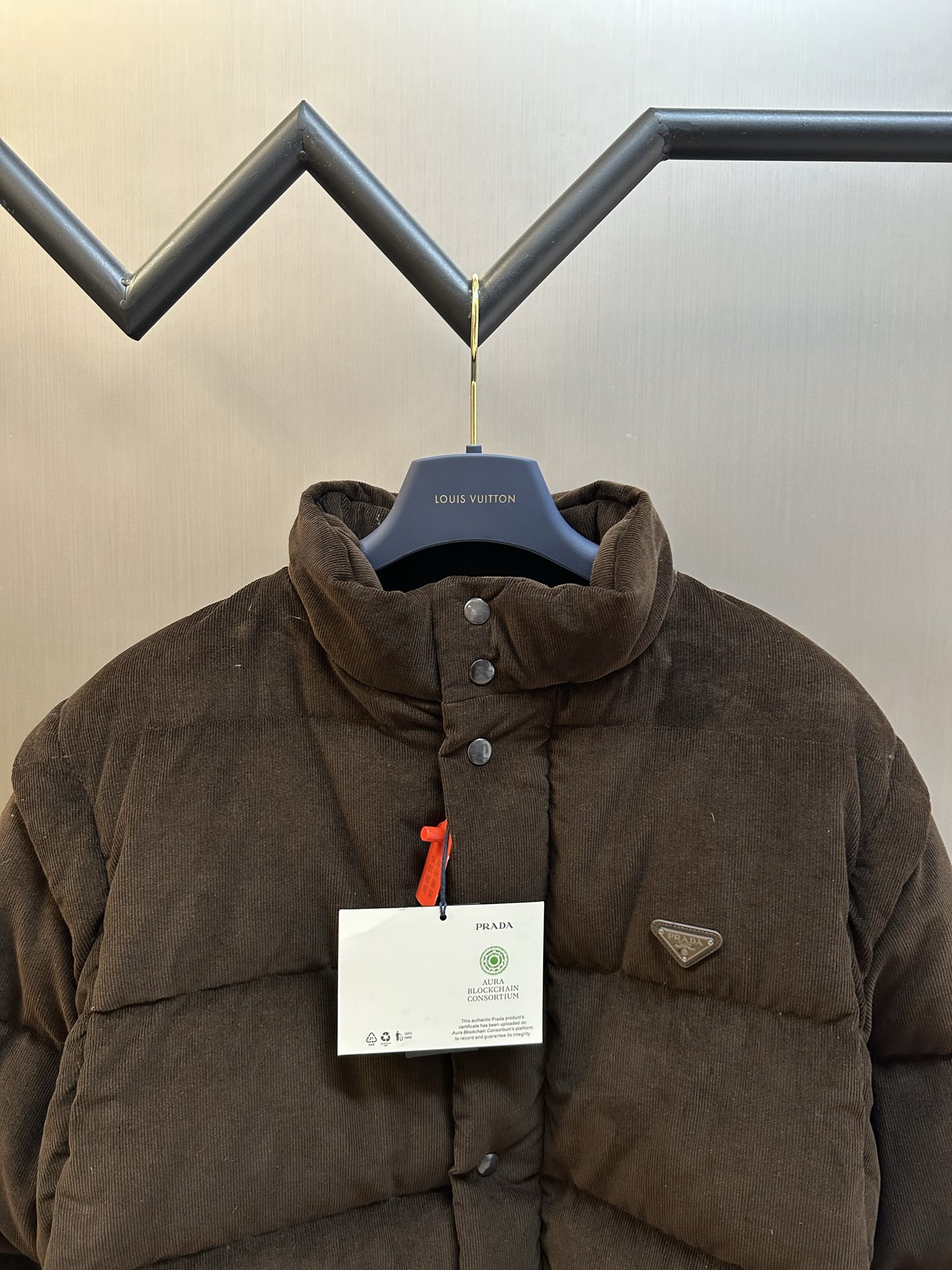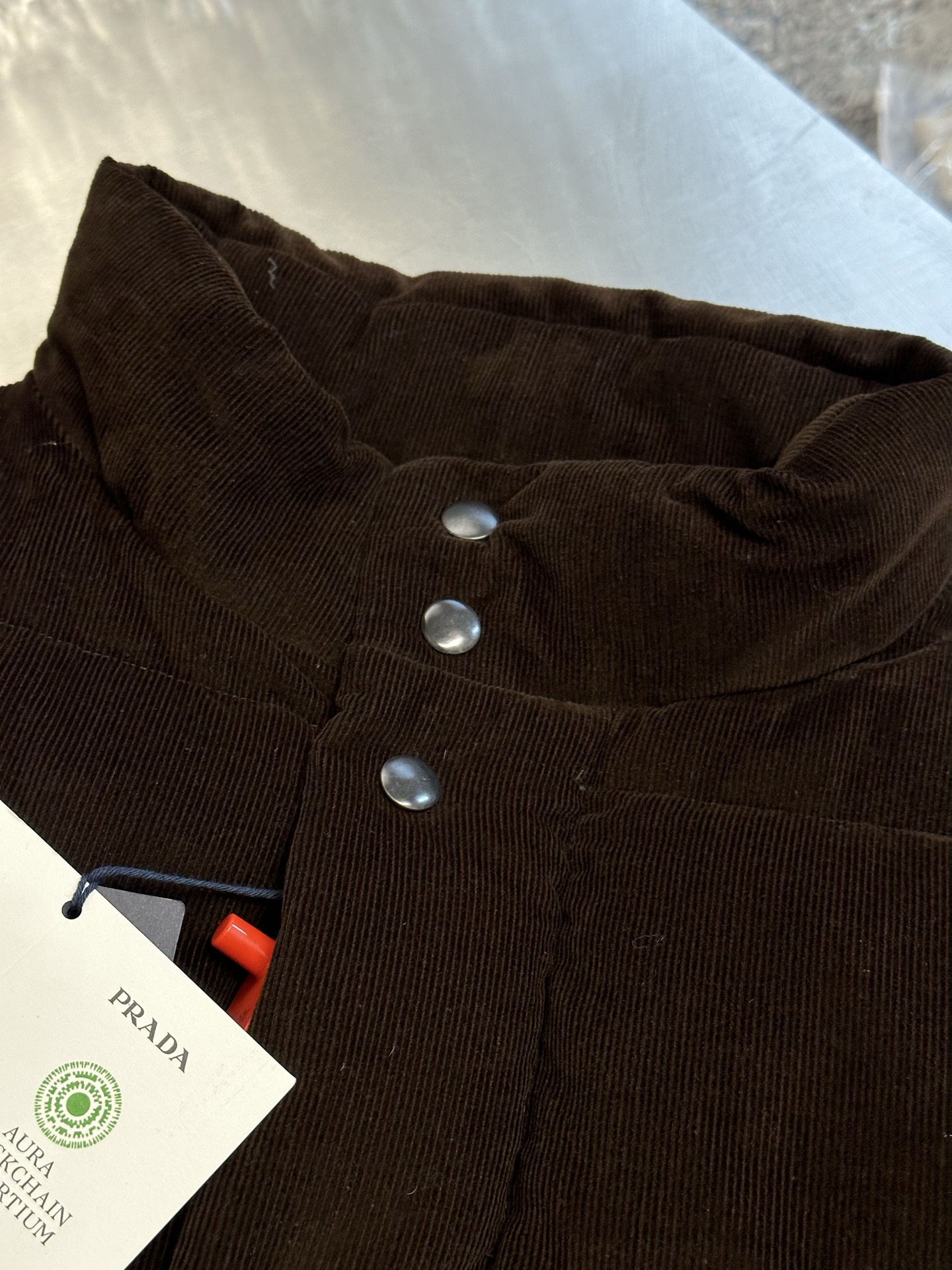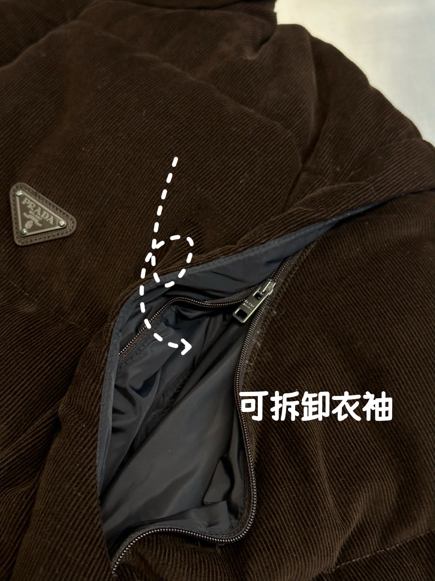 这款衣服是AAAAA 1:1 质量 (非常棒). 使用了和原版一模一样的材料. 商标部分也保持了和普拉达/Prada一样. 图片拍摄是实物衣服拍摄, 您所收到的实物保证和我们图片一模一样.