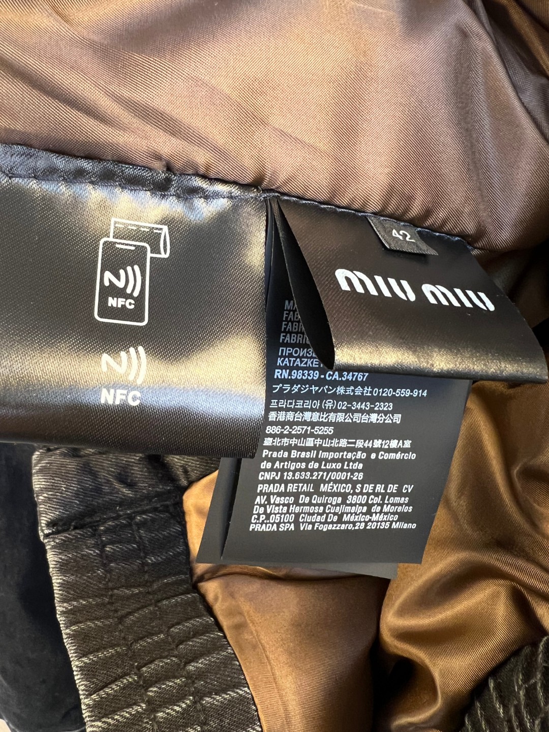 这款衣服是AAAAA 1:1 质量 (非常棒). 使用了和原版一模一样的材料. 商标部分也保持了和缪缪/Miu Miu一样. 图片拍摄是实物衣服拍摄, 您所收到的实物保证和我们图片一模一样.