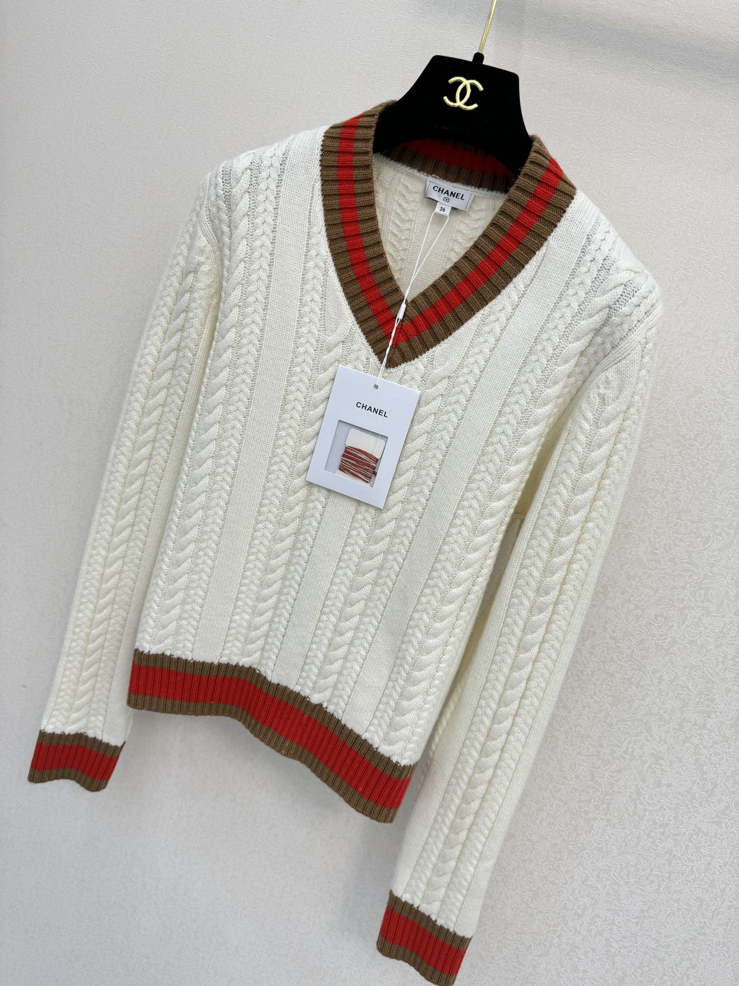 这款衣服是AAAAA 1:1 质量 (非常棒). 使用了和原版一模一样的材料. 商标部分也保持了和香奈儿/Chanel一样. 图片拍摄是实物衣服拍摄, 您所收到的实物保证和我们图片一模一样.