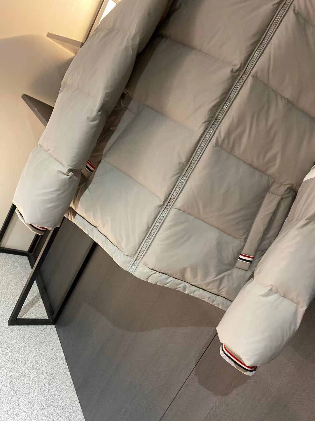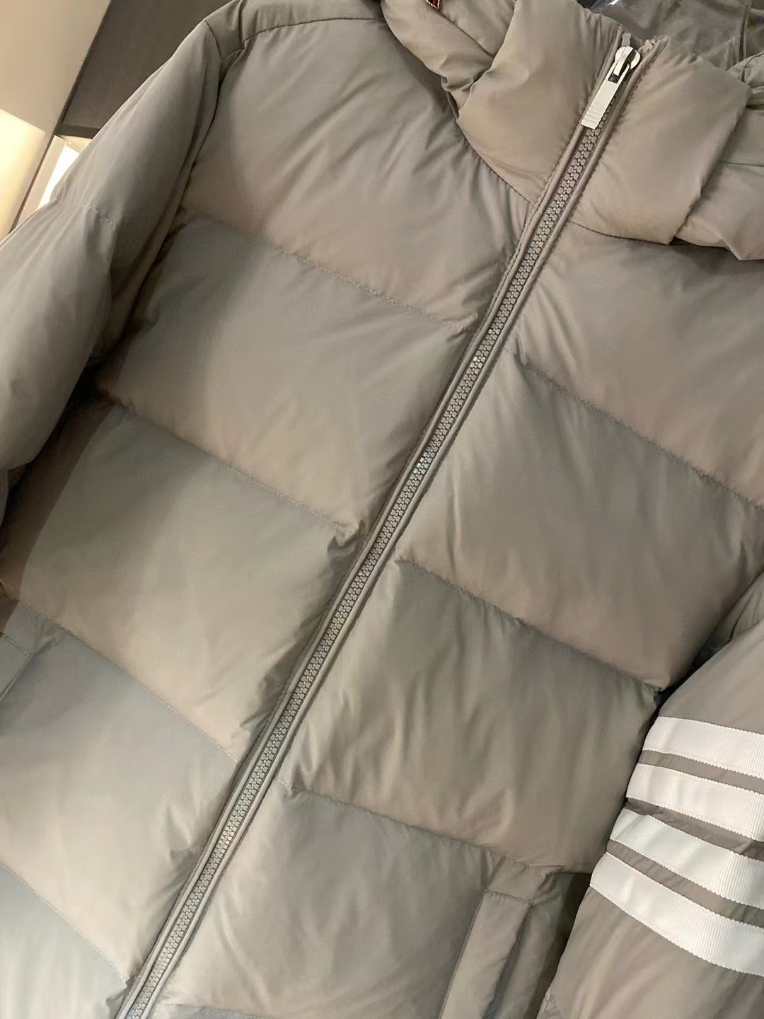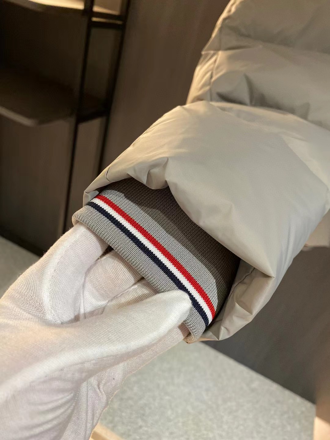 这款衣服是AAAAA 1:1 质量 (非常棒). 使用了和原版一模一样的材料. 商标部分也保持了和汤姆布朗/Thom Browne一样. 图片拍摄是实物衣服拍摄, 您所收到的实物保证和我们图片一模一样.