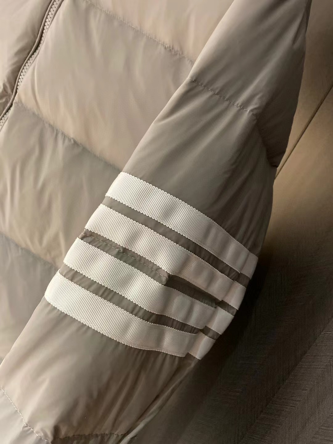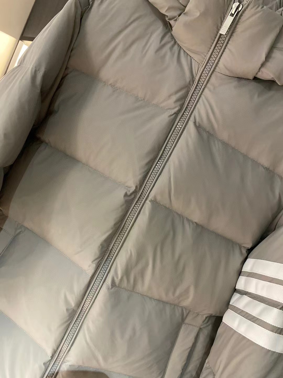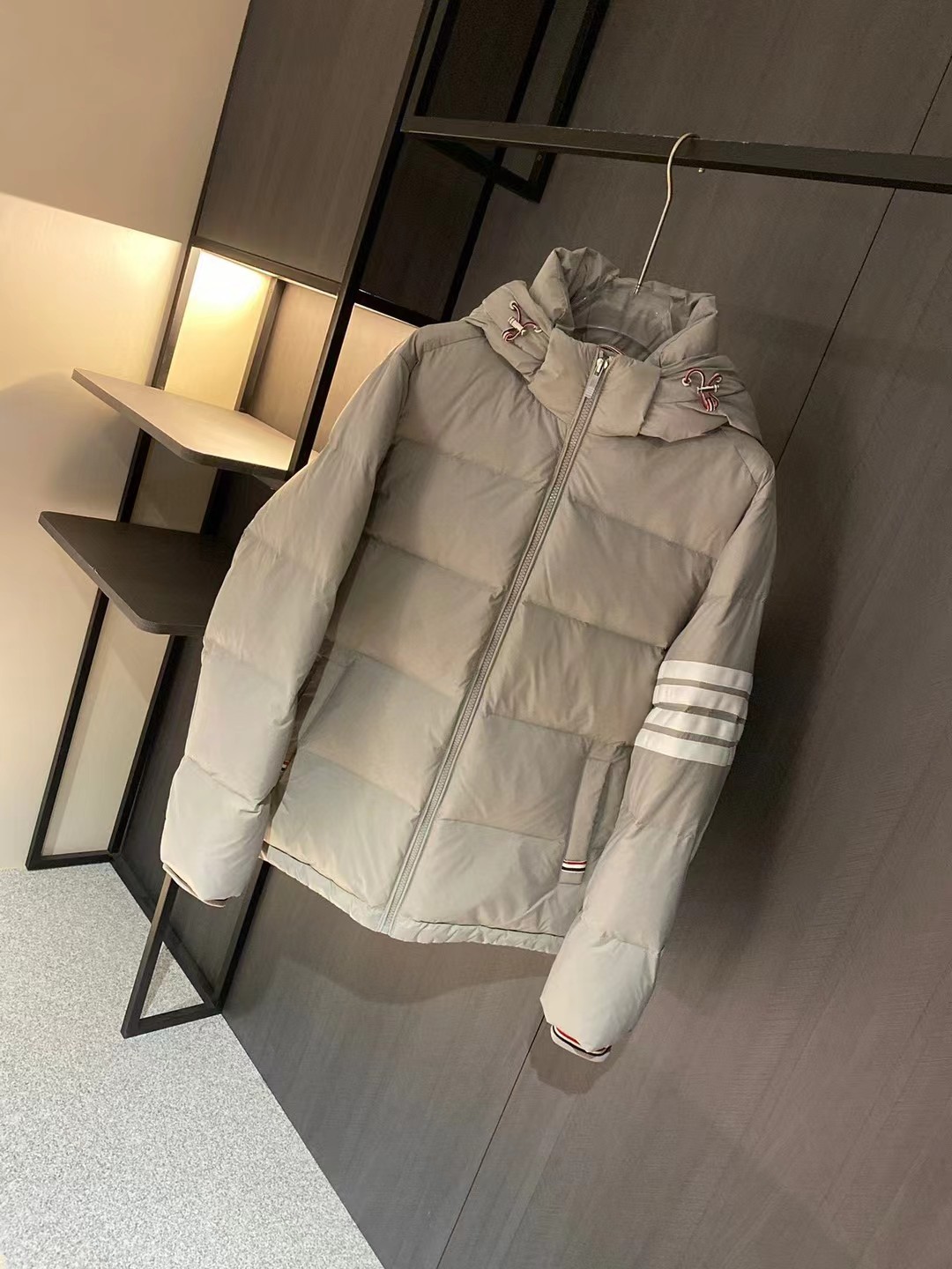 这款衣服是AAAAA 1:1 质量 (非常棒). 使用了和原版一模一样的材料. 商标部分也保持了和汤姆布朗/Thom Browne一样. 图片拍摄是实物衣服拍摄, 您所收到的实物保证和我们图片一模一样.