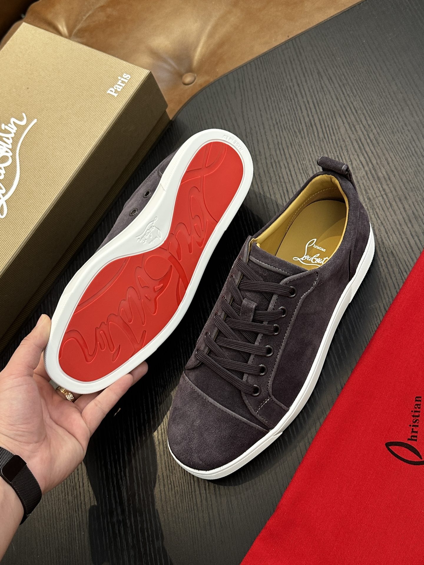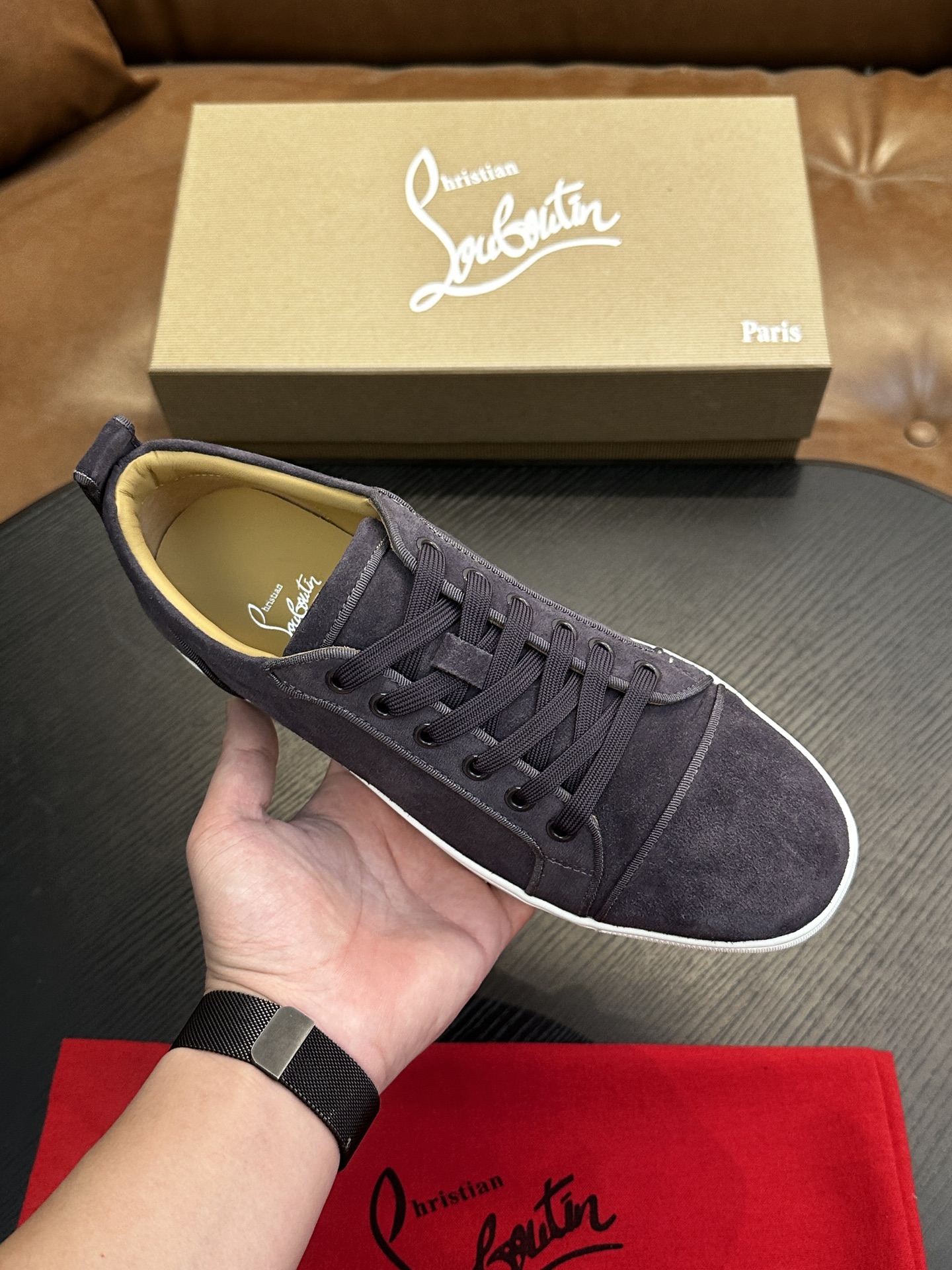 这款鞋子是AAAAA 1:1 质量 (非常棒). 使用了和原版一模一样的材料. 商标部分也保持了和克里斯提·鲁布托/Christian Louboutin一样. 图片拍摄是实物鞋子拍摄, 您所收到的实物保证和我们图片一模一样.