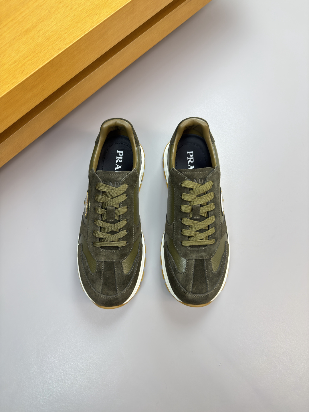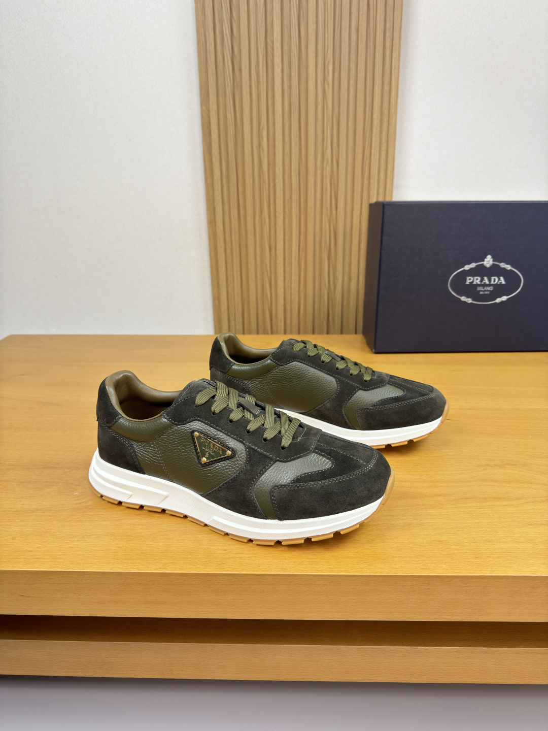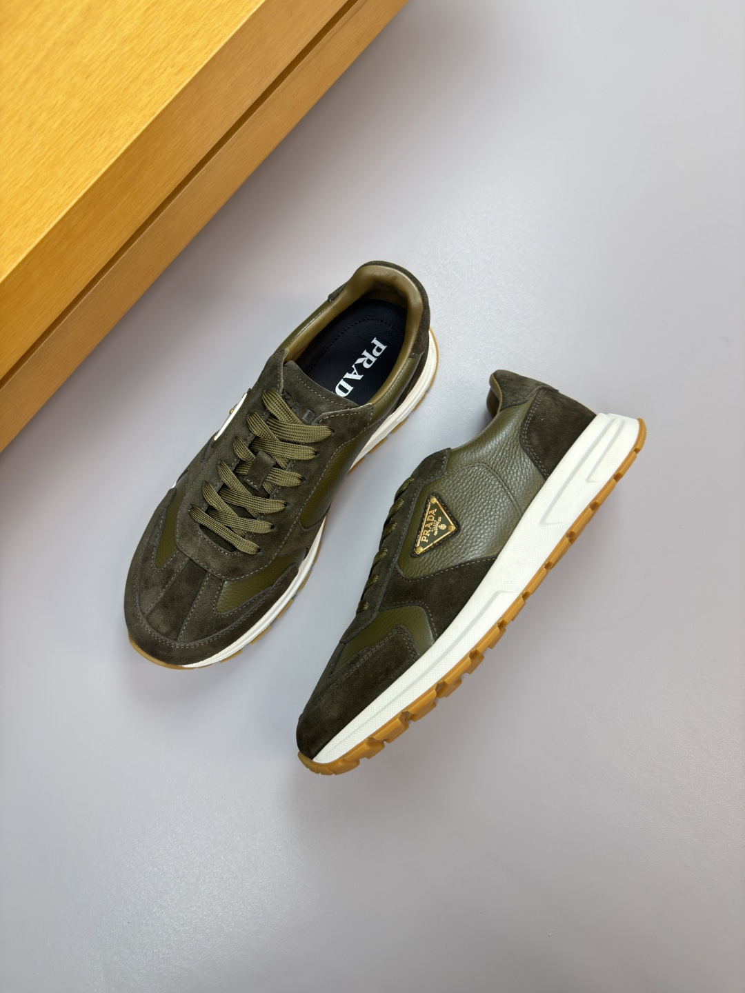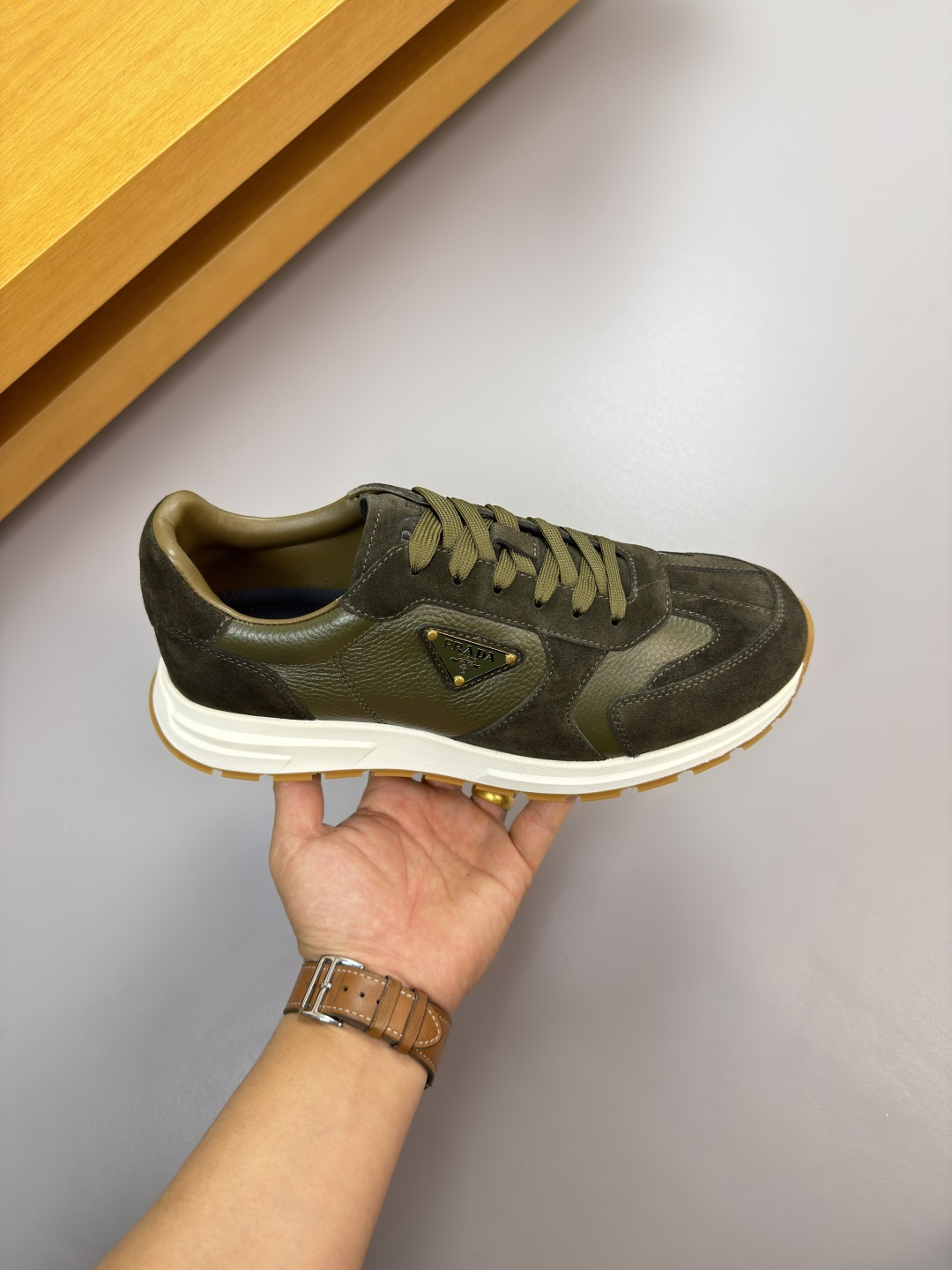 这款鞋子是AAAAA 1:1 质量 (非常棒). 使用了和原版一模一样的材料. 商标部分也保持了和普拉达/Prada一样. 图片拍摄是实物鞋子拍摄, 您所收到的实物保证和我们图片一模一样.