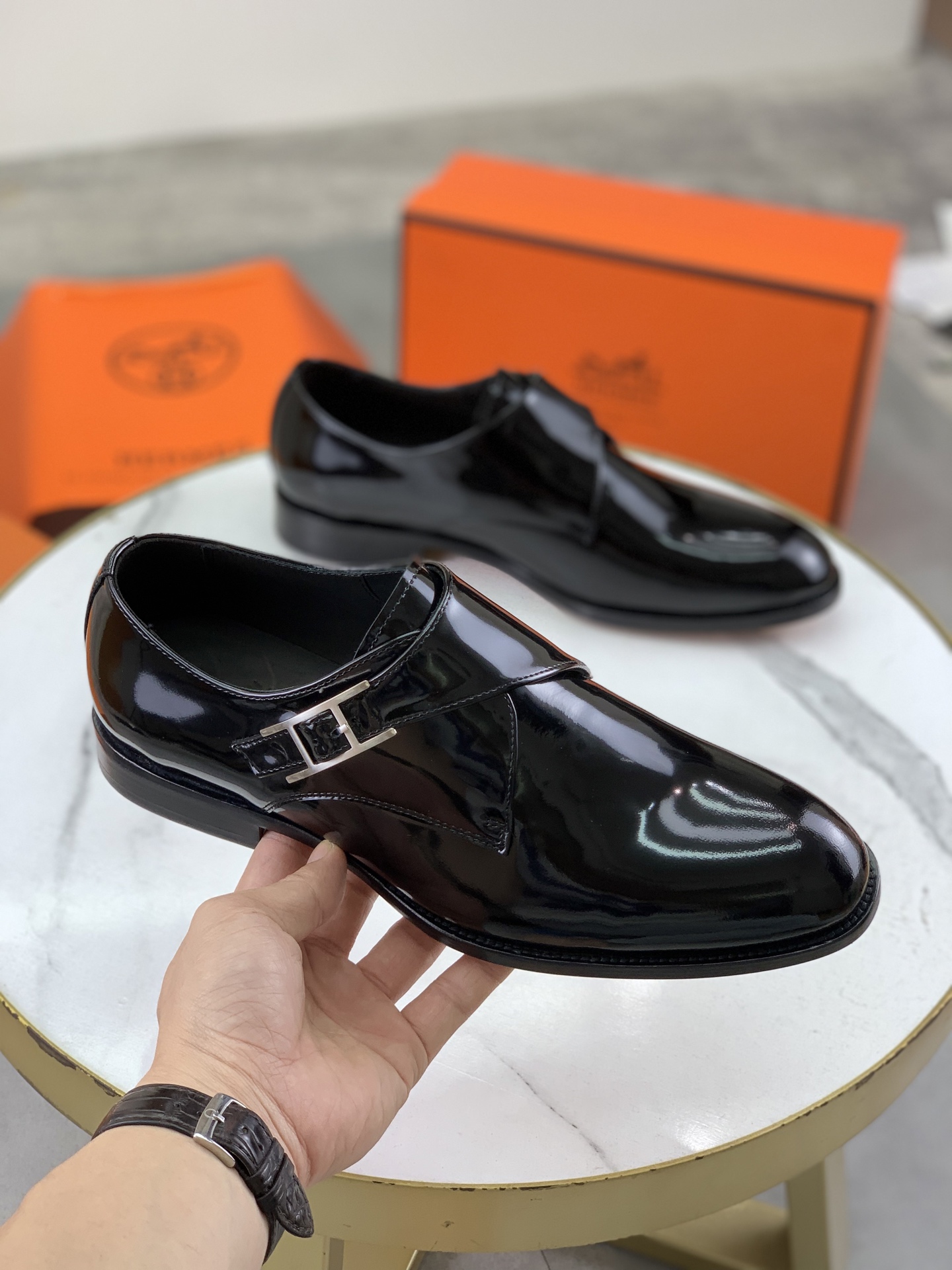 这款鞋子是AAAAA 1:1 质量 (非常棒). 使用了和原版一模一样的材料. 商标部分也保持了和爱马仕/Hermes一样. 图片拍摄是实物鞋子拍摄, 您所收到的实物保证和我们图片一模一样.