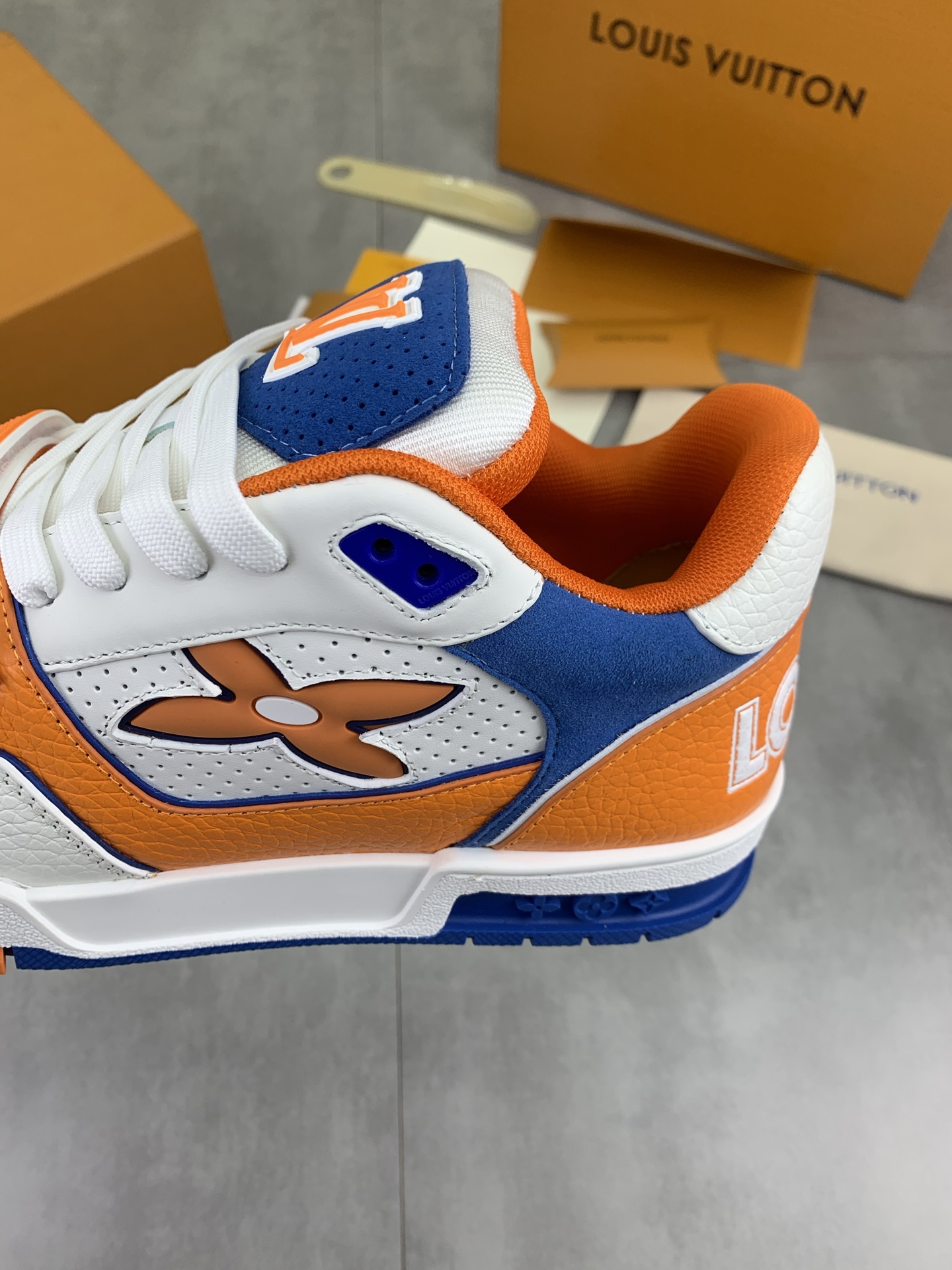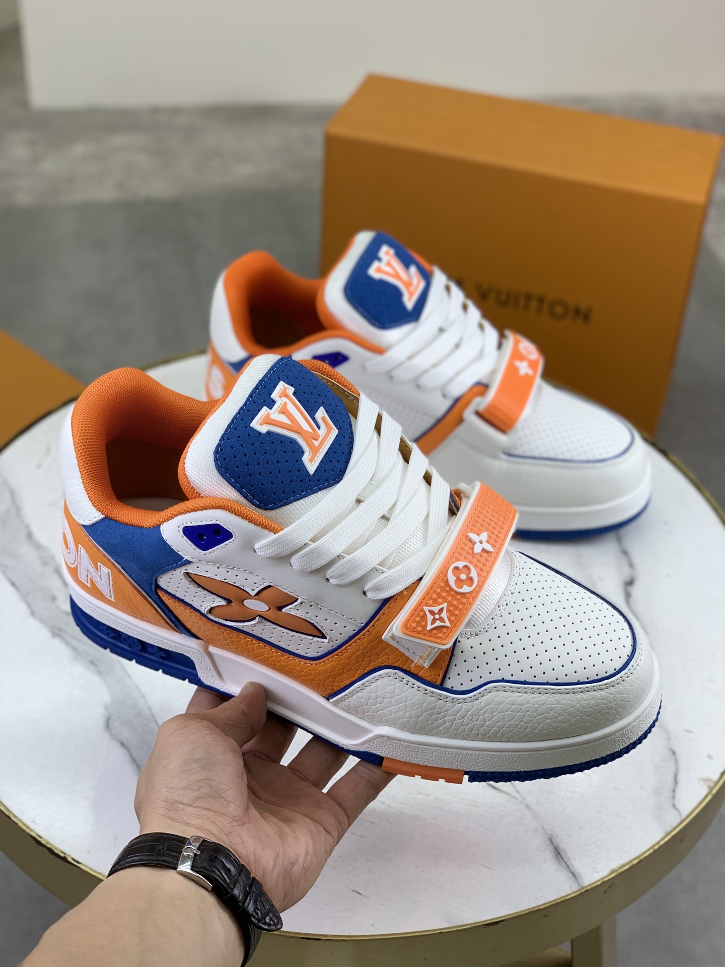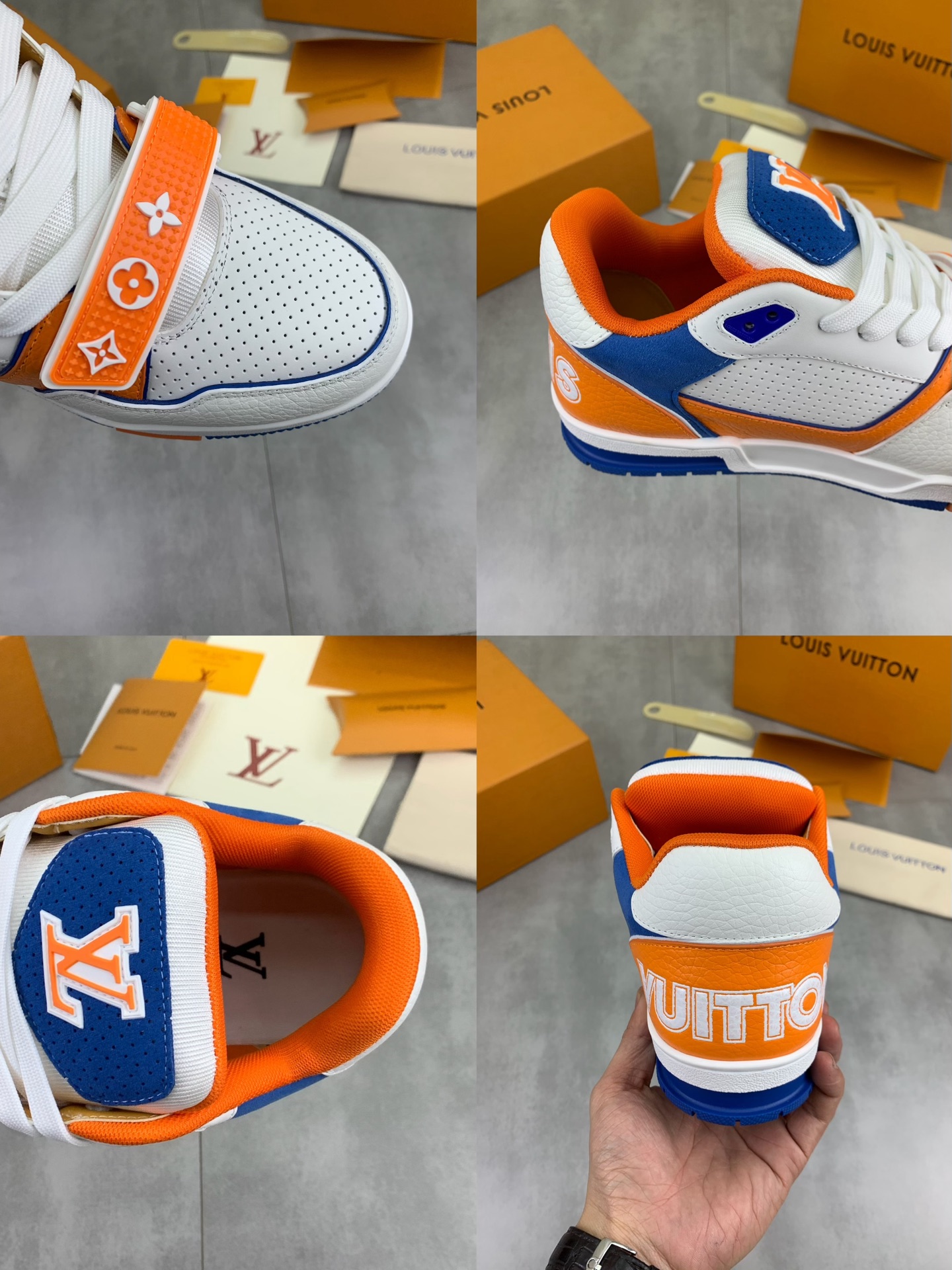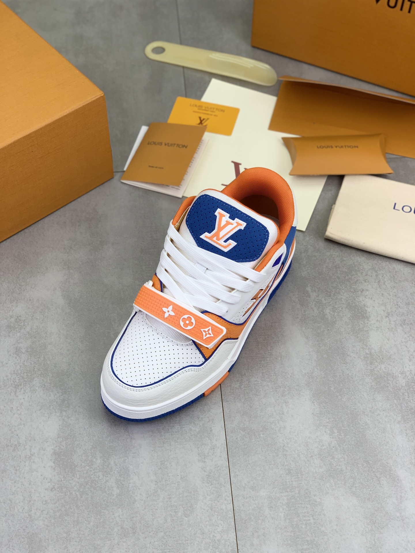 这款鞋子是AAAAA 1:1 质量 (非常棒). 使用了和原版一模一样的材料. 商标部分也保持了和路易威登/Louis Vuitton一样. 图片拍摄是实物鞋子拍摄, 您所收到的实物保证和我们图片一模一样.