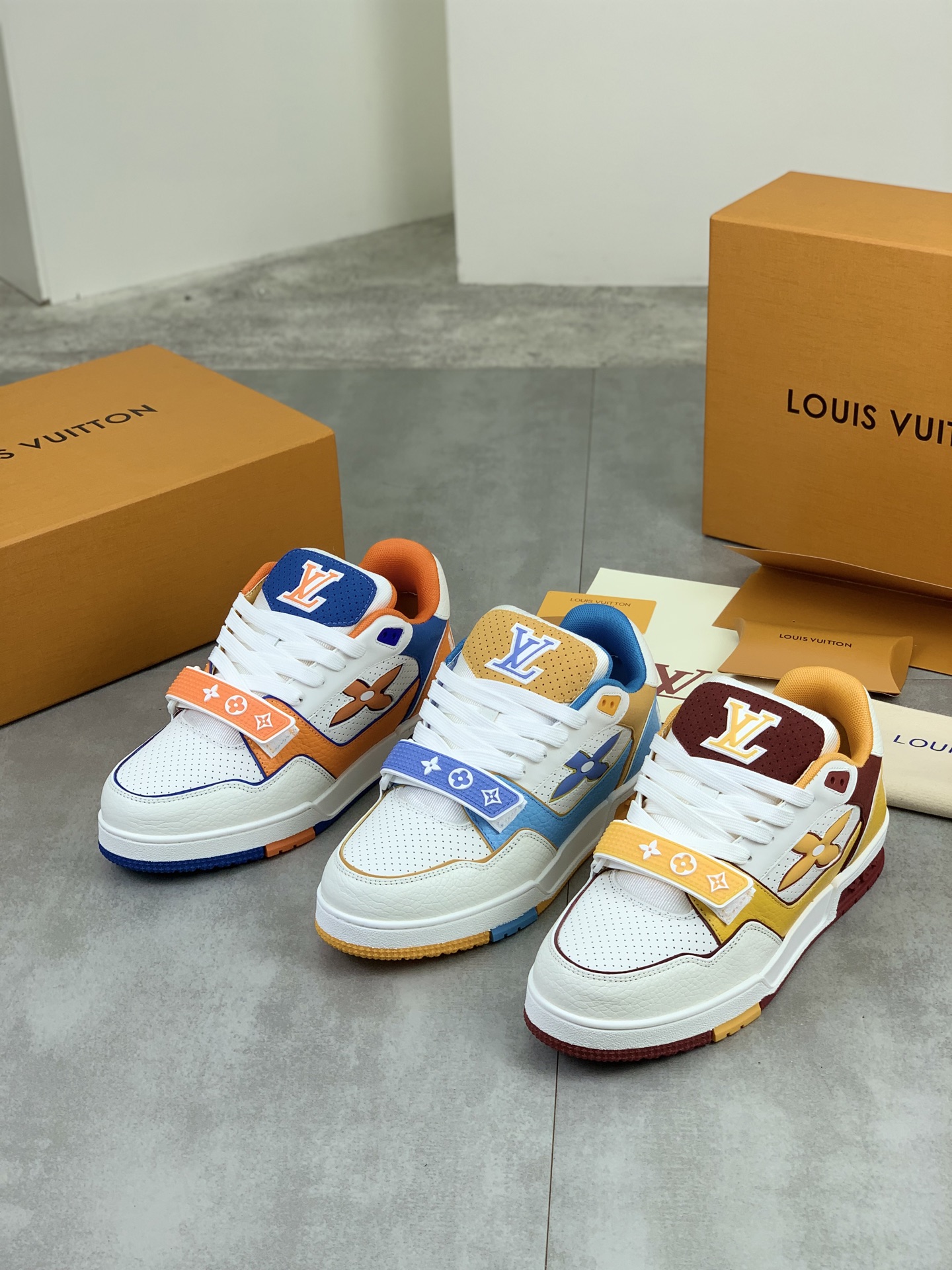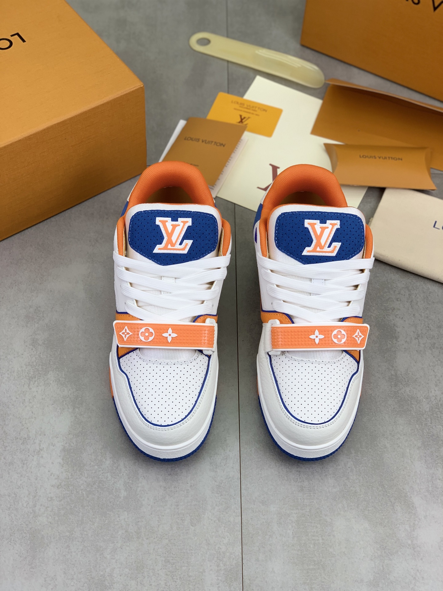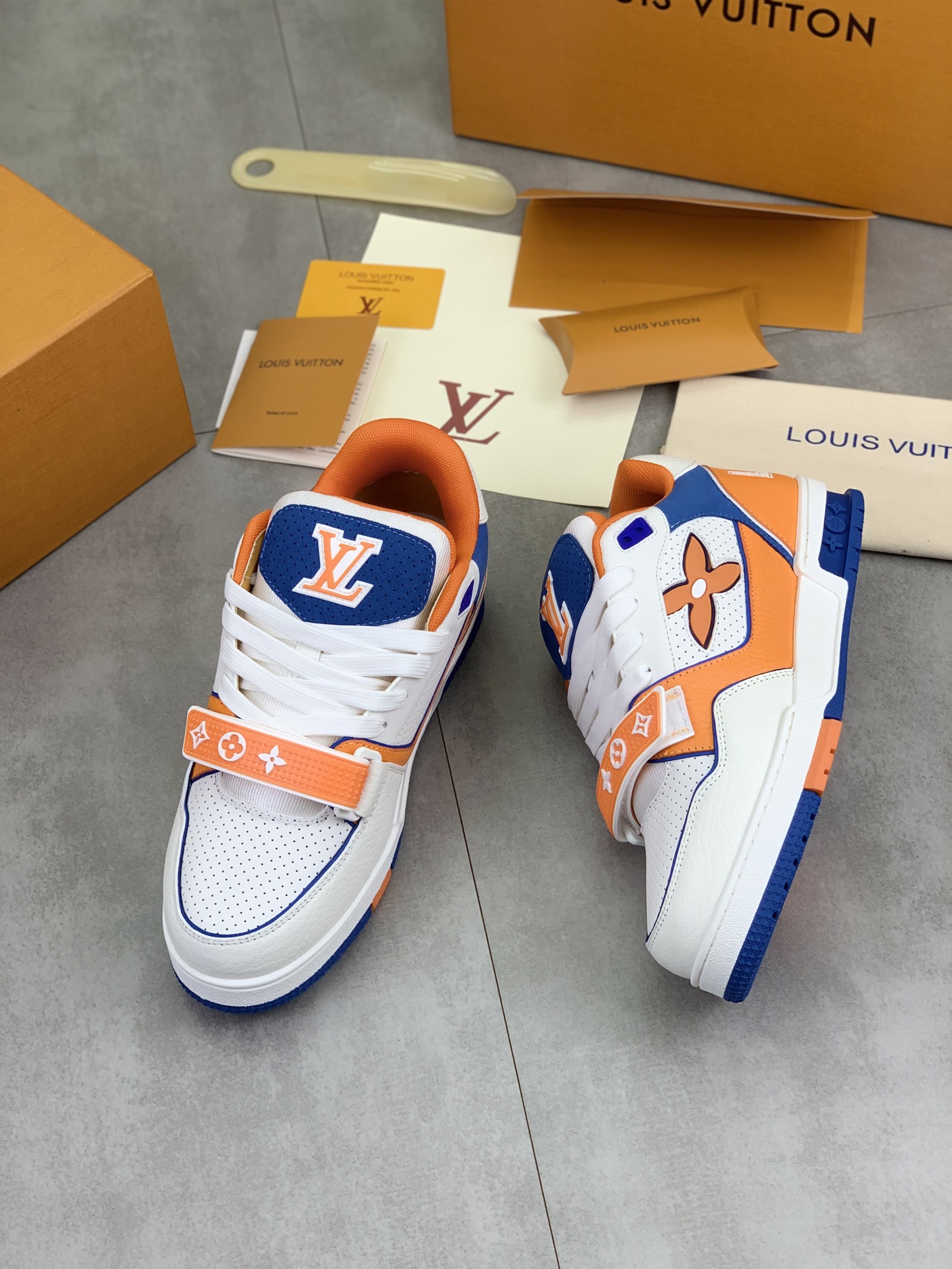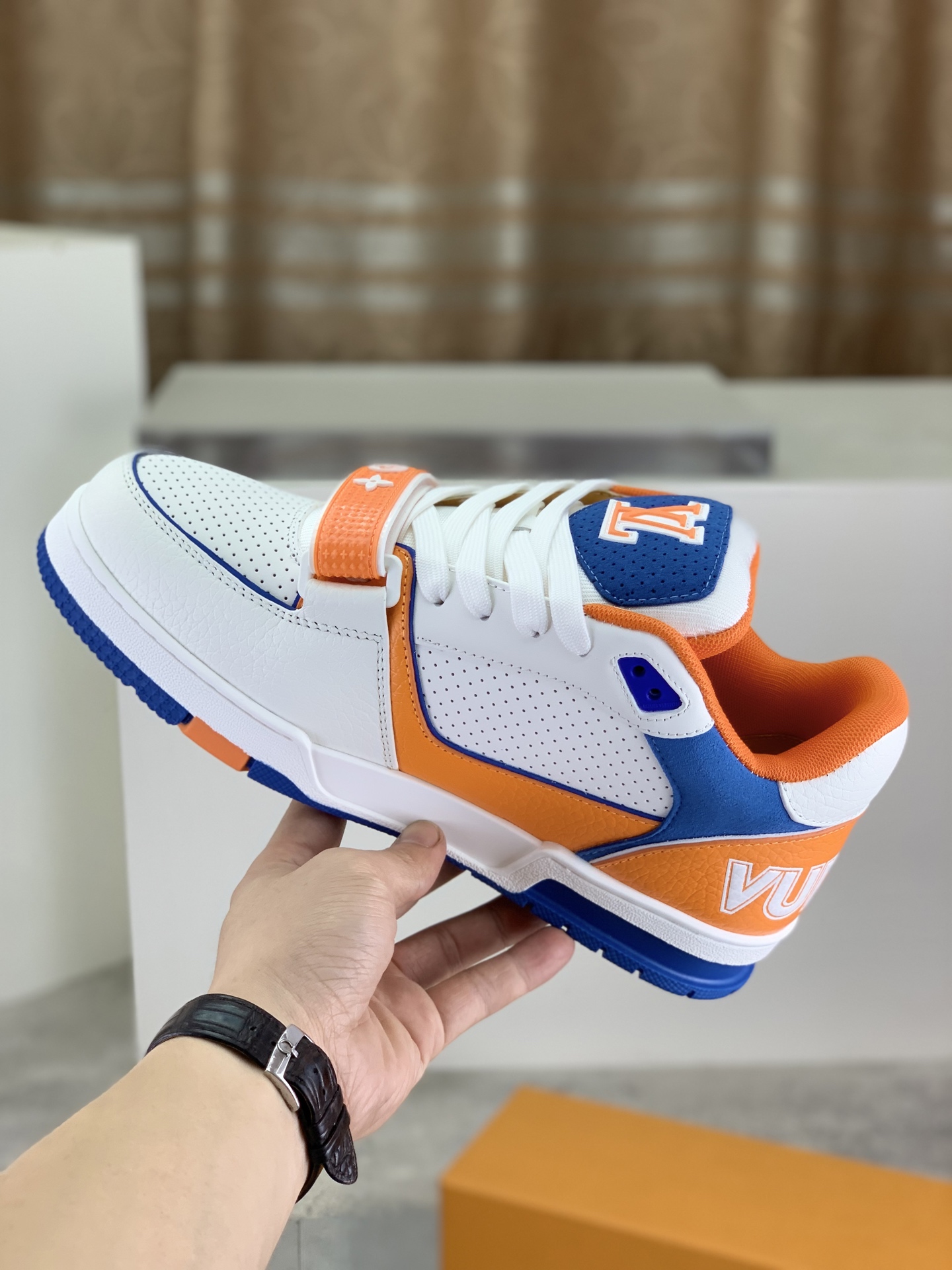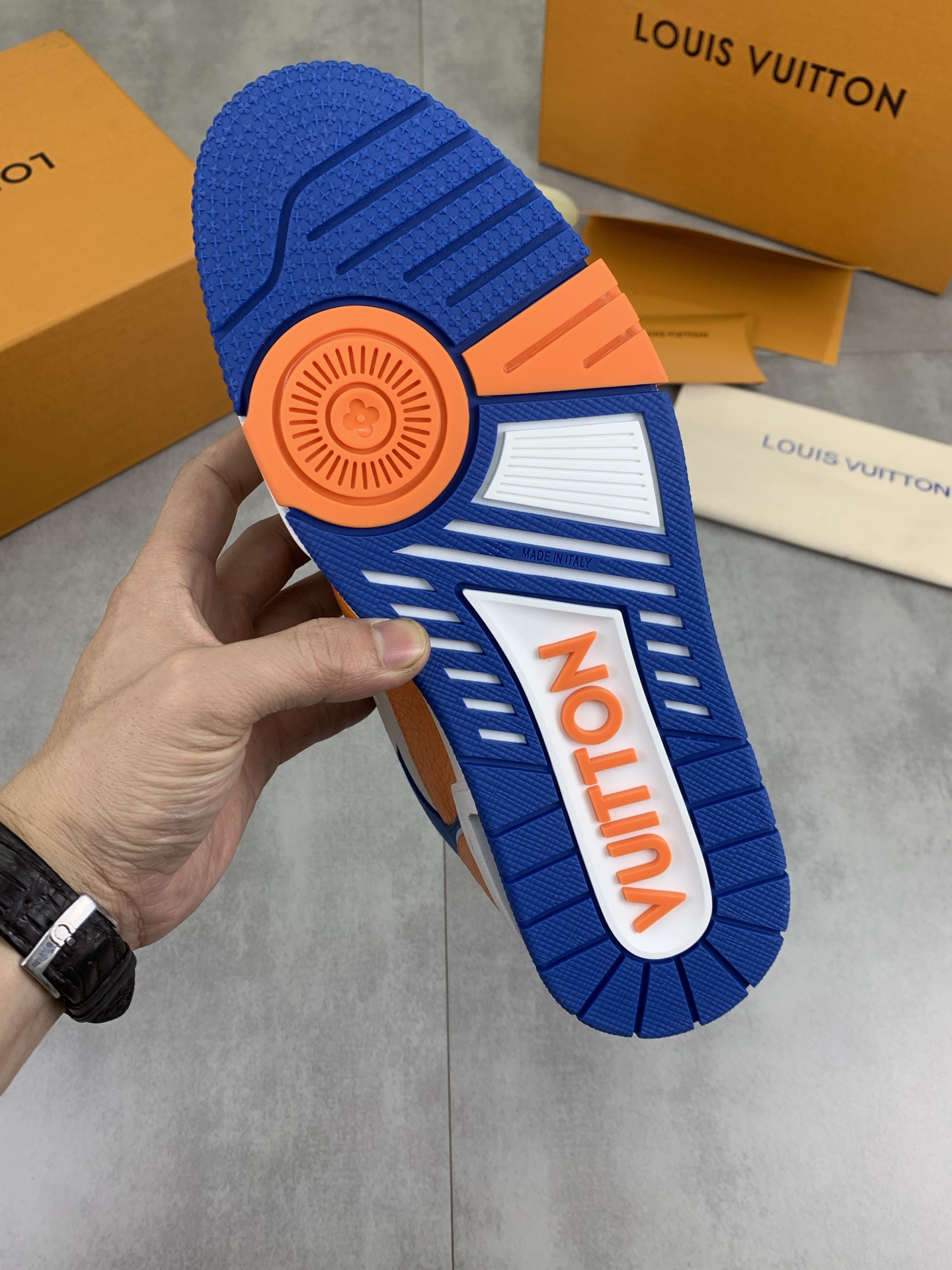 这款鞋子是AAAAA 1:1 质量 (非常棒). 使用了和原版一模一样的材料. 商标部分也保持了和路易威登/Louis Vuitton一样. 图片拍摄是实物鞋子拍摄, 您所收到的实物保证和我们图片一模一样.
