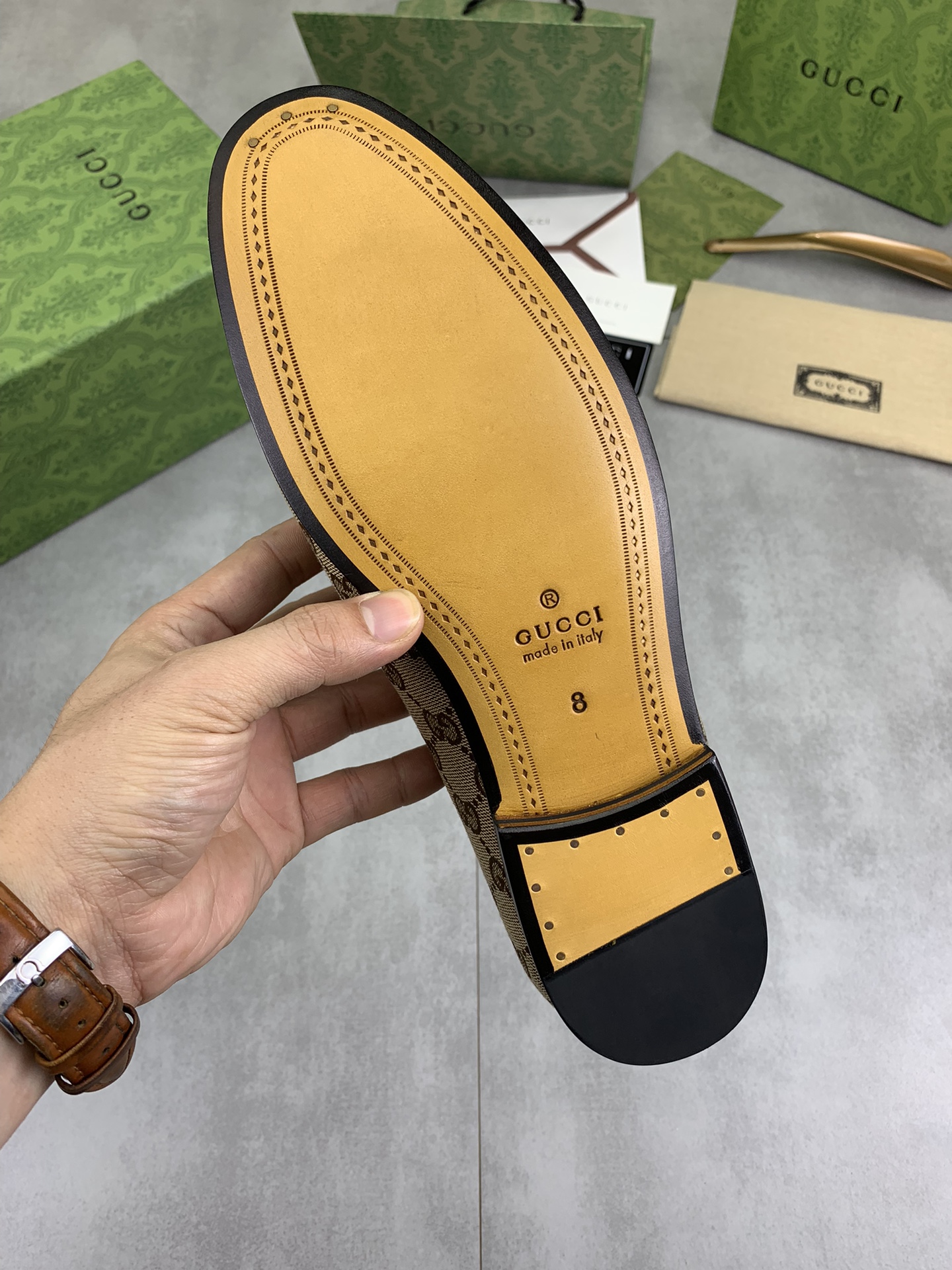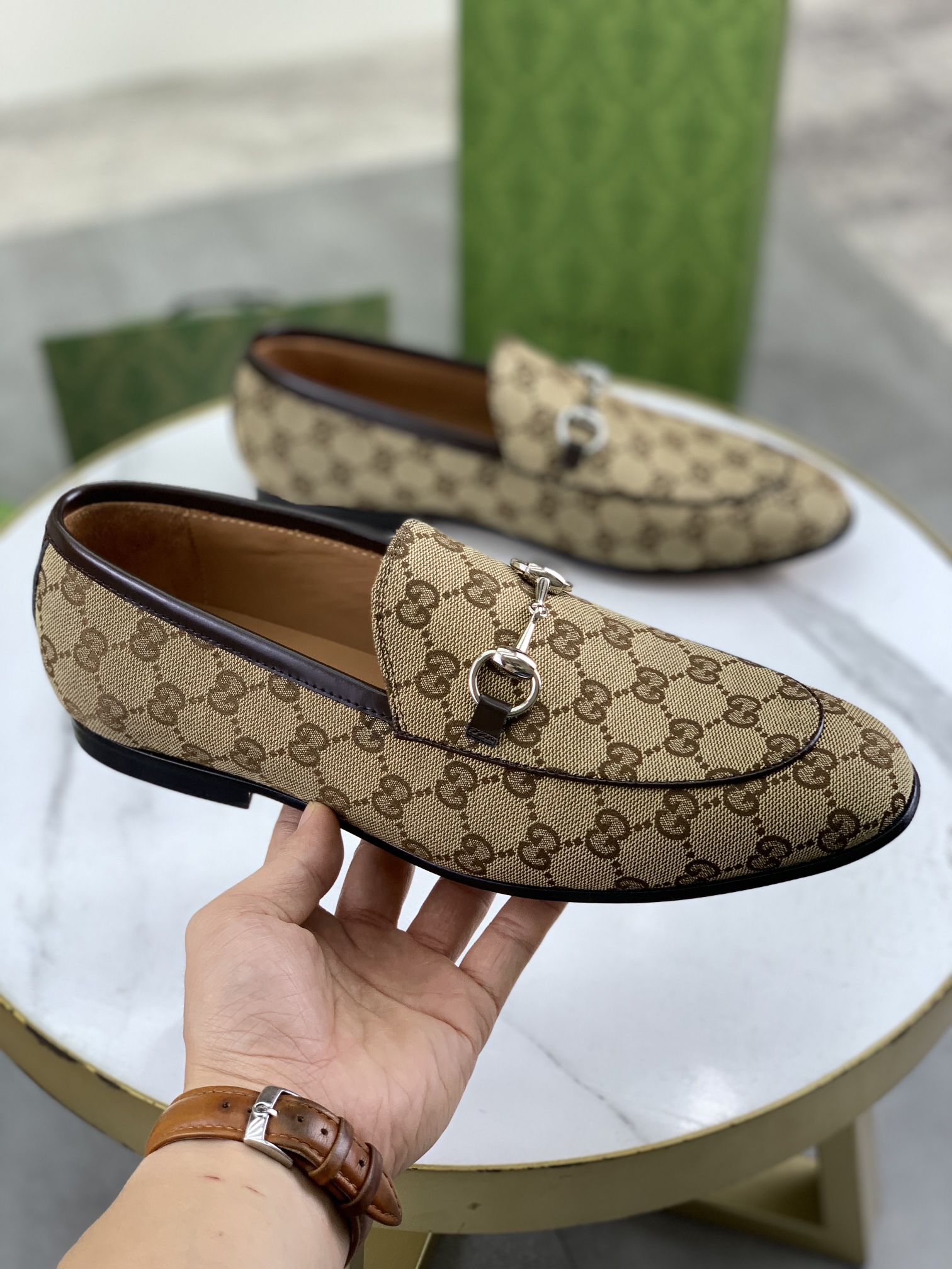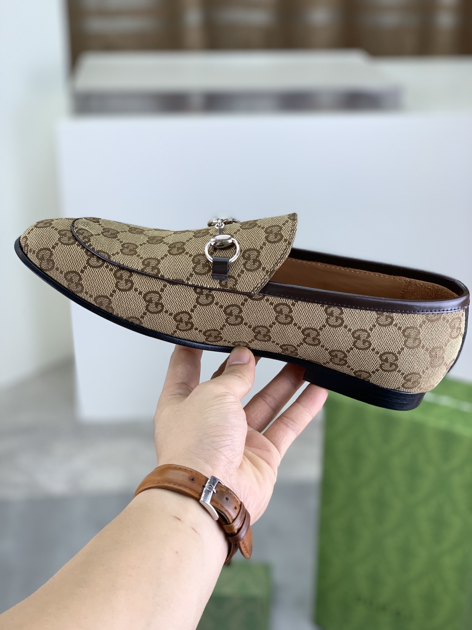 这款鞋子是AAAAA 1:1 质量 (非常棒). 使用了和原版一模一样的材料. 商标部分也保持了和古奇/Gucci一样. 图片拍摄是实物鞋子拍摄, 您所收到的实物保证和我们图片一模一样.