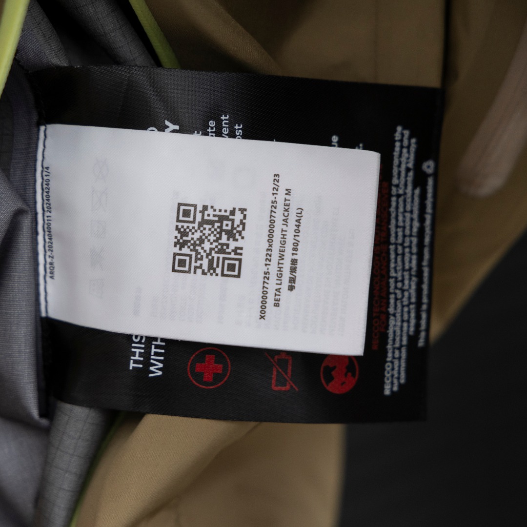 这款衣服是AAAAA 1:1 质量 (非常棒). 使用了和原版一模一样的材料. 商标部分也保持了和ARC'TERYX一样. 图片拍摄是实物衣服拍摄, 您所收到的实物保证和我们图片一模一样.