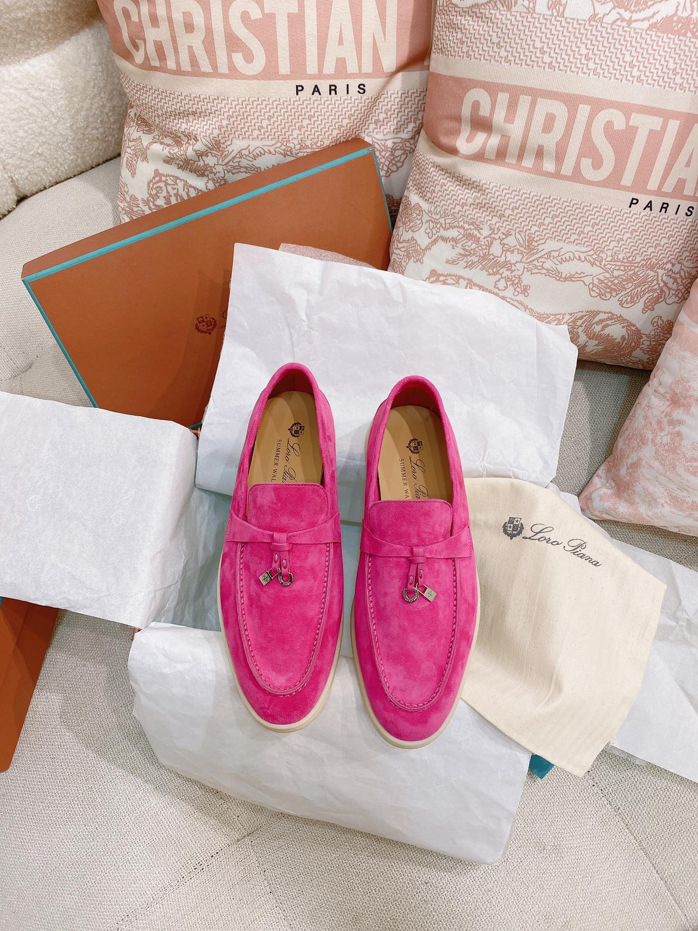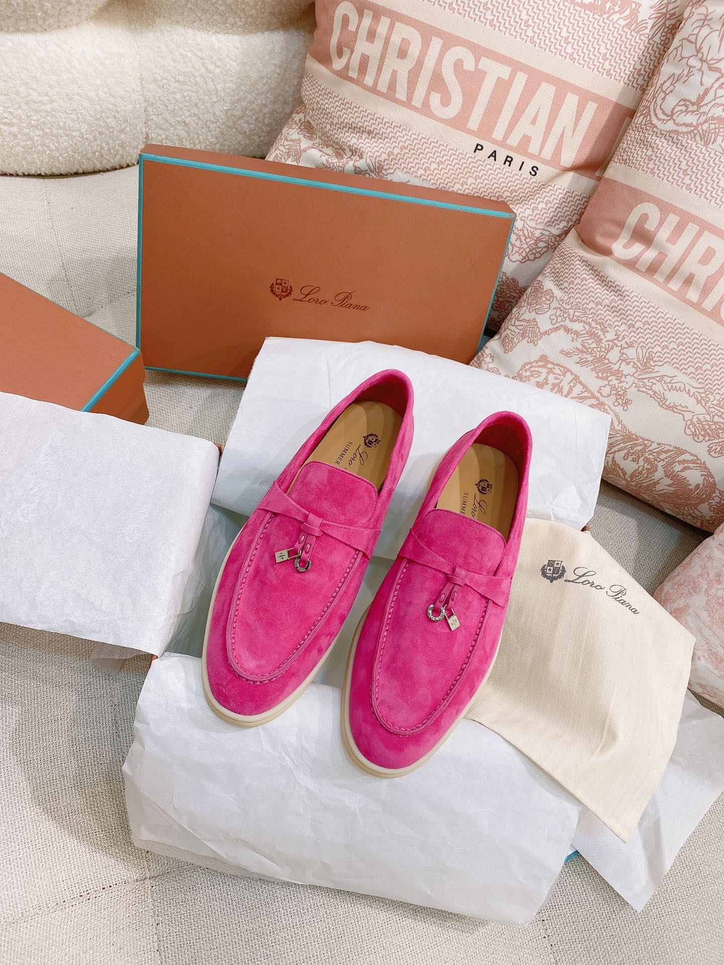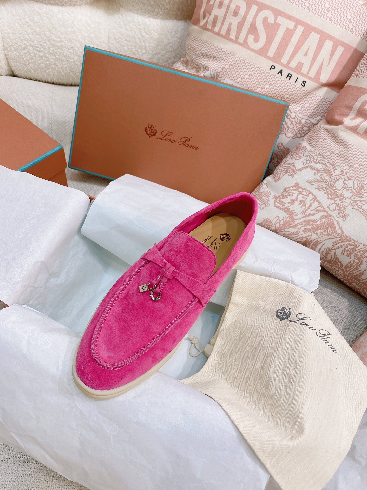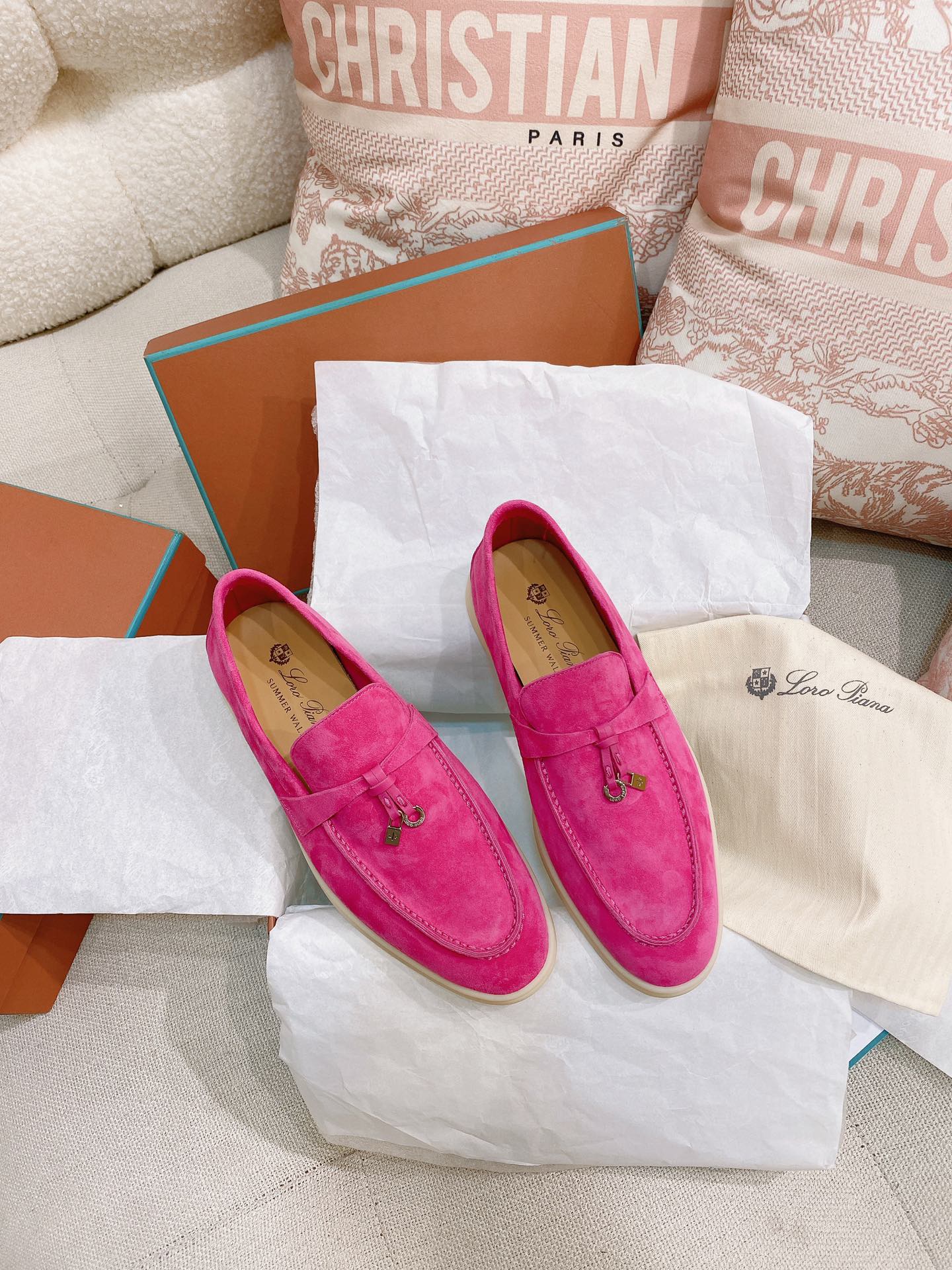 这款鞋子是AAAAA 1:1 质量 (非常棒). 使用了和原版一模一样的材料. 商标部分也保持了和洛罗皮亚纳/Loro Piana一样. 图片拍摄是实物鞋子拍摄, 您所收到的实物保证和我们图片一模一样.
