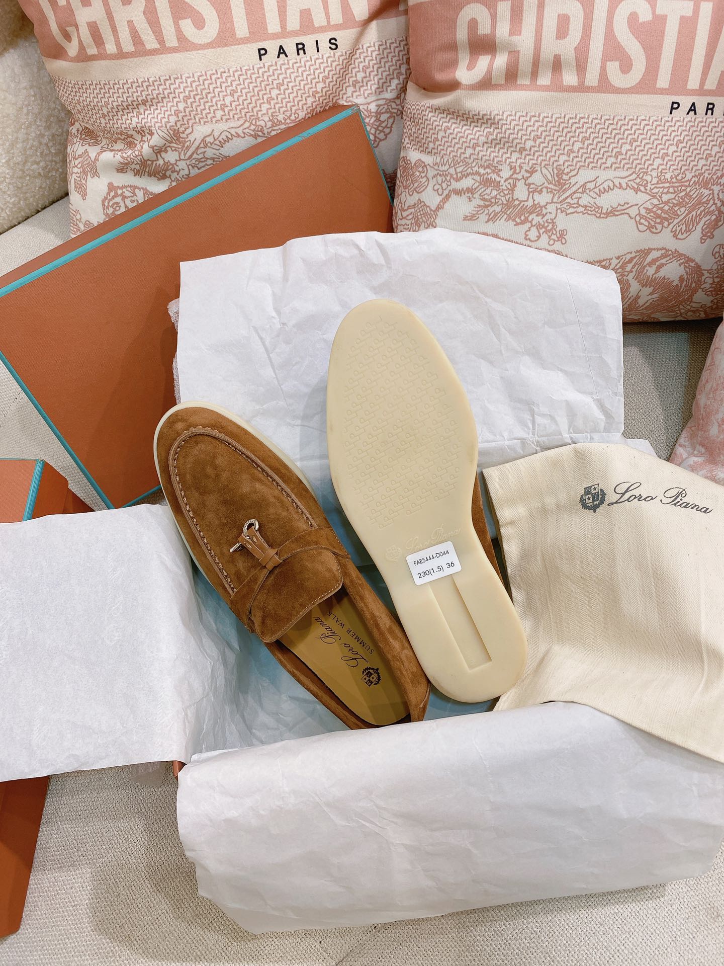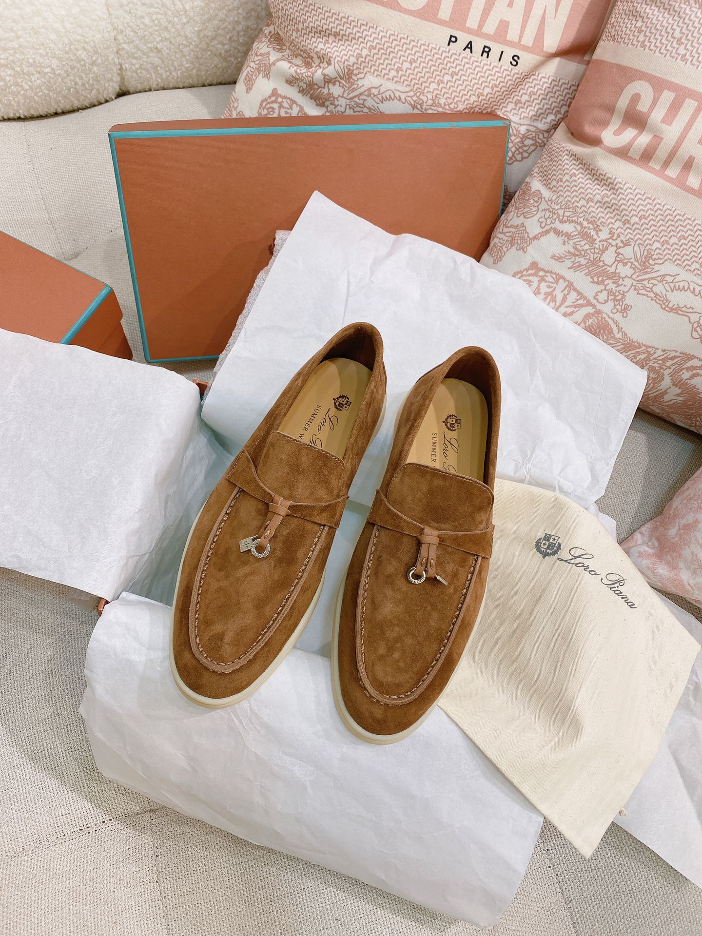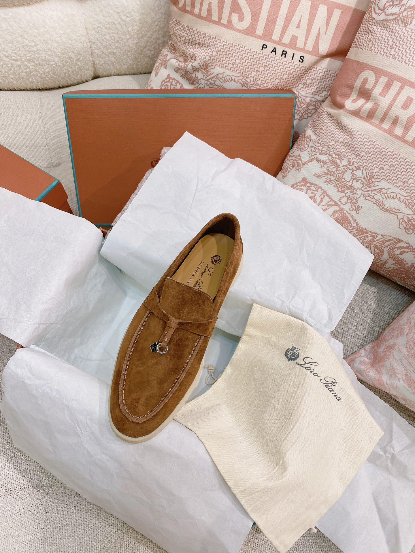 这款鞋子是AAAAA 1:1 质量 (非常棒). 使用了和原版一模一样的材料. 商标部分也保持了和洛罗皮亚纳/Loro Piana一样. 图片拍摄是实物鞋子拍摄, 您所收到的实物保证和我们图片一模一样.