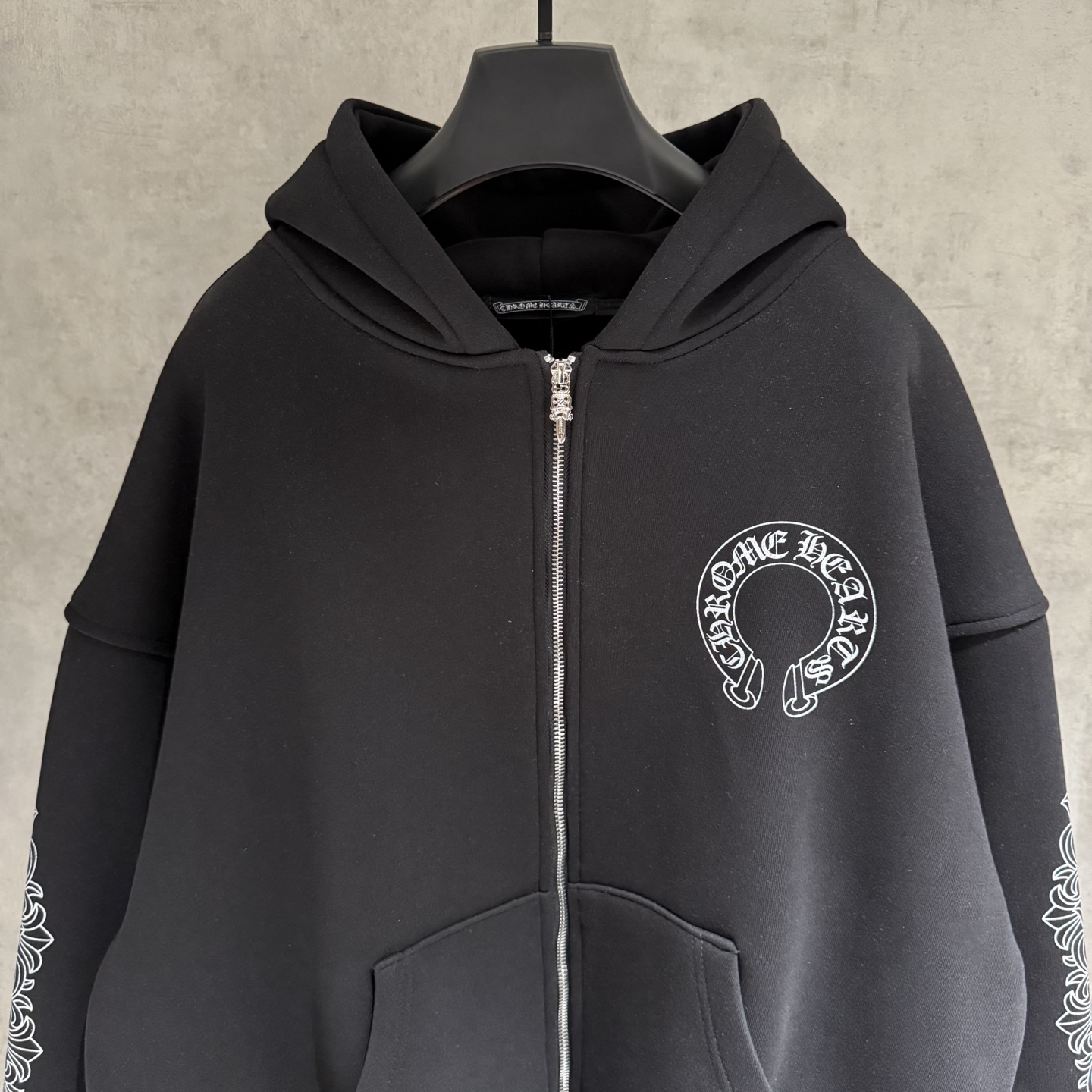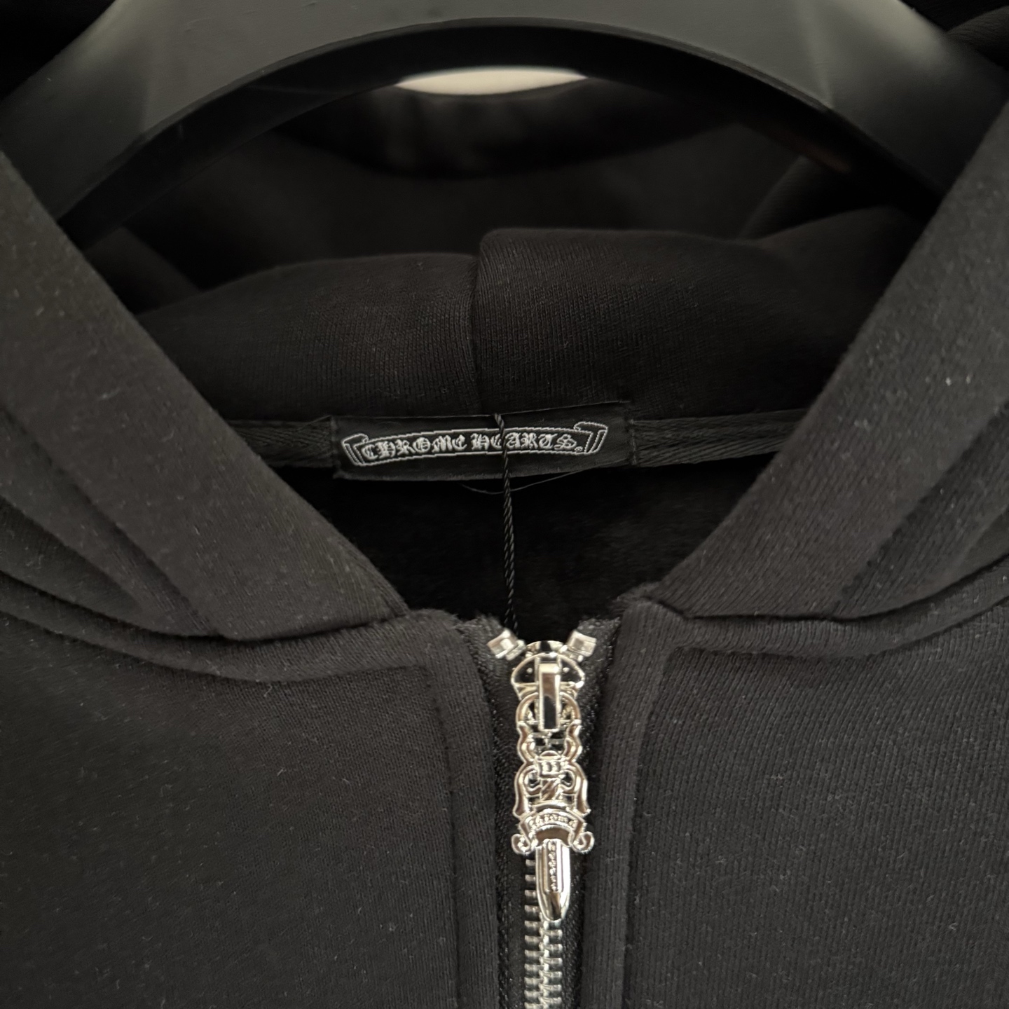 这款衣服是AAAAA 1:1 质量 (非常棒). 使用了和原版一模一样的材料. 商标部分也保持了和克罗心/Chrome Hearts一样. 图片拍摄是实物衣服拍摄, 您所收到的实物保证和我们图片一模一样.