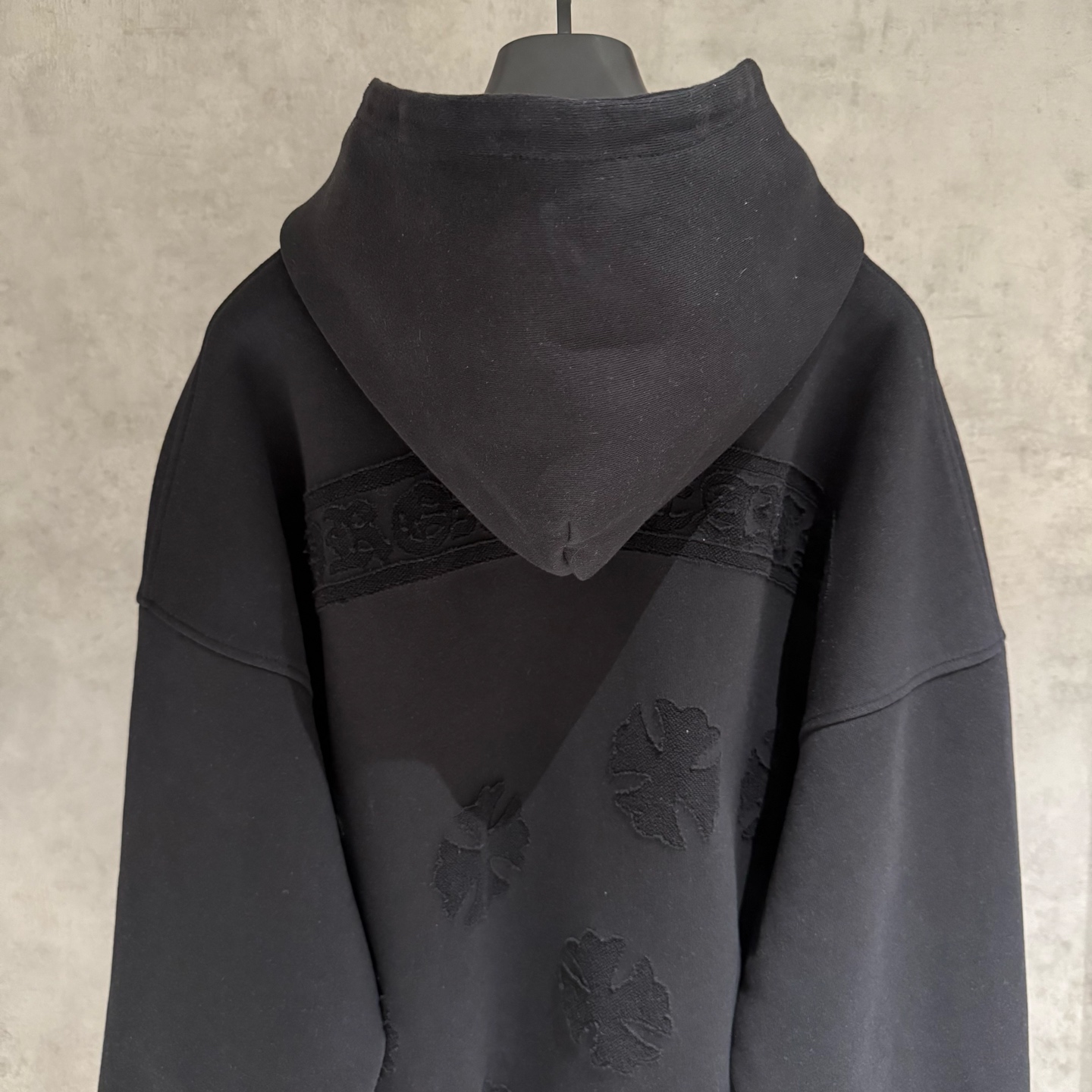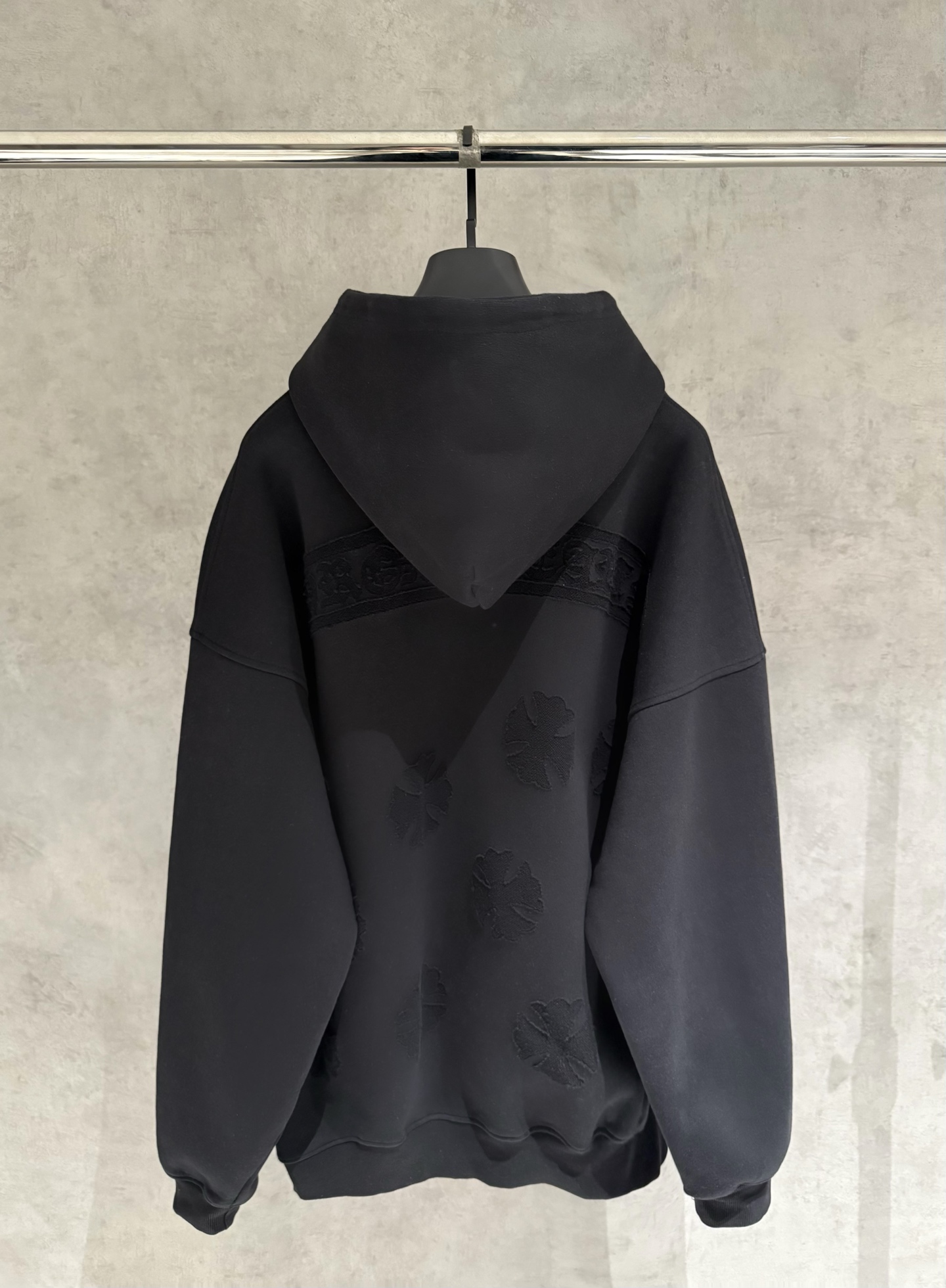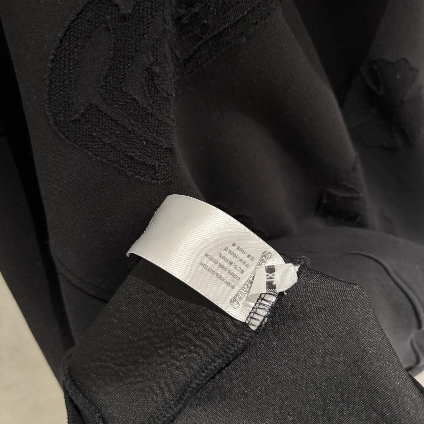 这款衣服是AAAAA 1:1 质量 (非常棒). 使用了和原版一模一样的材料. 商标部分也保持了和克罗心/Chrome Hearts一样. 图片拍摄是实物衣服拍摄, 您所收到的实物保证和我们图片一模一样.