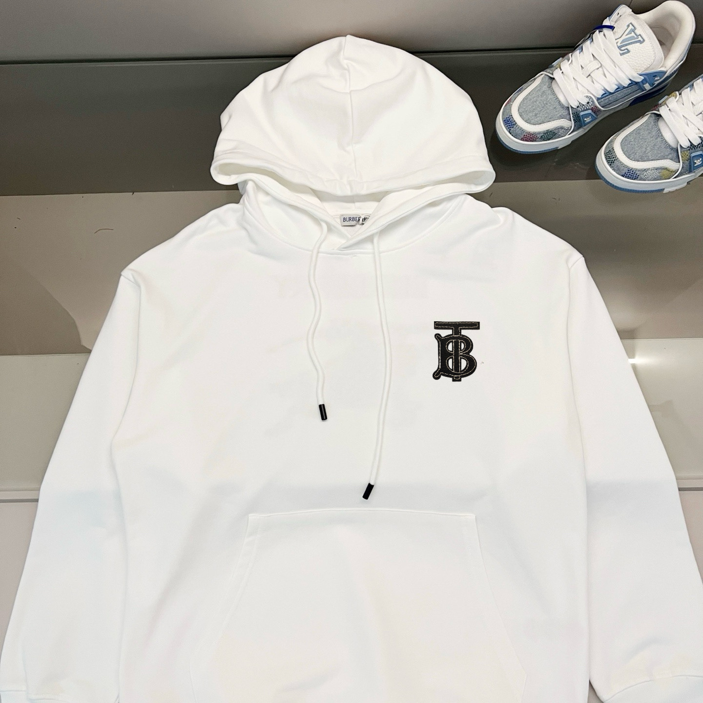 这款衣服是AAAAA 1:1 质量 (非常棒). 使用了和原版一模一样的材料. 商标部分也保持了和巴宝莉/Burberry一样. 图片拍摄是实物衣服拍摄, 您所收到的实物保证和我们图片一模一样.