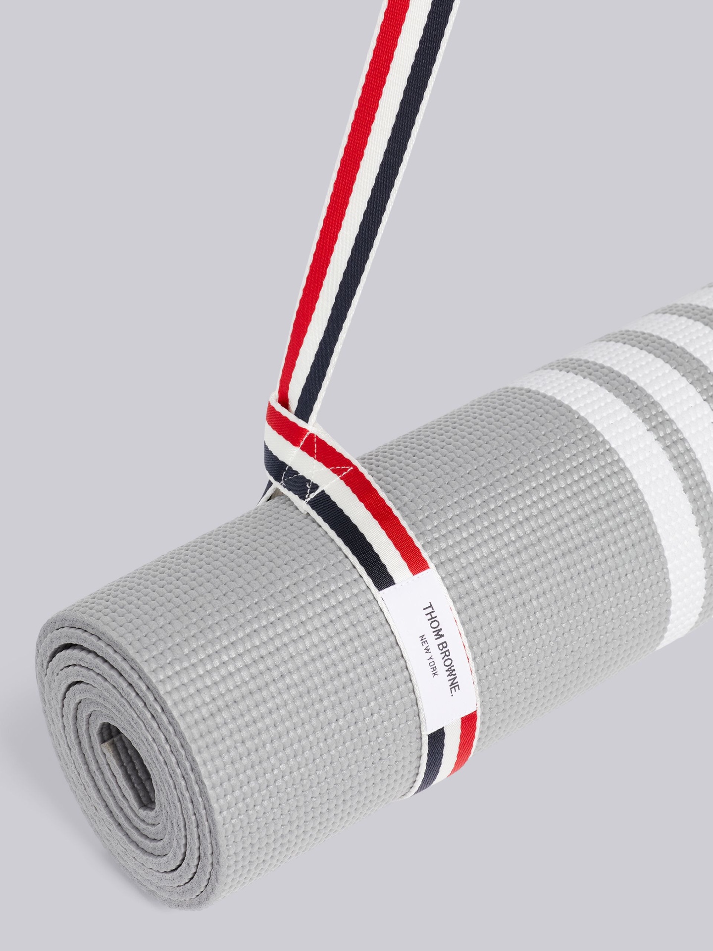 这款yoga mat是AAAAA 1:1 质量 (非常棒). 使用了和原版一模一样的材料. 商标部分也保持了和汤姆布朗/Thom Browne一样. 图片拍摄是实物yoga mat拍摄, 您所收到的实物保证和我们图片一模一样.