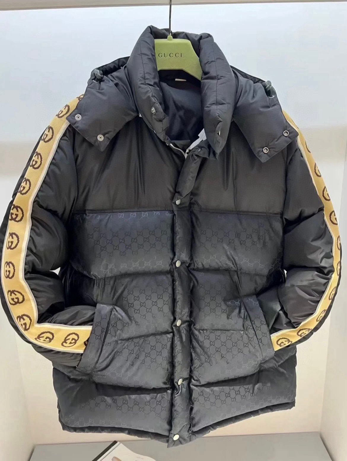 这款衣服是AAAAA 1:1 质量 (非常棒). 使用了和原版一模一样的材料. 商标部分也保持了和古奇/Gucci一样. 图片拍摄是实物衣服拍摄, 您所收到的实物保证和我们图片一模一样.