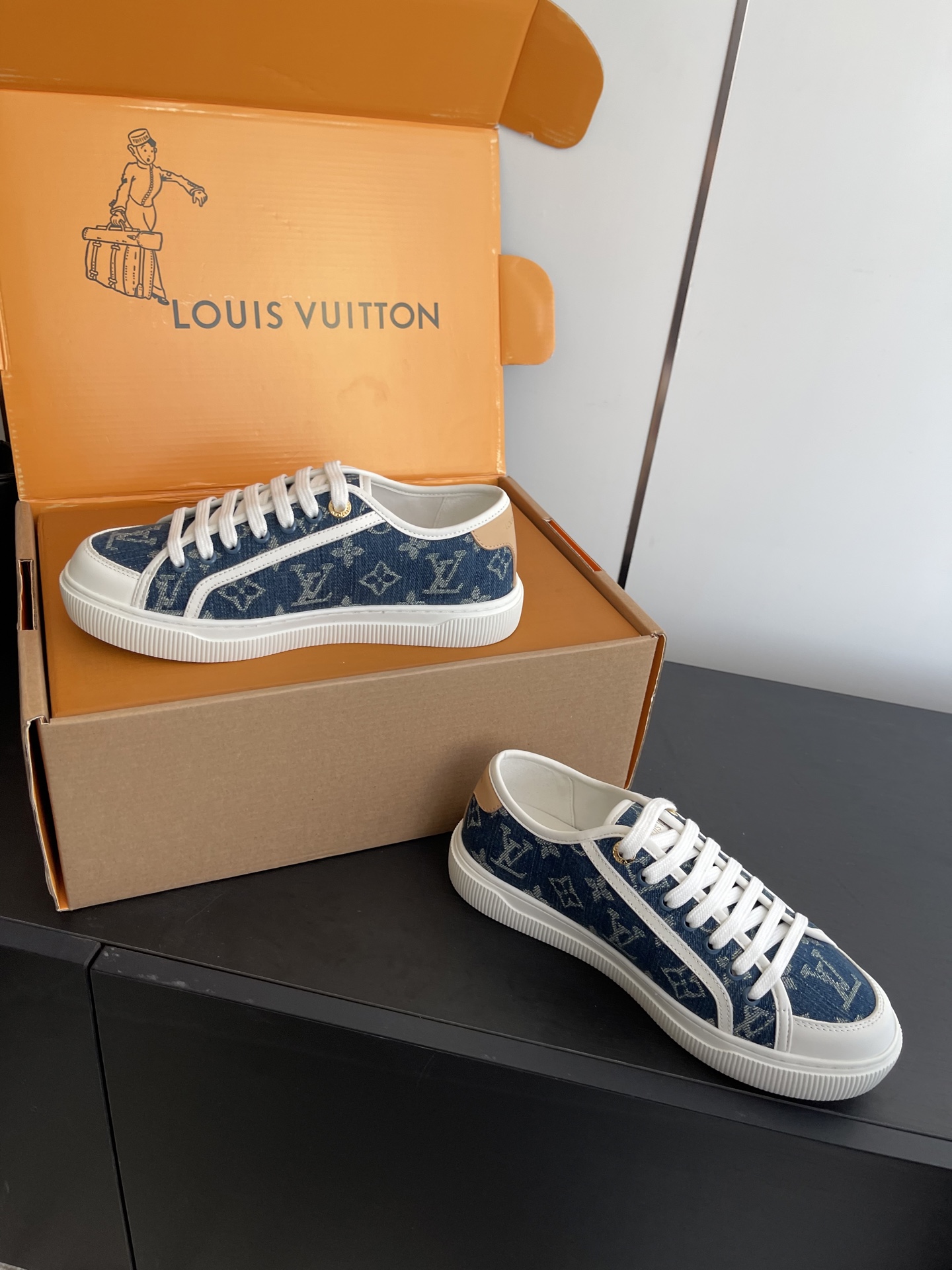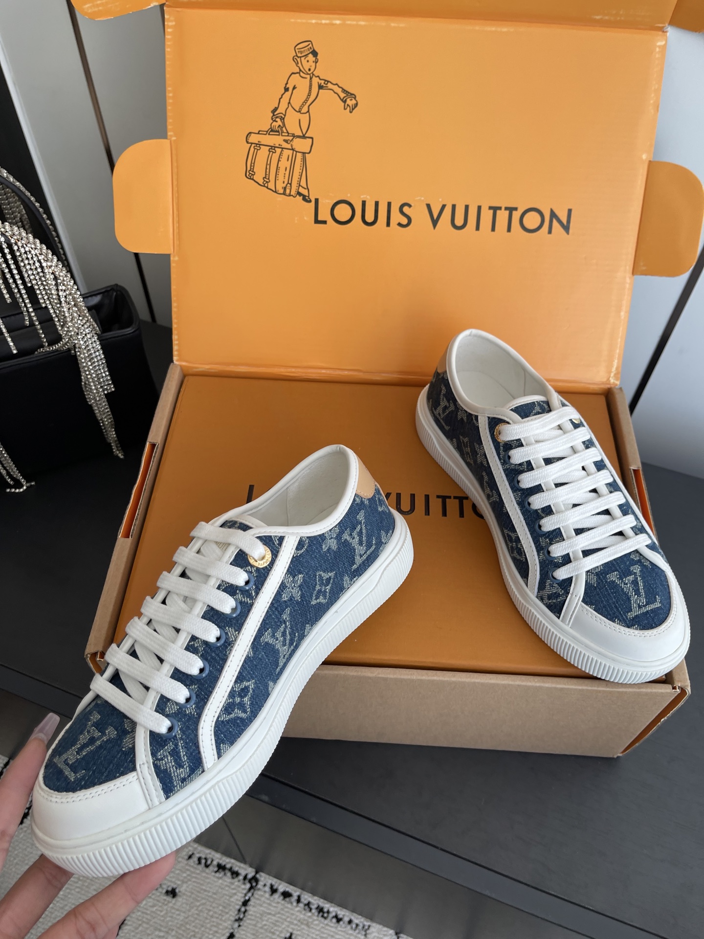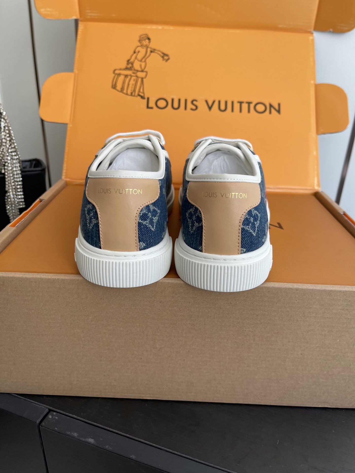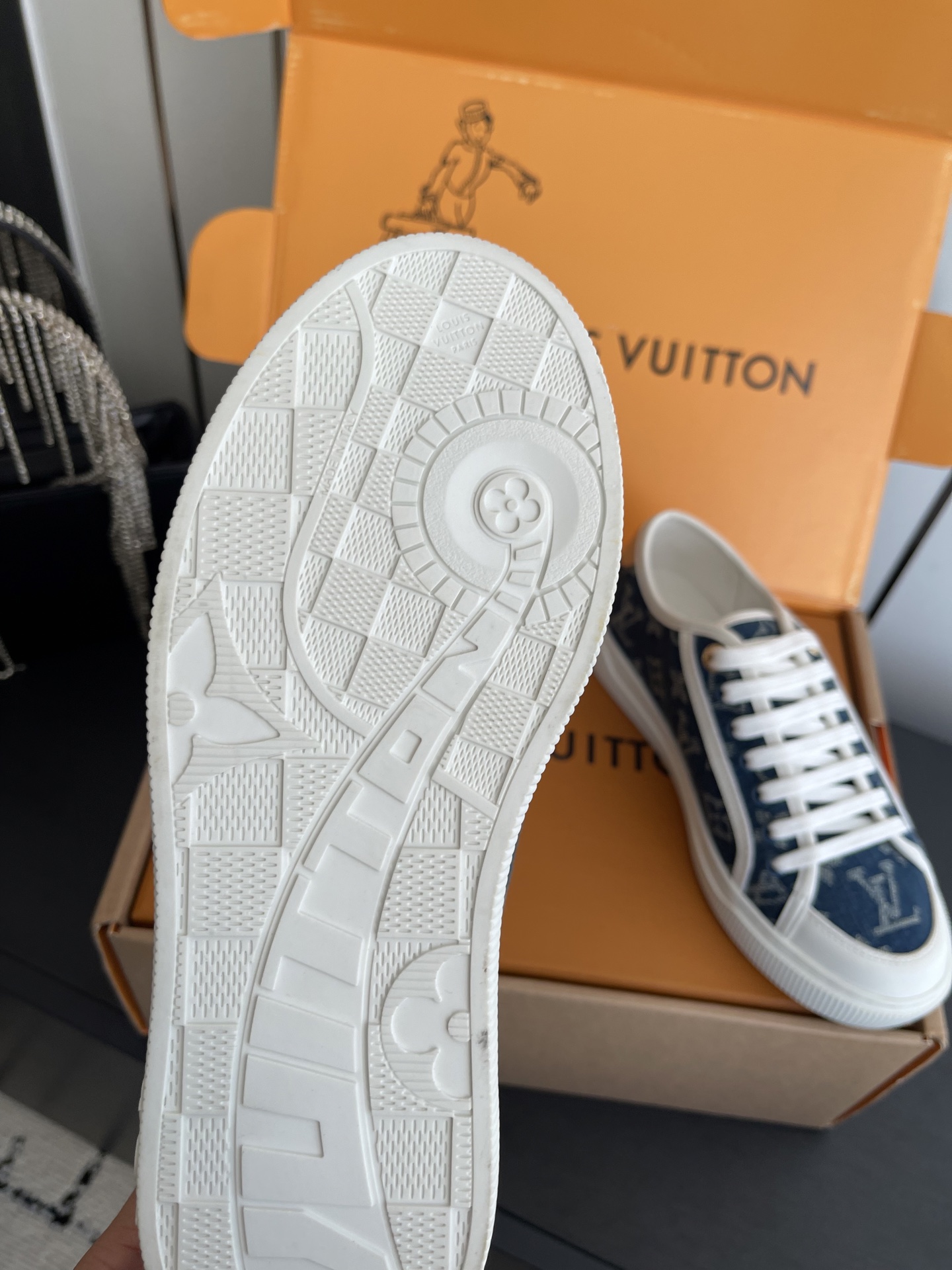 这款鞋子是AAAAA 1:1 质量 (非常棒). 使用了和原版一模一样的材料. 商标部分也保持了和路易威登/Louis Vuitton一样. 图片拍摄是实物鞋子拍摄, 您所收到的实物保证和我们图片一模一样.
