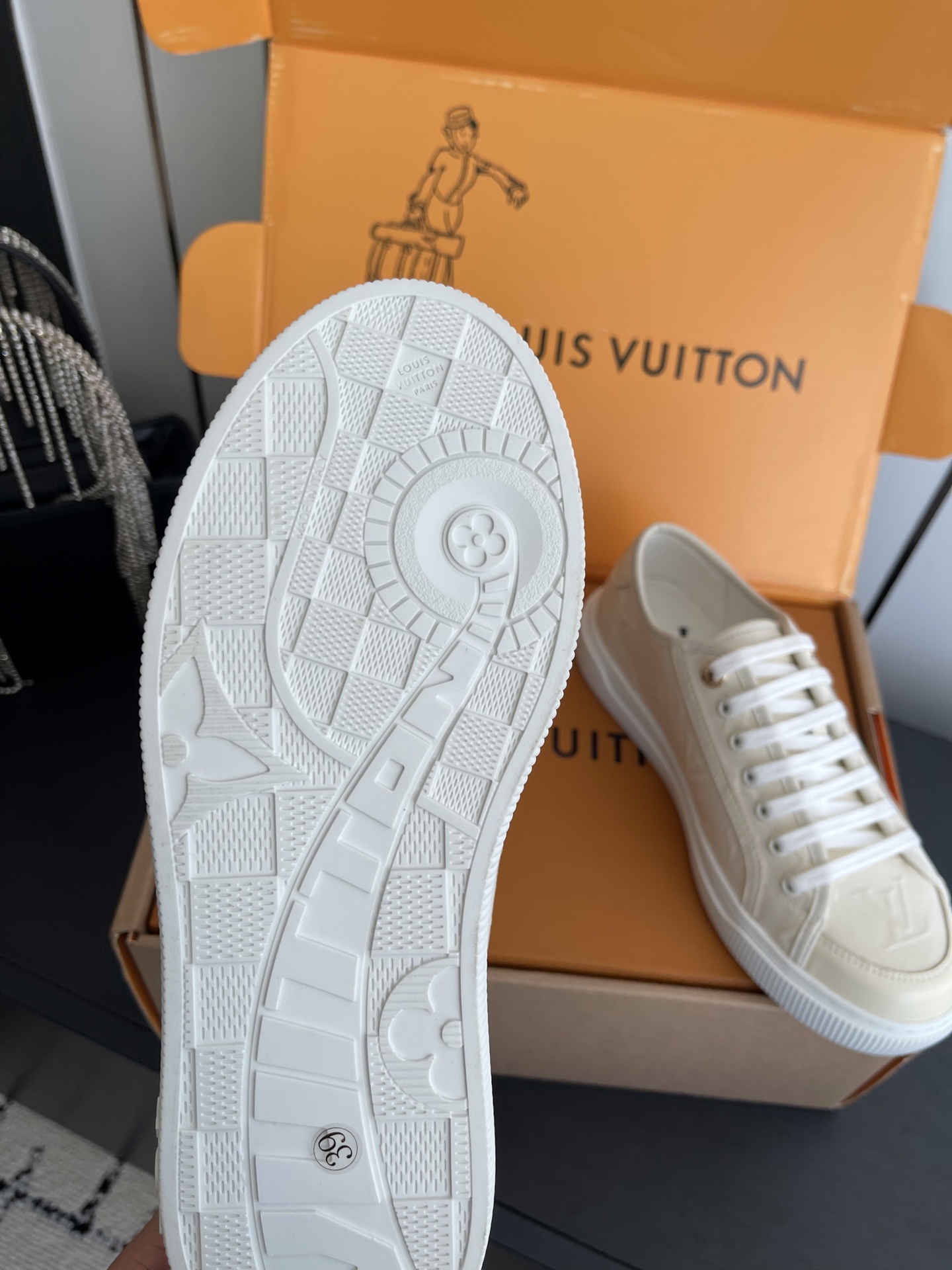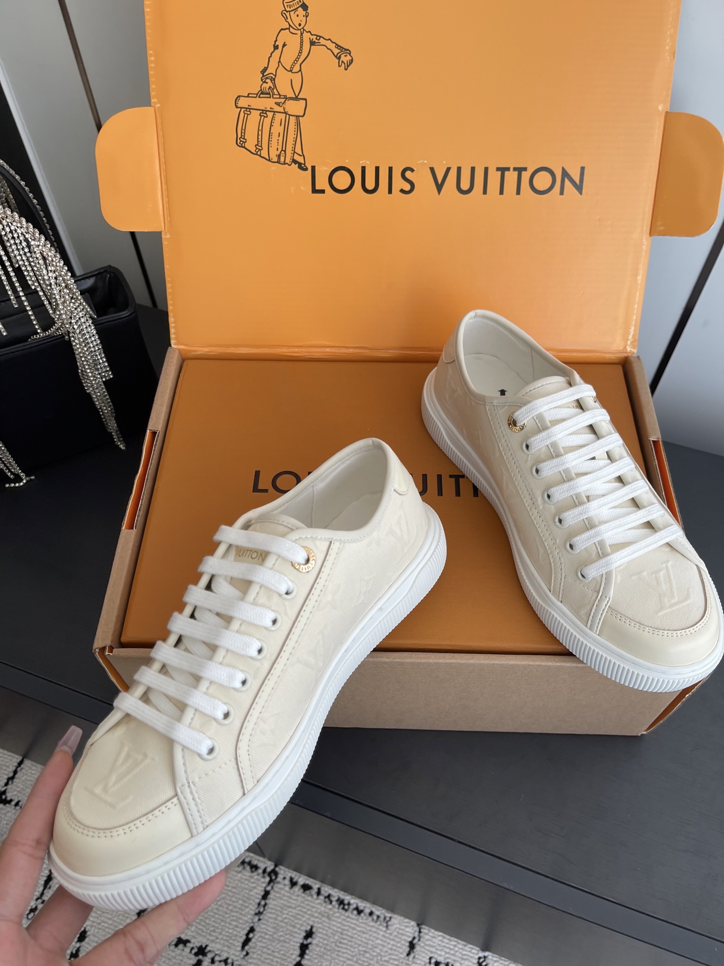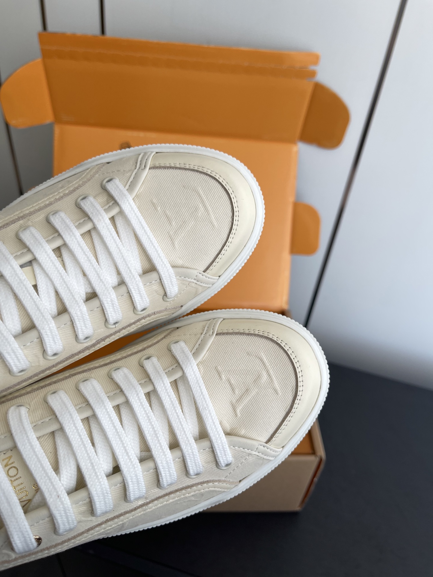 这款鞋子是AAAAA 1:1 质量 (非常棒). 使用了和原版一模一样的材料. 商标部分也保持了和路易威登/Louis Vuitton一样. 图片拍摄是实物鞋子拍摄, 您所收到的实物保证和我们图片一模一样.