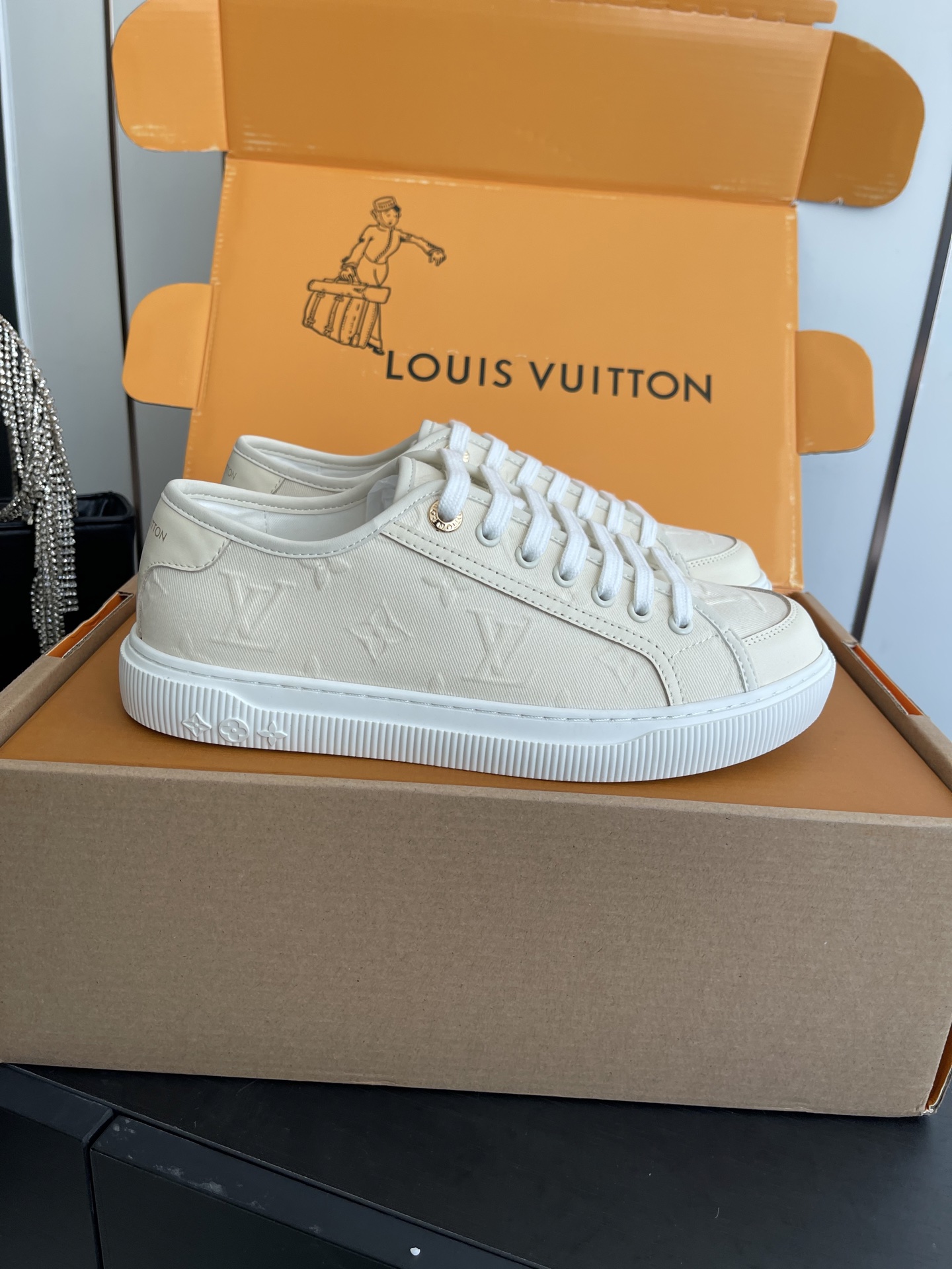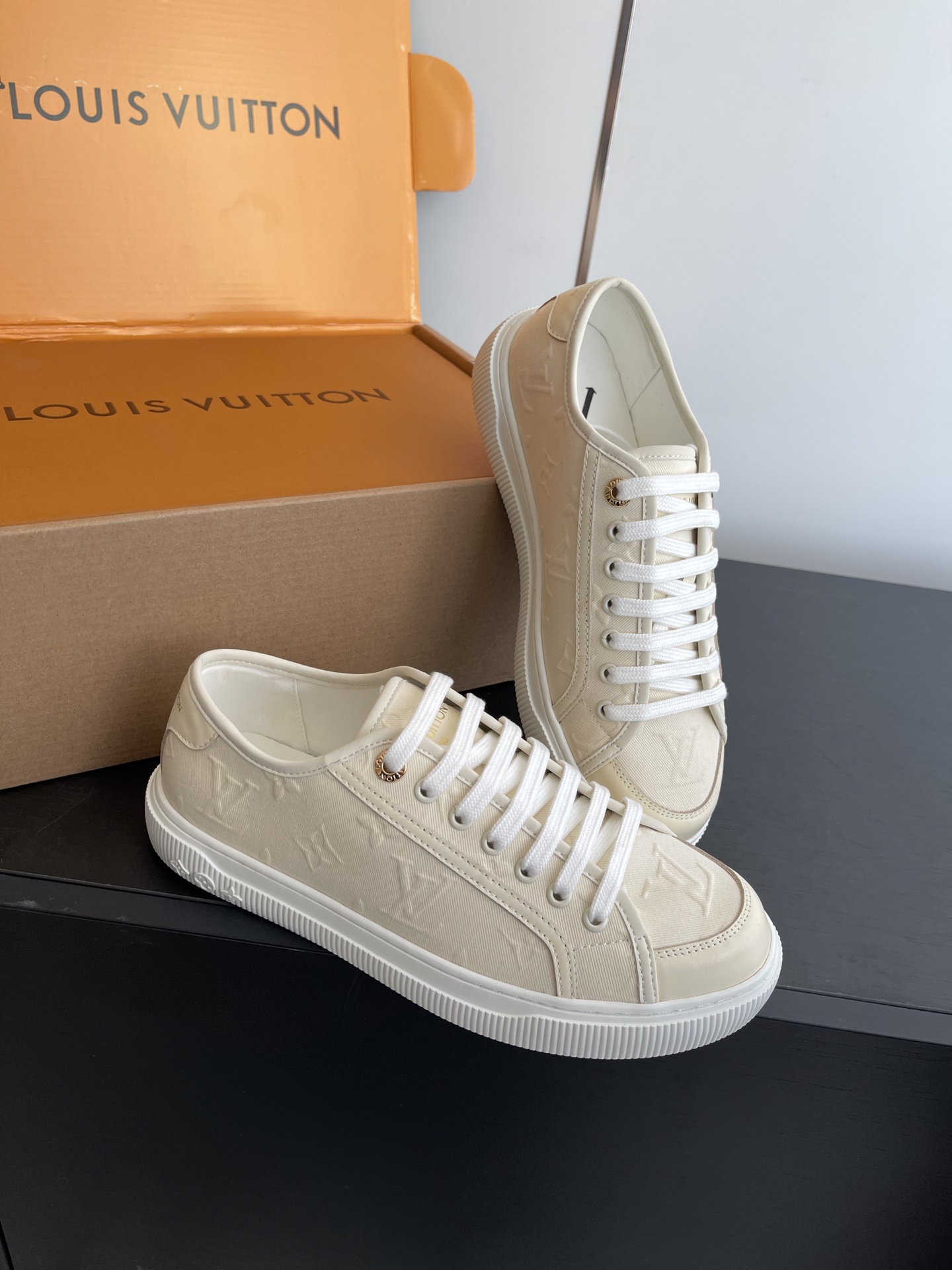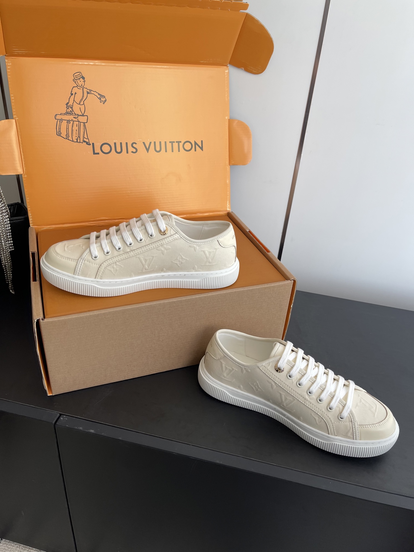这款鞋子是AAAAA 1:1 质量 (非常棒). 使用了和原版一模一样的材料. 商标部分也保持了和路易威登/Louis Vuitton一样. 图片拍摄是实物鞋子拍摄, 您所收到的实物保证和我们图片一模一样.