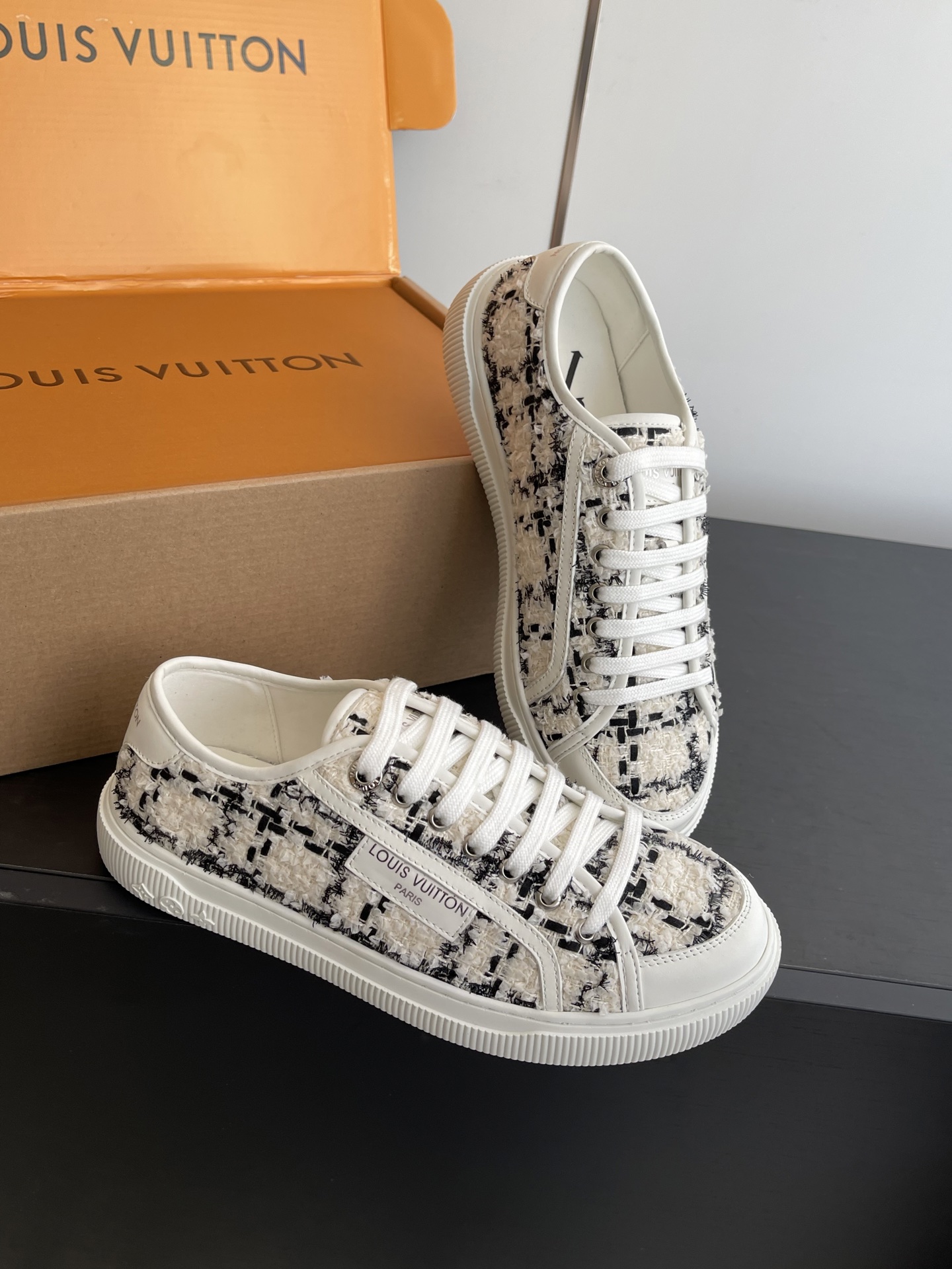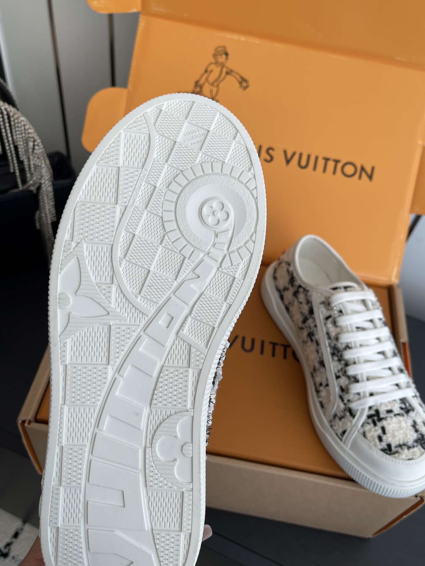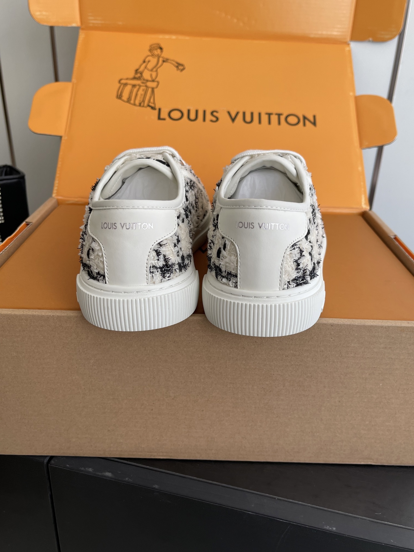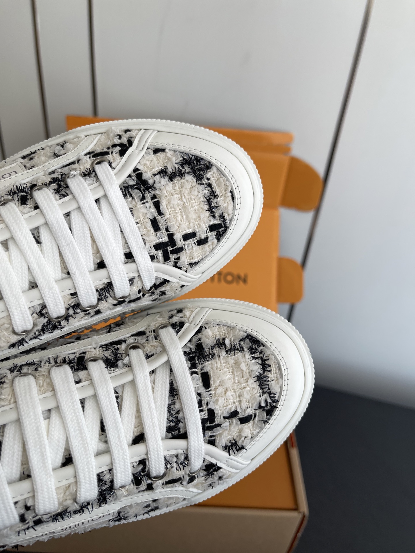 这款鞋子是AAAAA 1:1 质量 (非常棒). 使用了和原版一模一样的材料. 商标部分也保持了和路易威登/Louis Vuitton一样. 图片拍摄是实物鞋子拍摄, 您所收到的实物保证和我们图片一模一样.